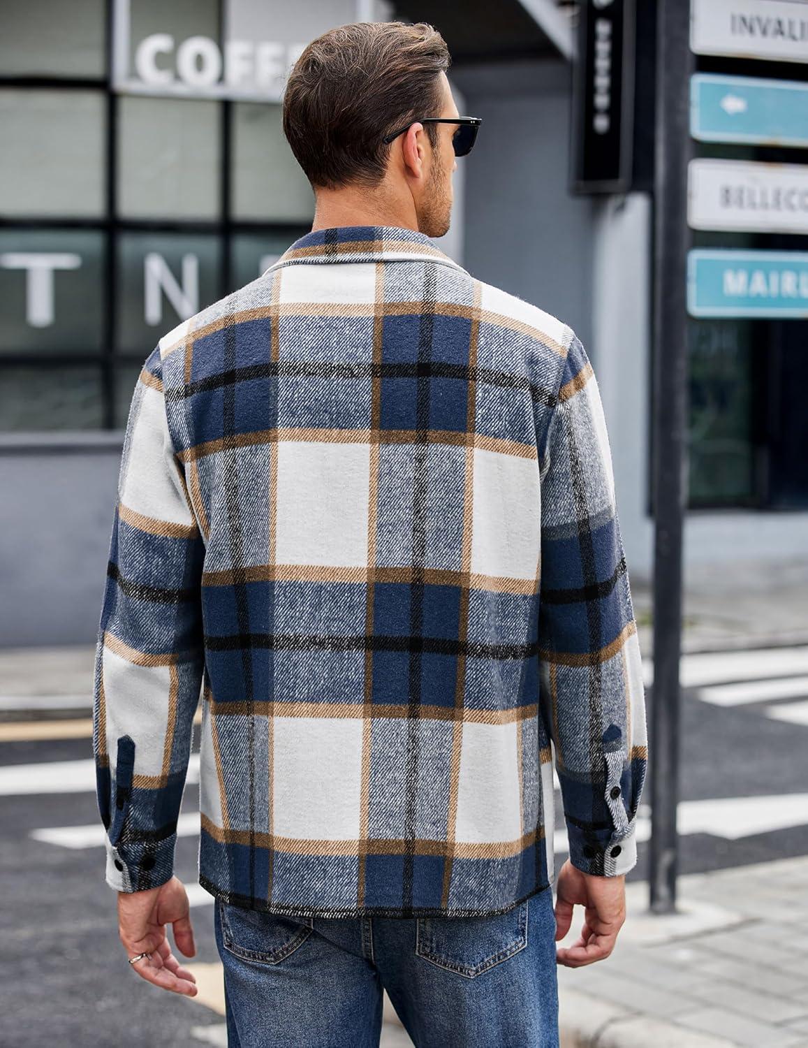 COOFANDY Men’s Flannel Shirts Casual Button Down Plaid Shirt Jacket Long Sleeve Fleece Shacket with Pockets(Blue)