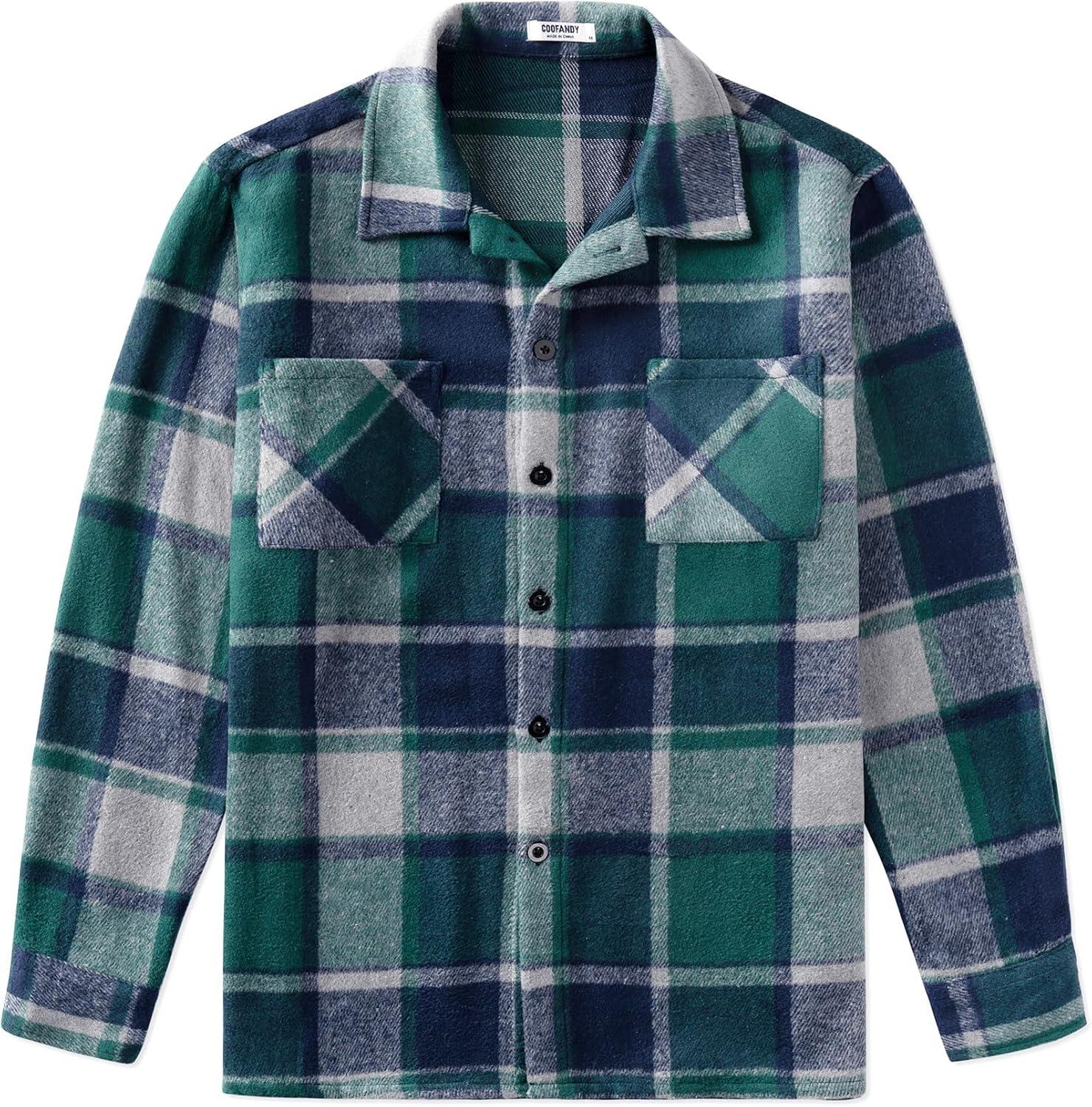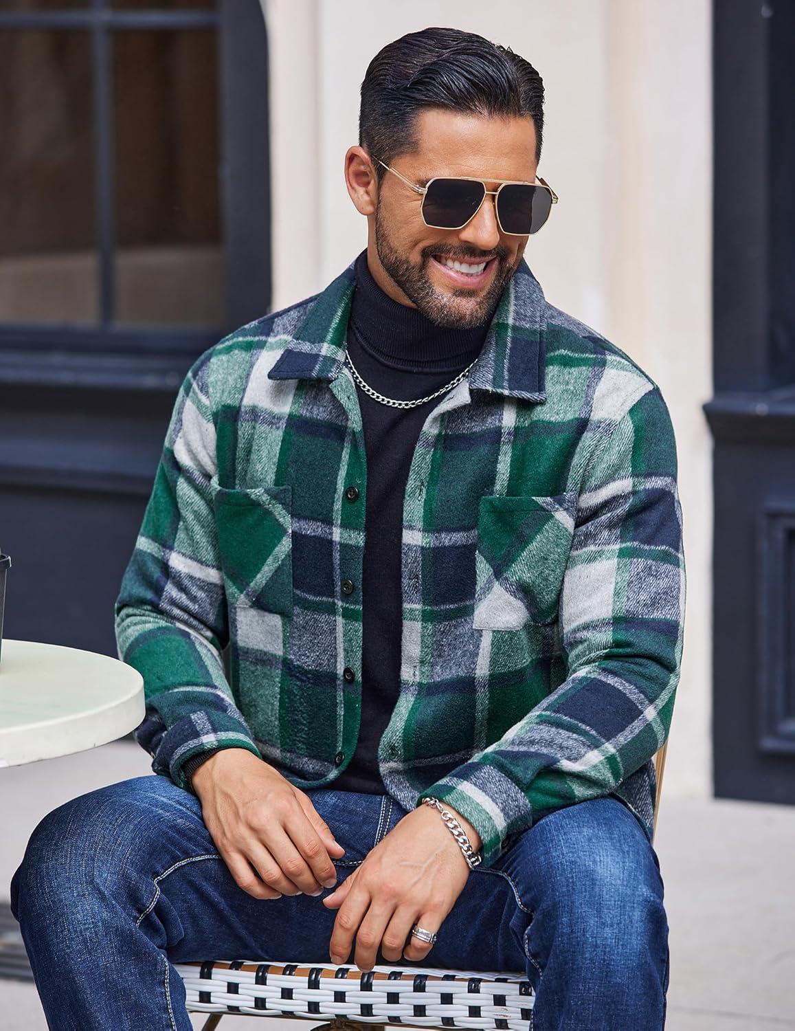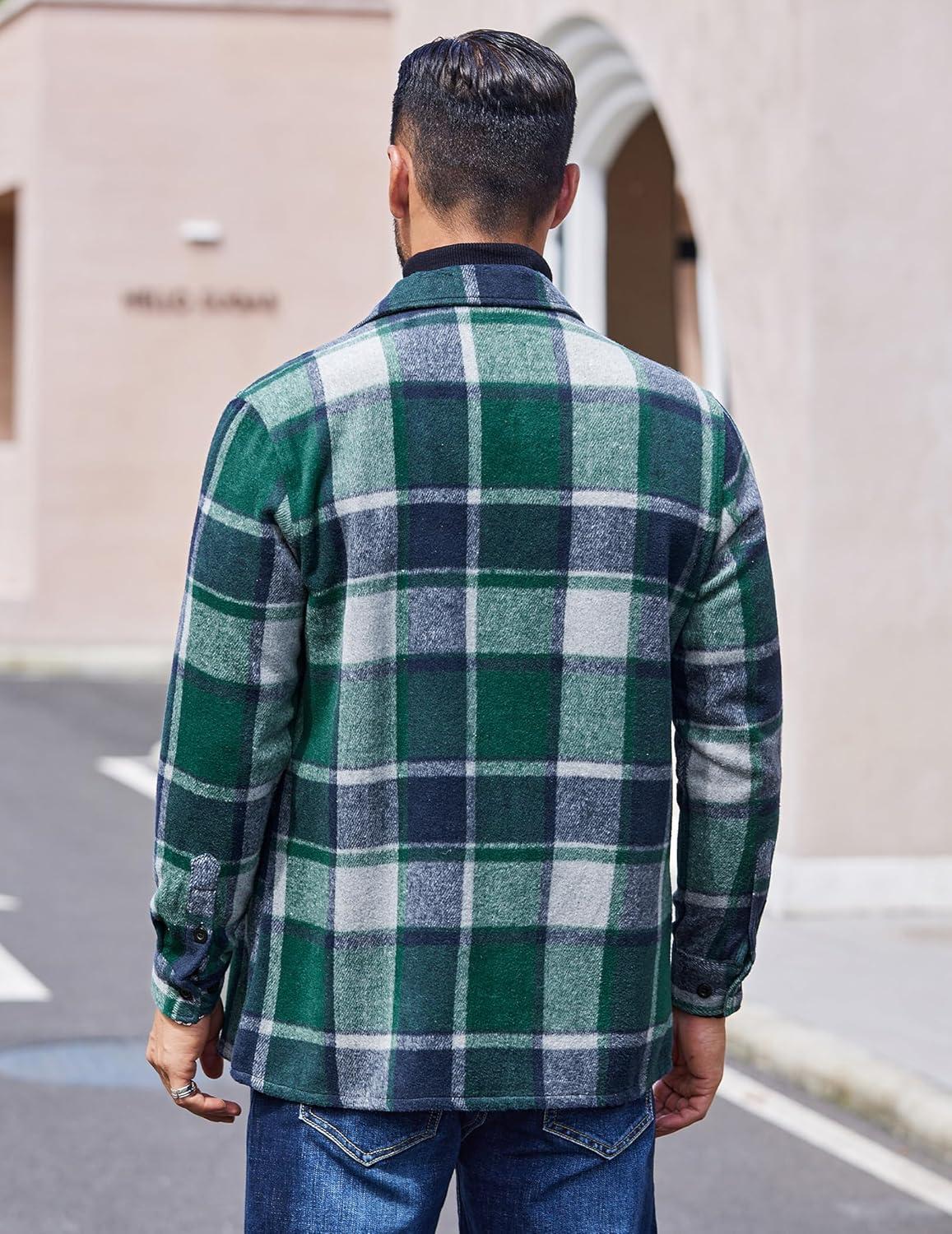 COOFANDY Men's Flannel Shirts Casual Button Down Plaid Shirt Jacket Long Sleeve Fleece Shacket with Pockets(Gray Green)