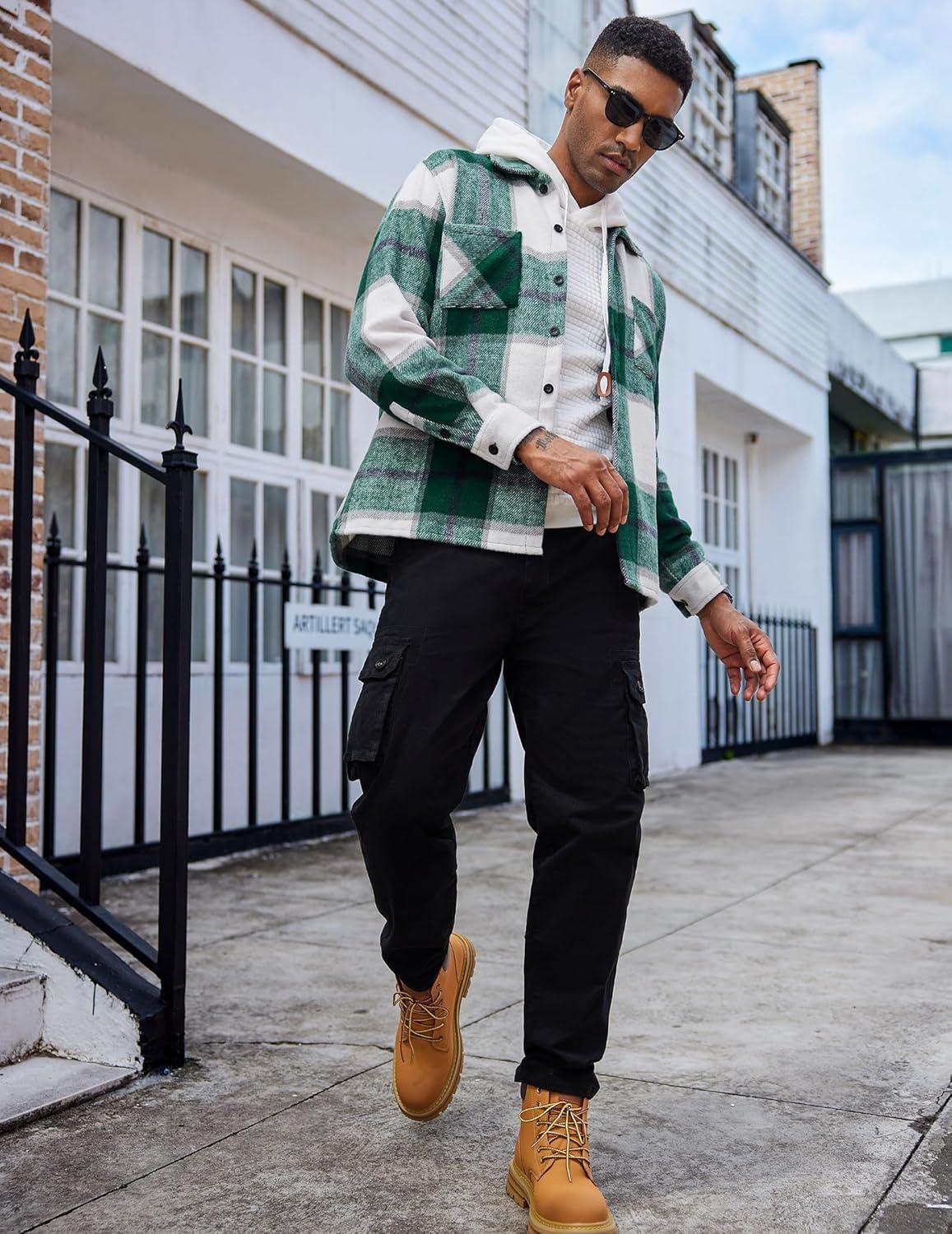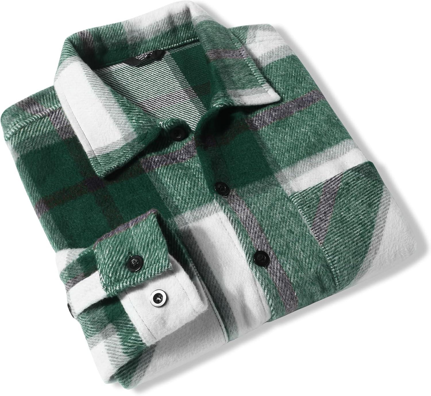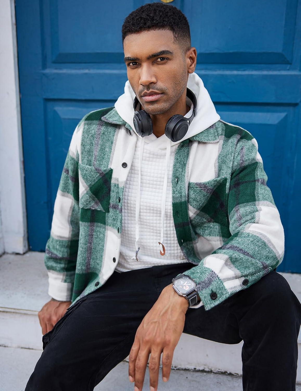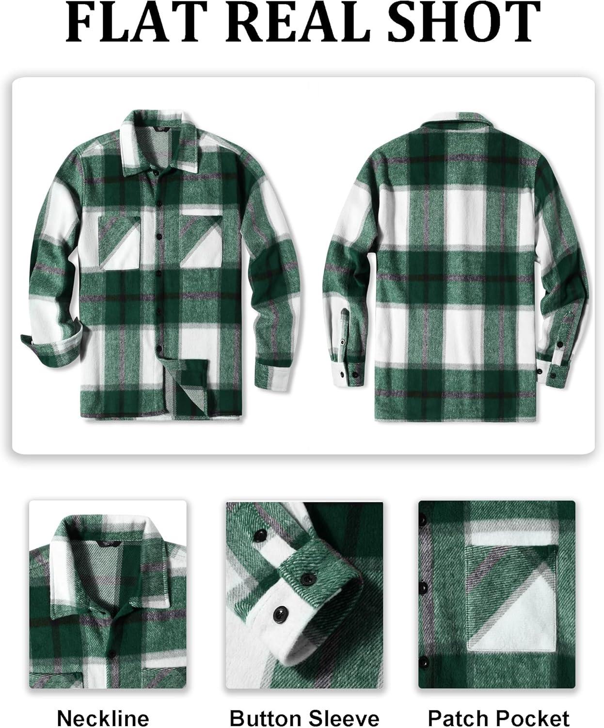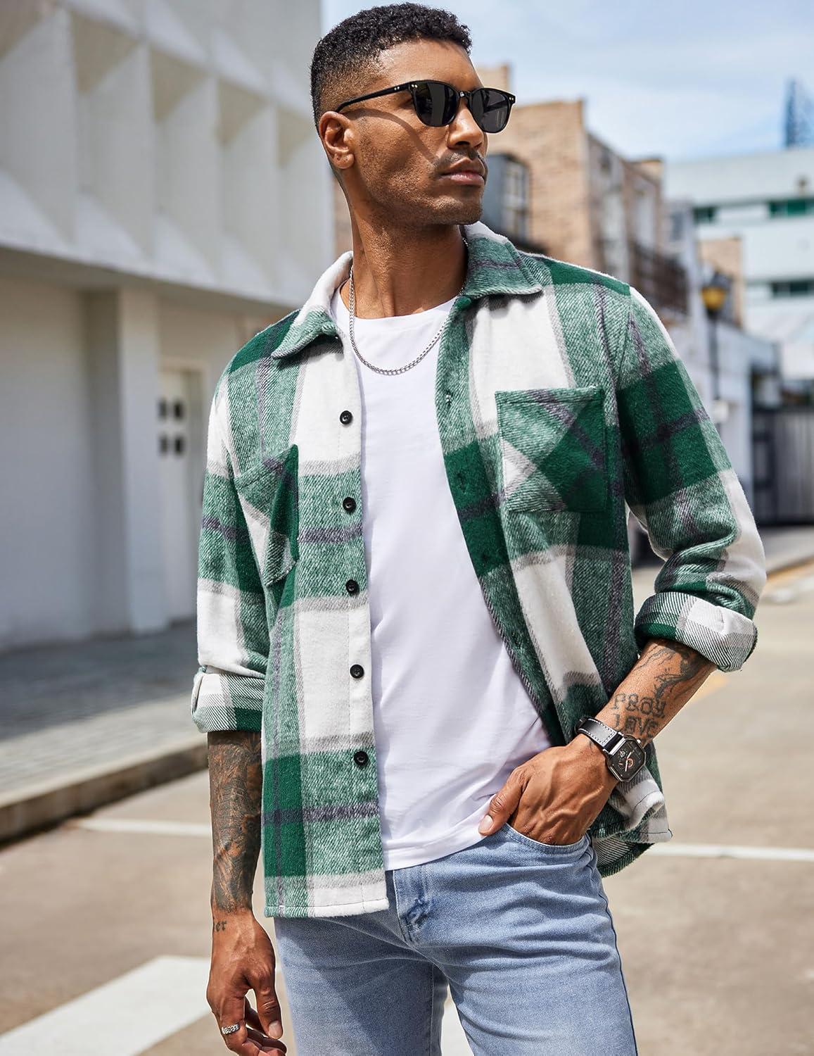 COOFANDY Men's Flannel Shirts Casual Button Down Plaid Shirt Jacket Long Sleeve Fleece Shacket with Pockets(Green)