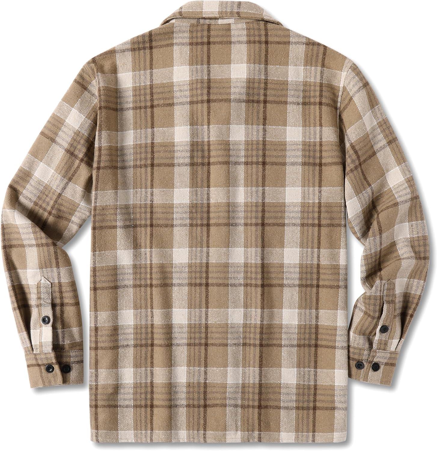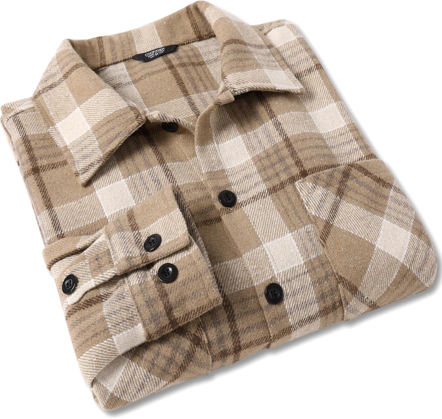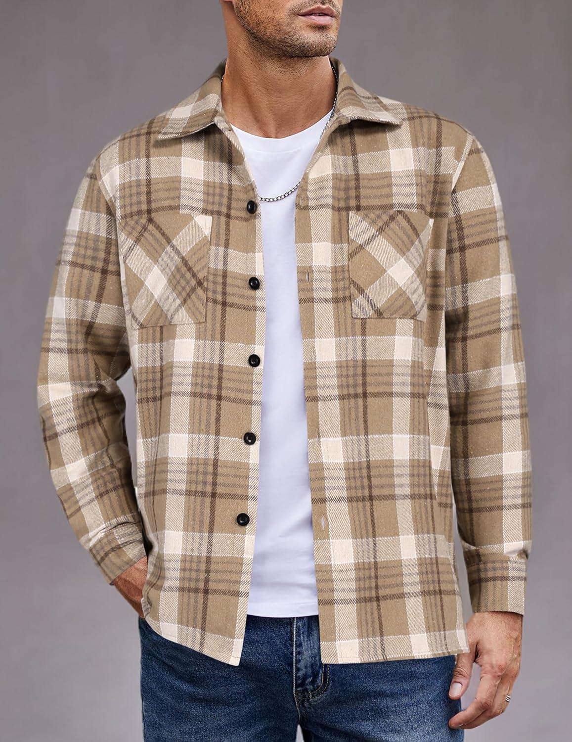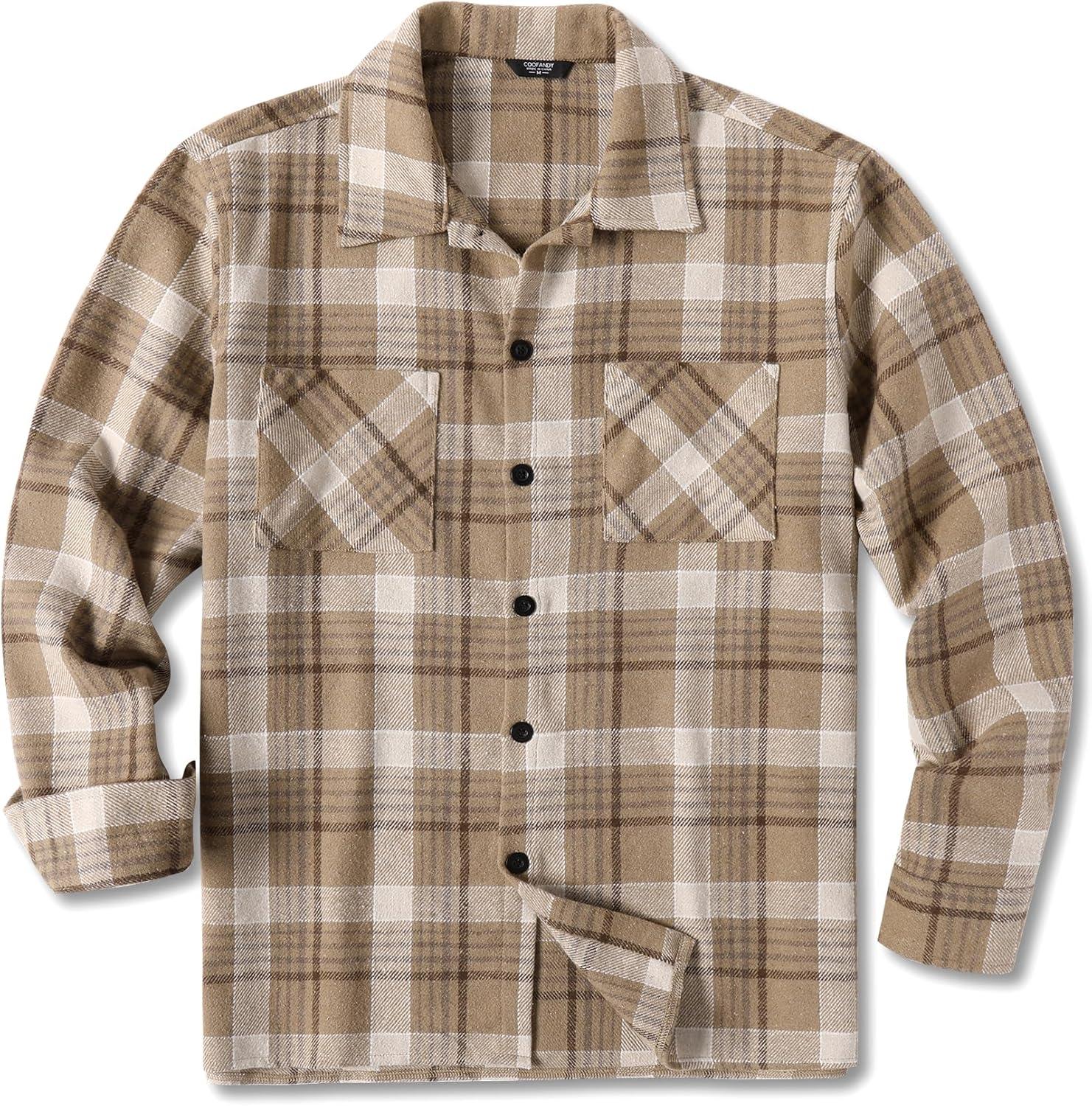COOFANDY Men's Flannel Shirts Casual Button Down Plaid Shirt Jacket Long Sleeve Fleece Shacket with Pockets(Khaki)