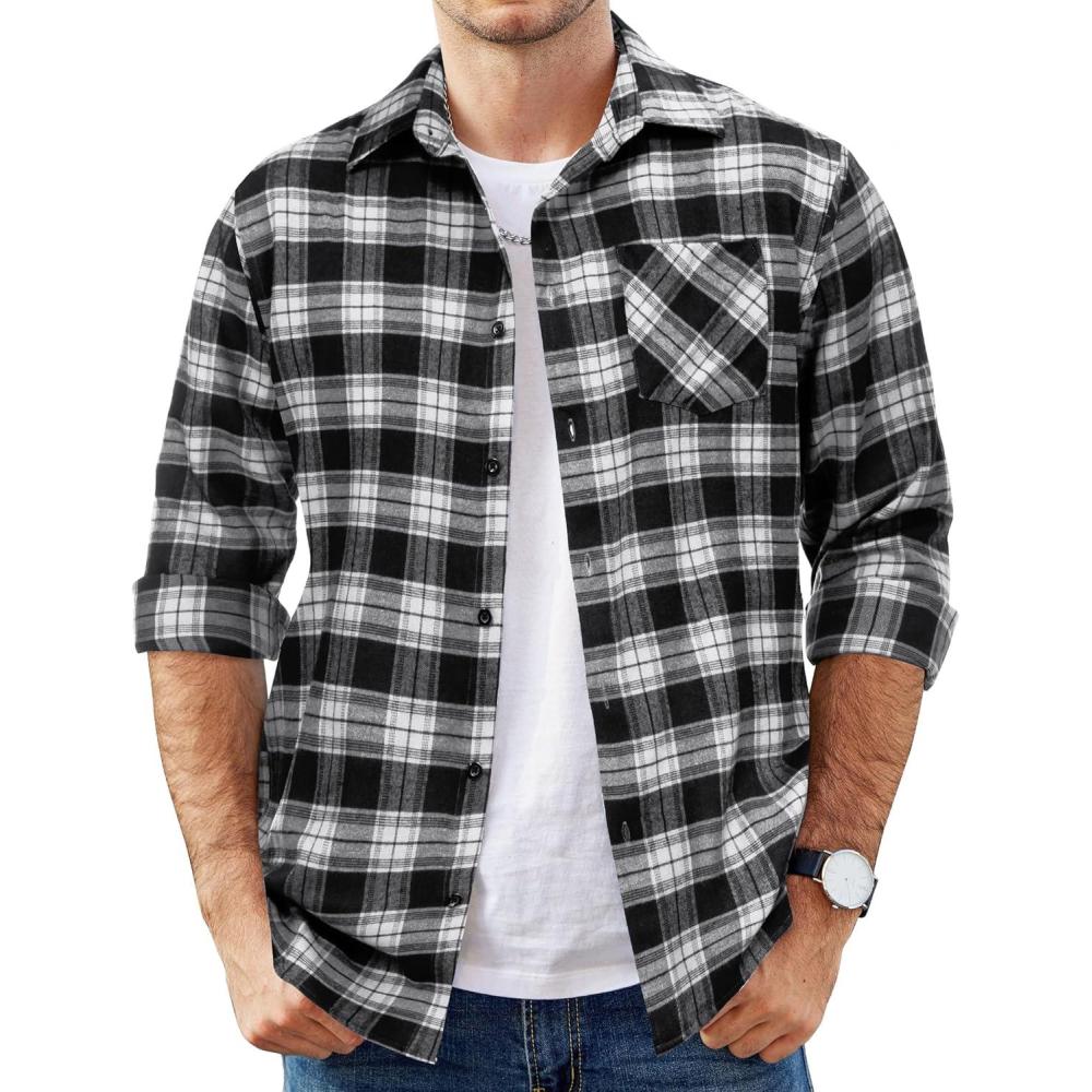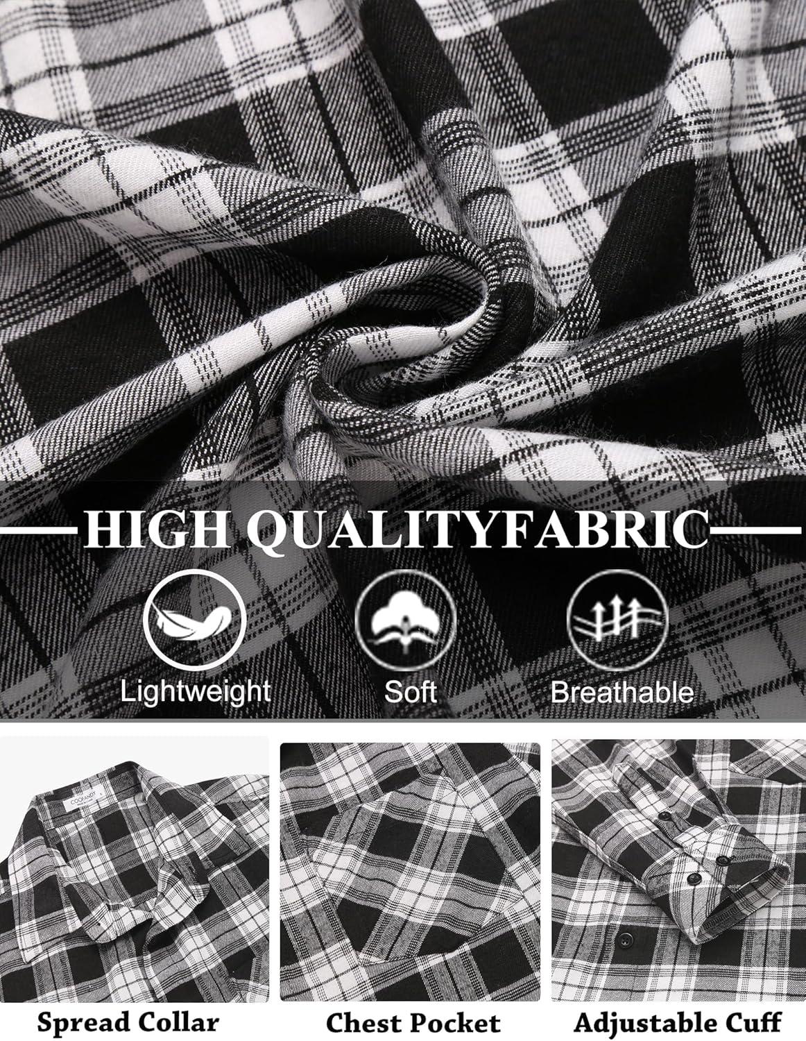 COOFANDY Men's Flannel Shirts Long Sleeve Button Down Plaid Shirt Lightweight Shirt Jacket(Black & White)