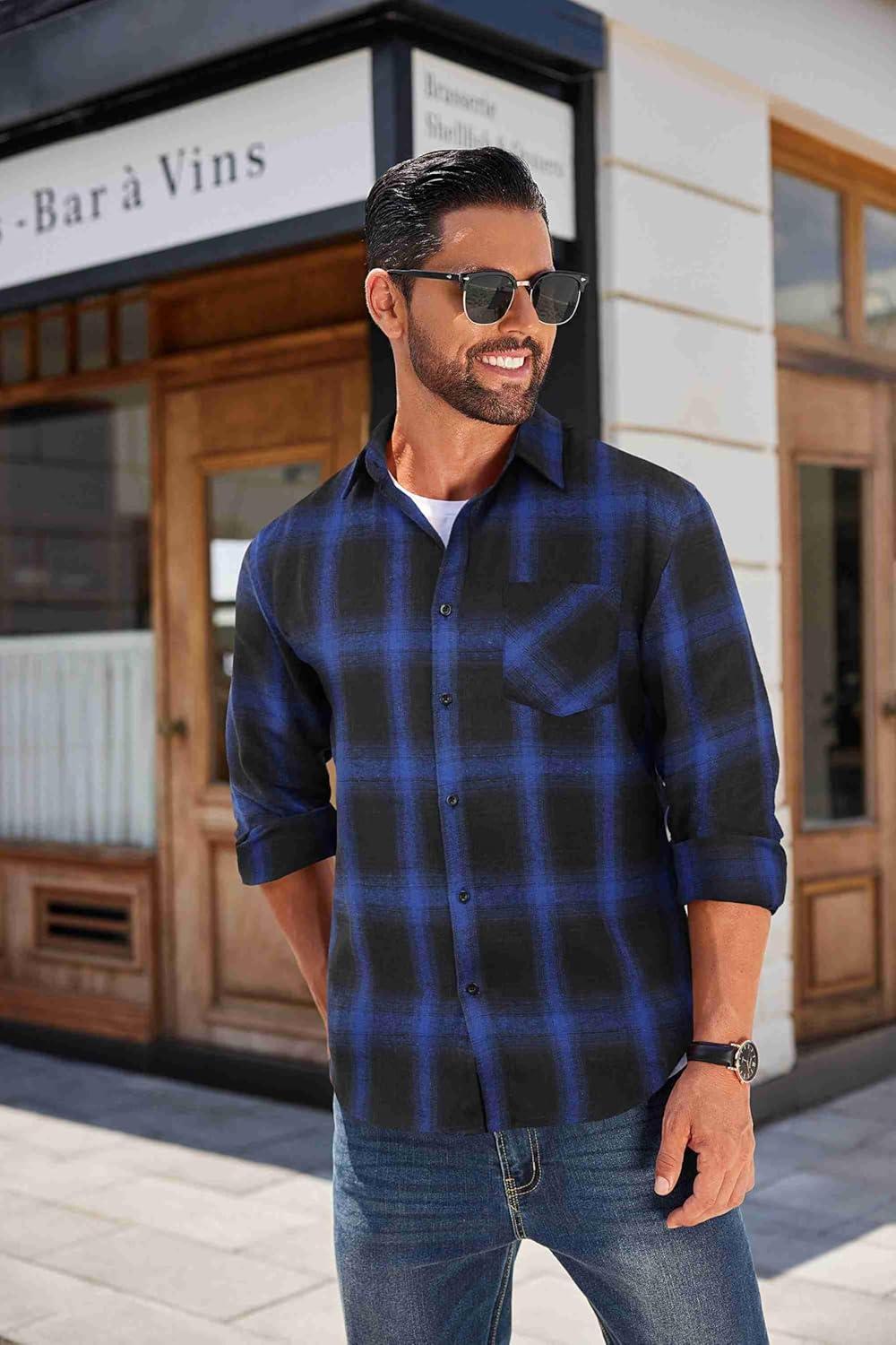 COOFANDY Men’s Flannel Shirts Long Sleeve Button Down Plaid Shirt Lightweight Shirt Jacket(Blue & Black)