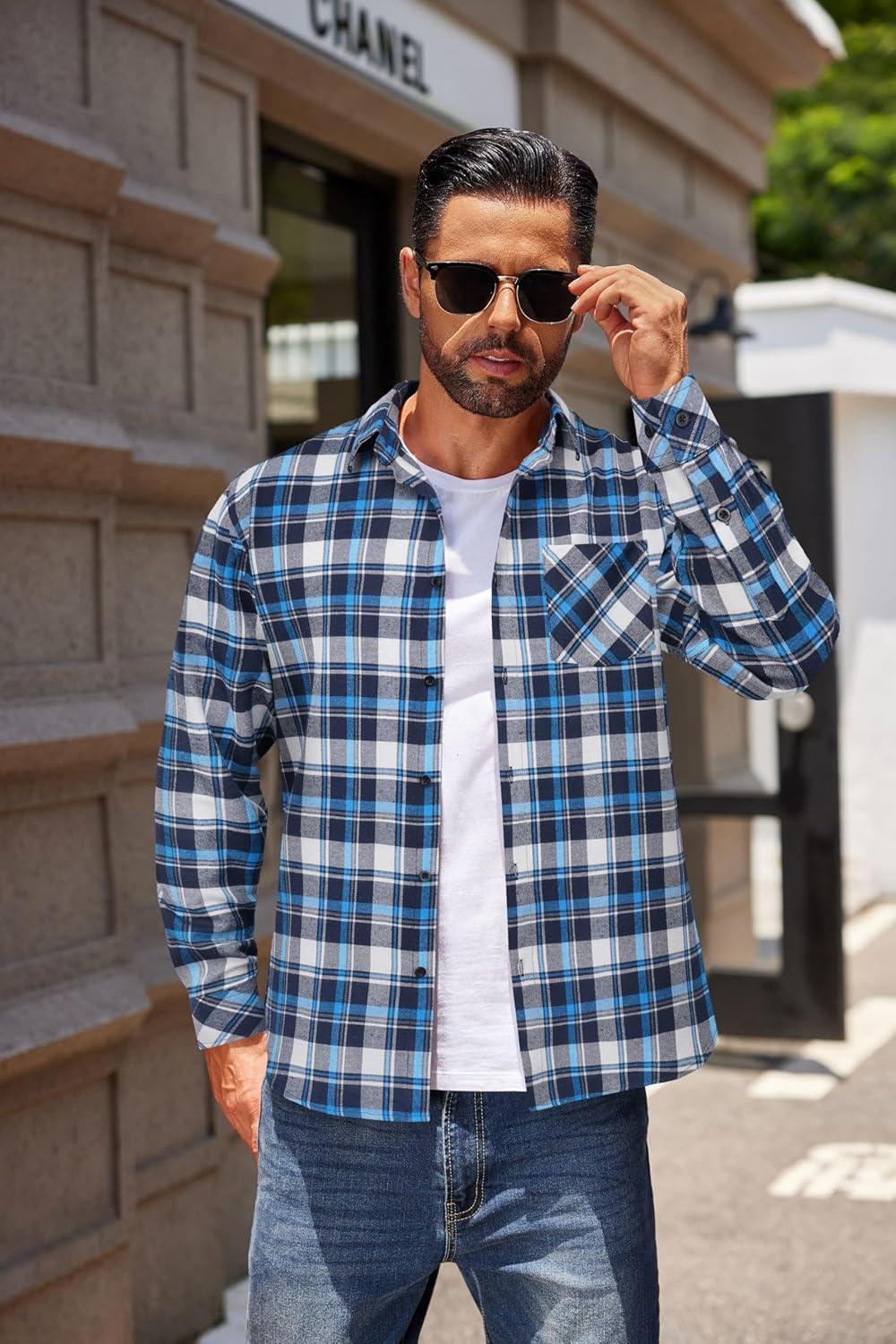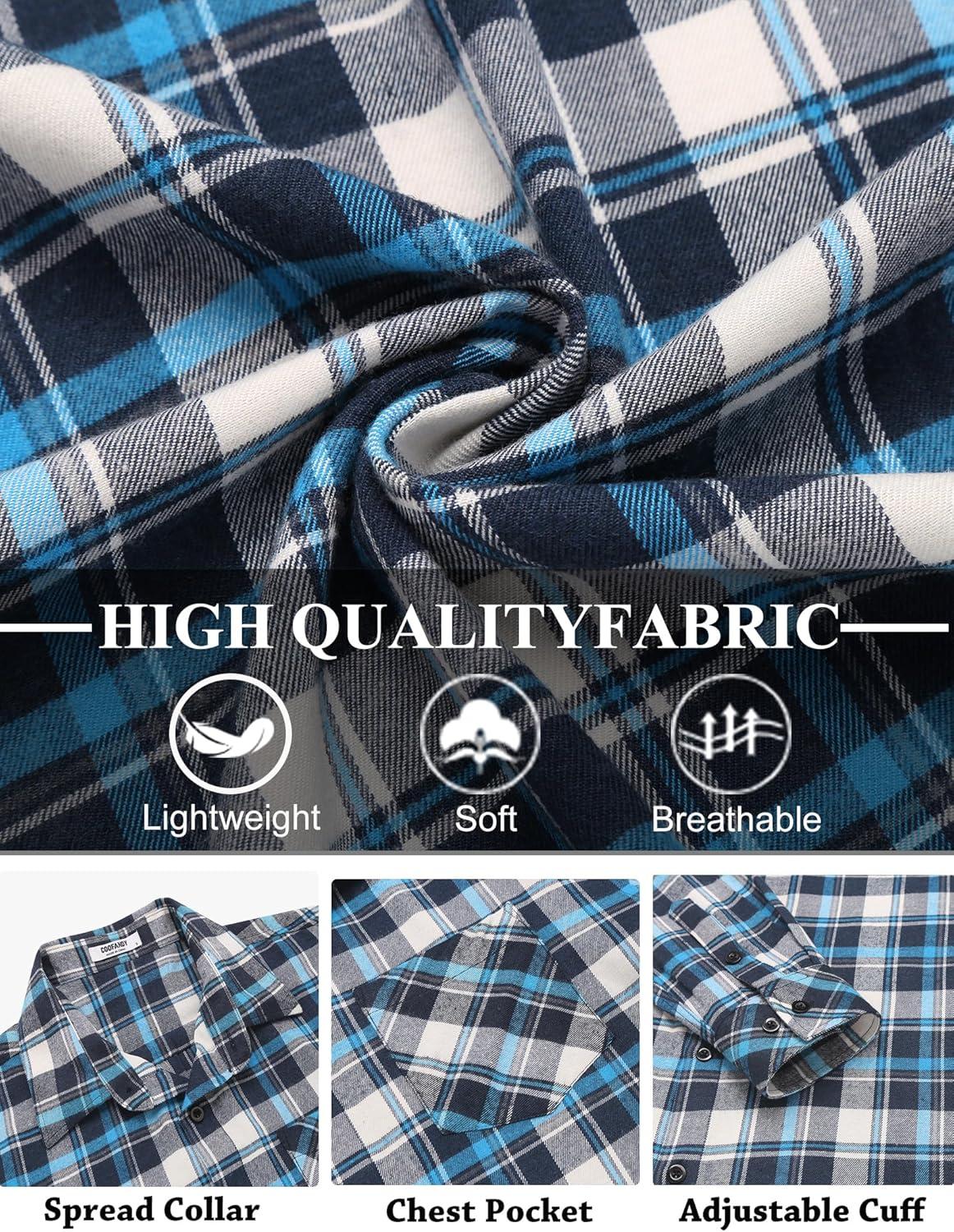 COOFANDY Men's Flannel Shirts Long Sleeve Button Down Plaid Shirt Lightweight Shirt Jacket(Blue & Navy Blue)