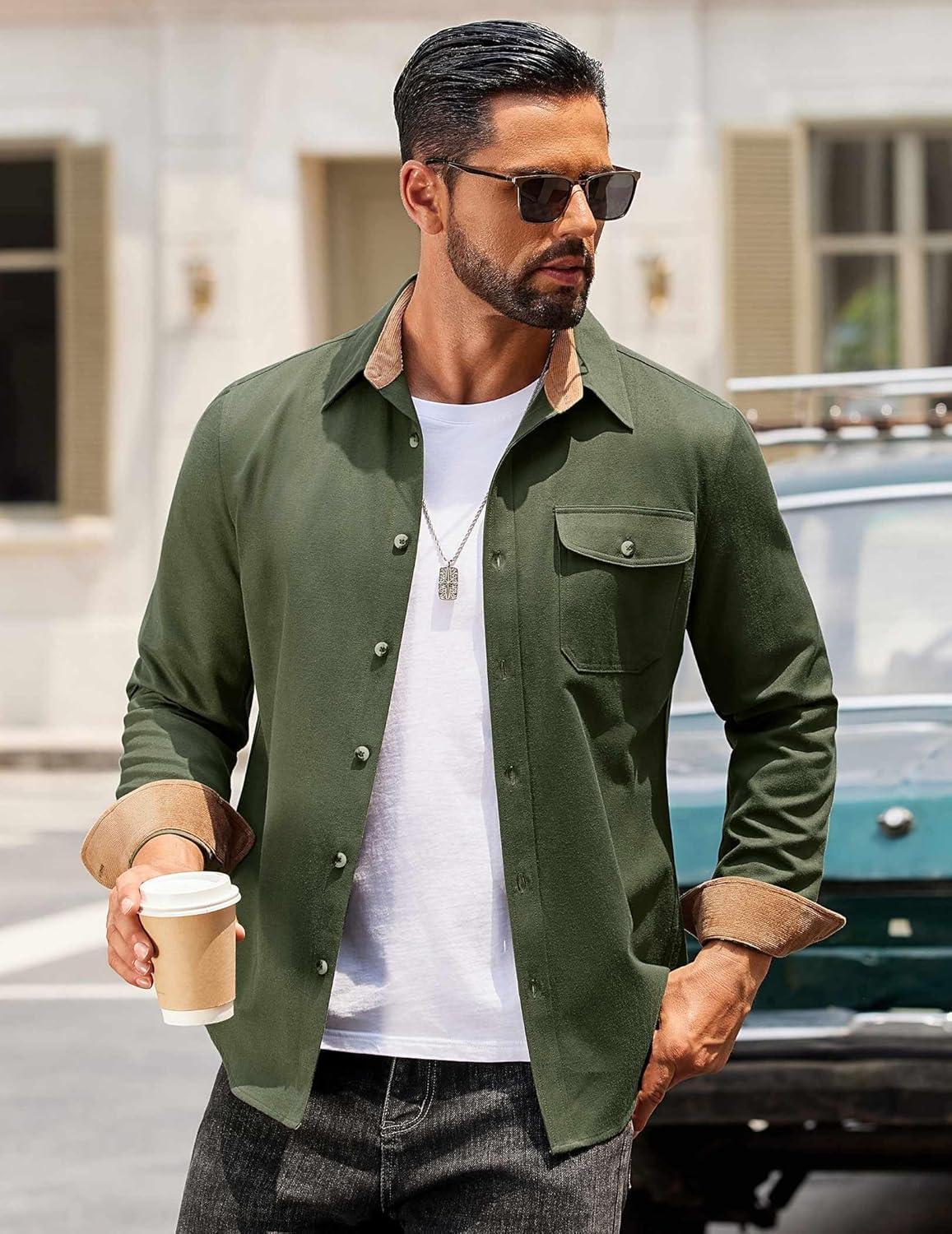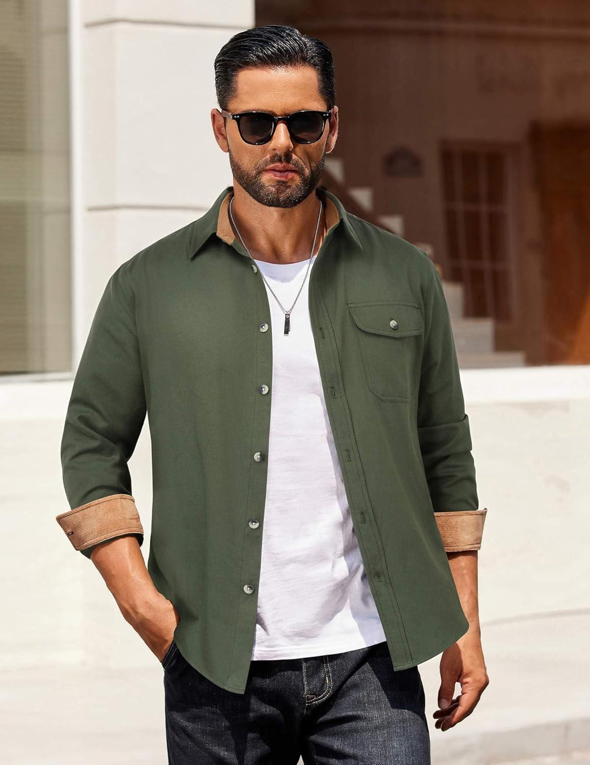 Choose COOFANDY men's long sleeve flannel shirt, made of warm, durable and comfortable material, perfect for wilderness camping, weekend markets, family gatherings, office work and other occasions. Available in various classic plaid patterns and solid colors, making it fashionable and versatile.