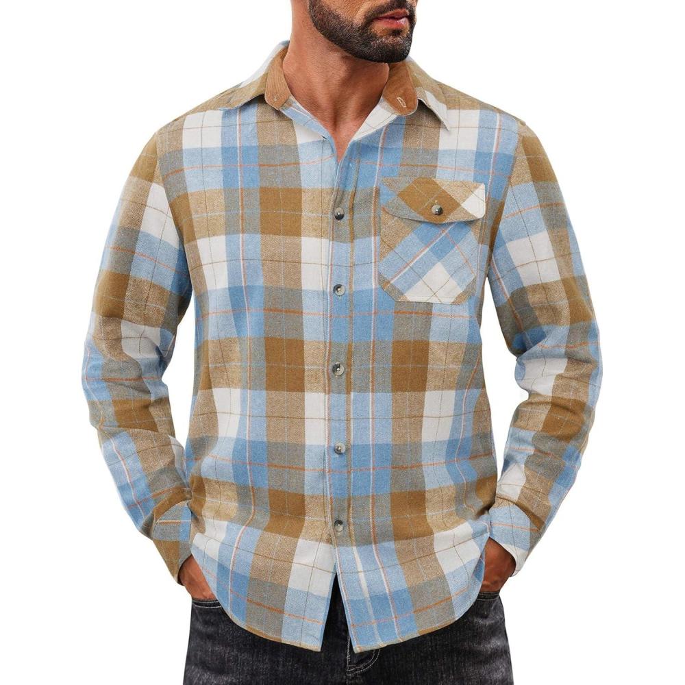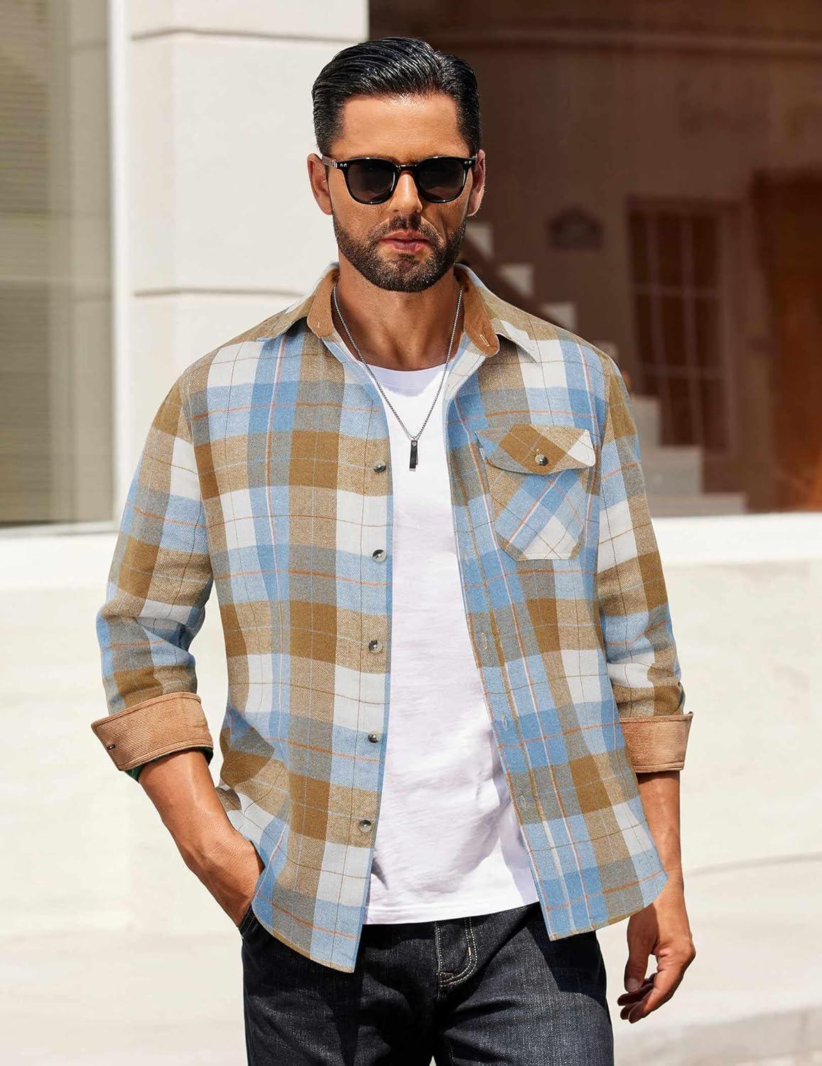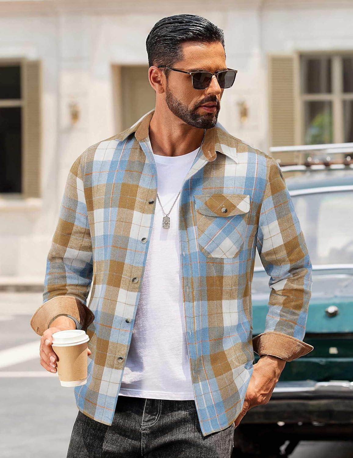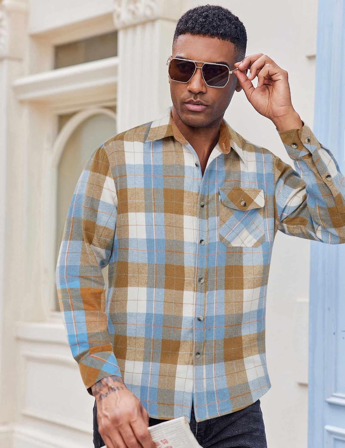 Choose COOFANDY men's long sleeve flannel shirt, made of warm, durable and comfortable material, perfect for wilderness camping, weekend markets, family gatherings, office work and other occasions. Available in various classic plaid patterns and solid colors, making it fashionable and versatile.