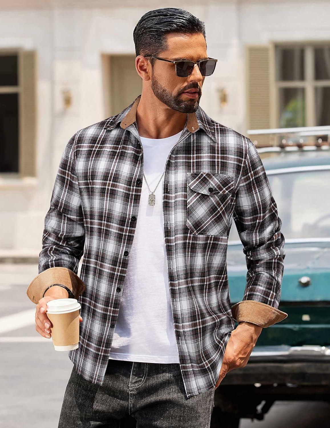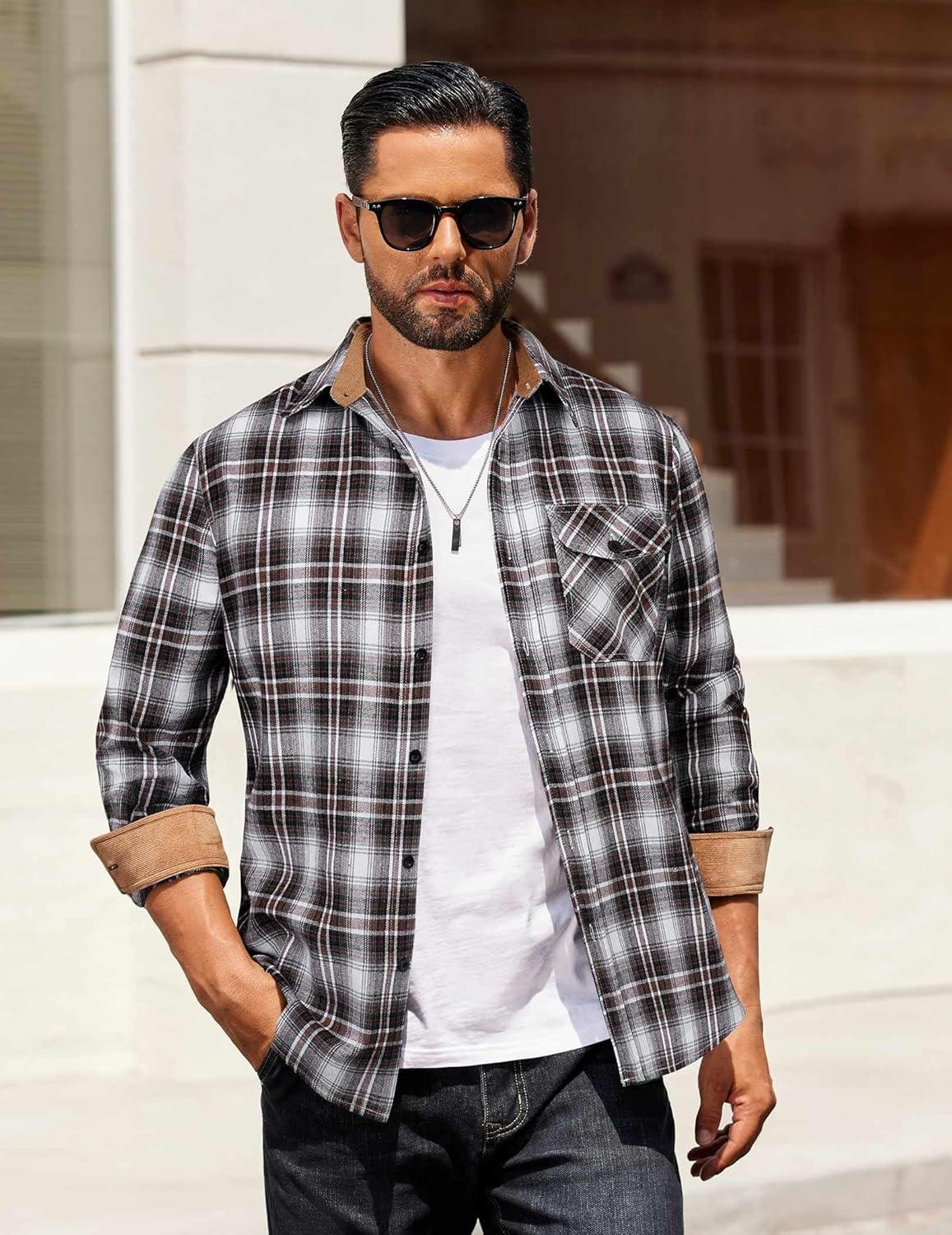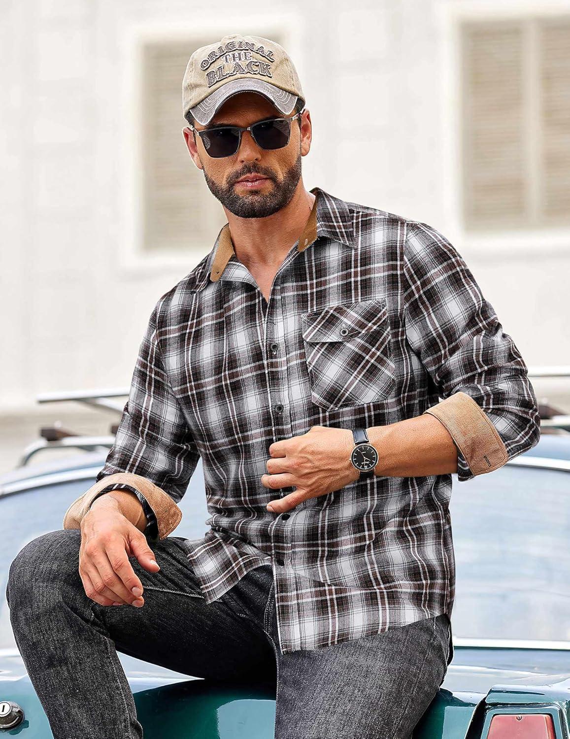 Choose COOFANDY men's long sleeve flannel shirt, made of warm, durable and comfortable material, perfect for wilderness camping, weekend markets, family gatherings, office work and other occasions. Available in various classic plaid patterns and solid colors, making it fashionable and versatile.