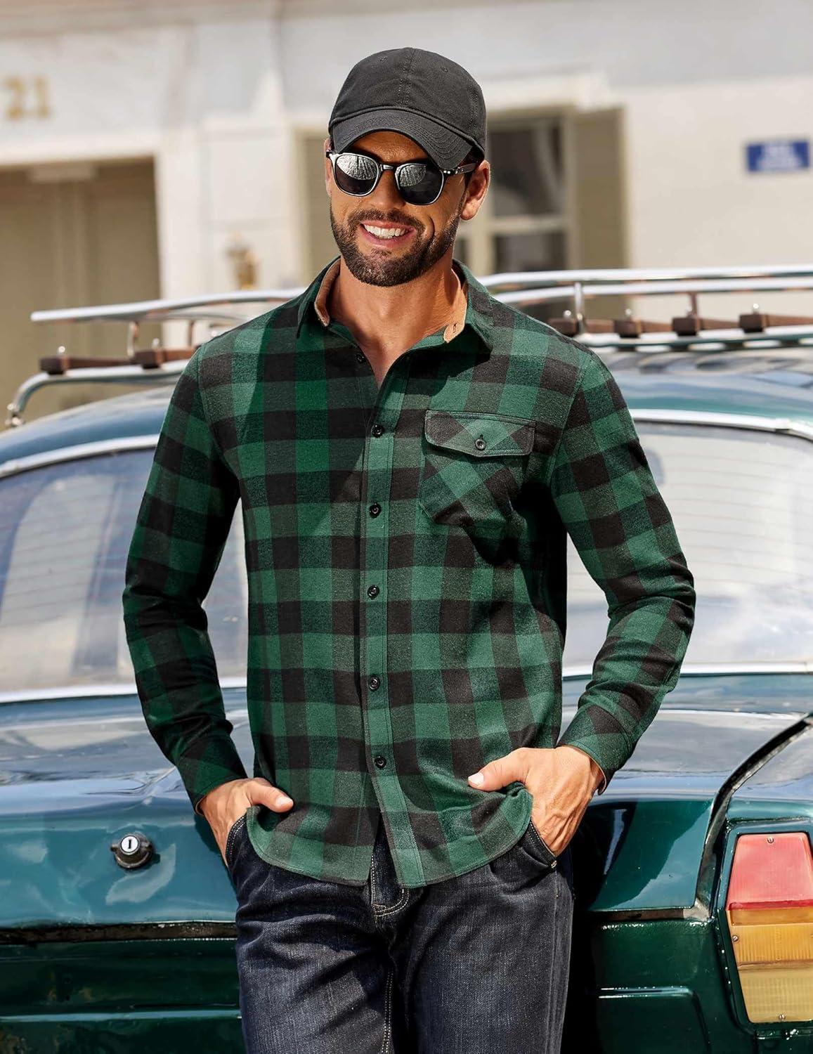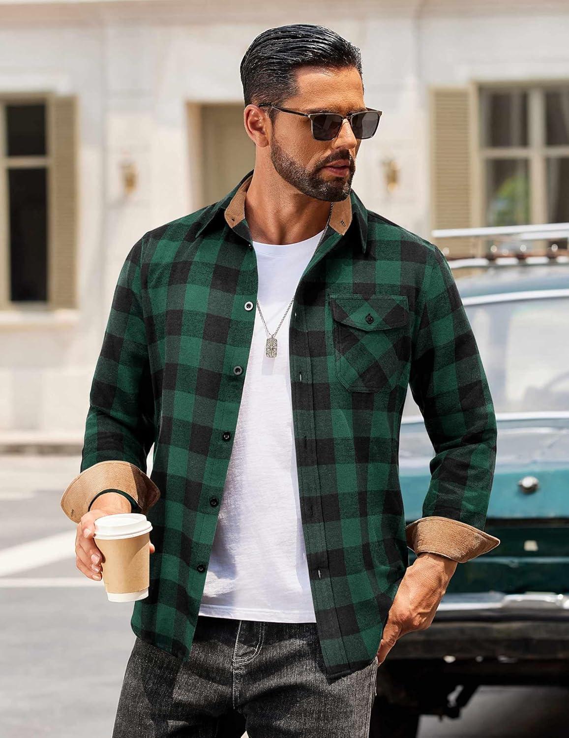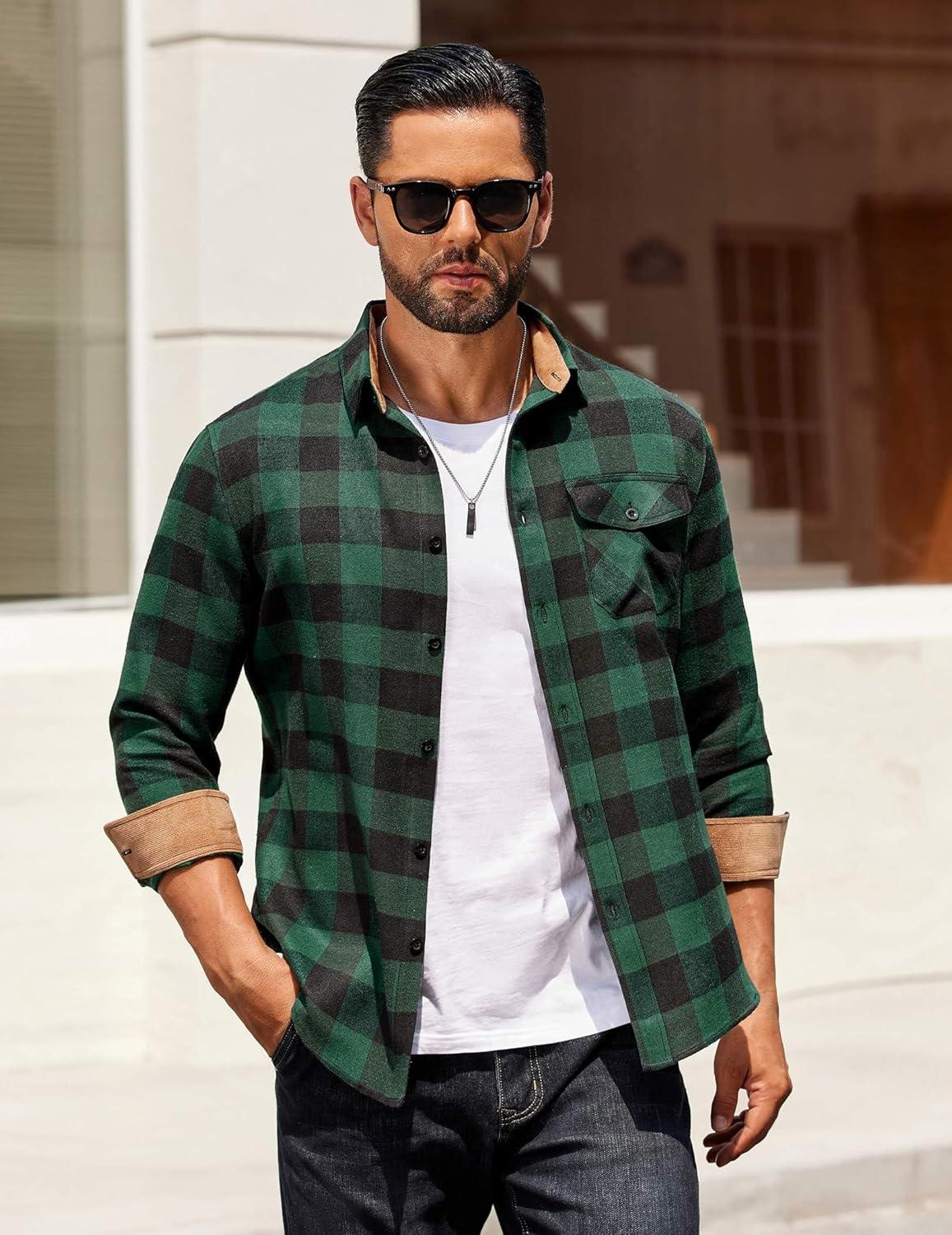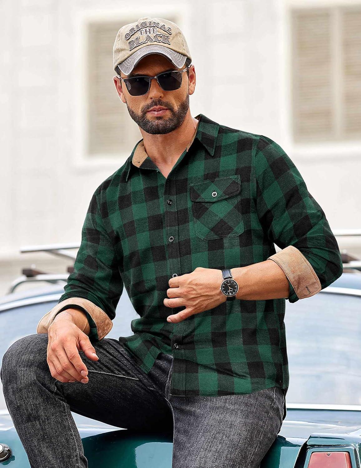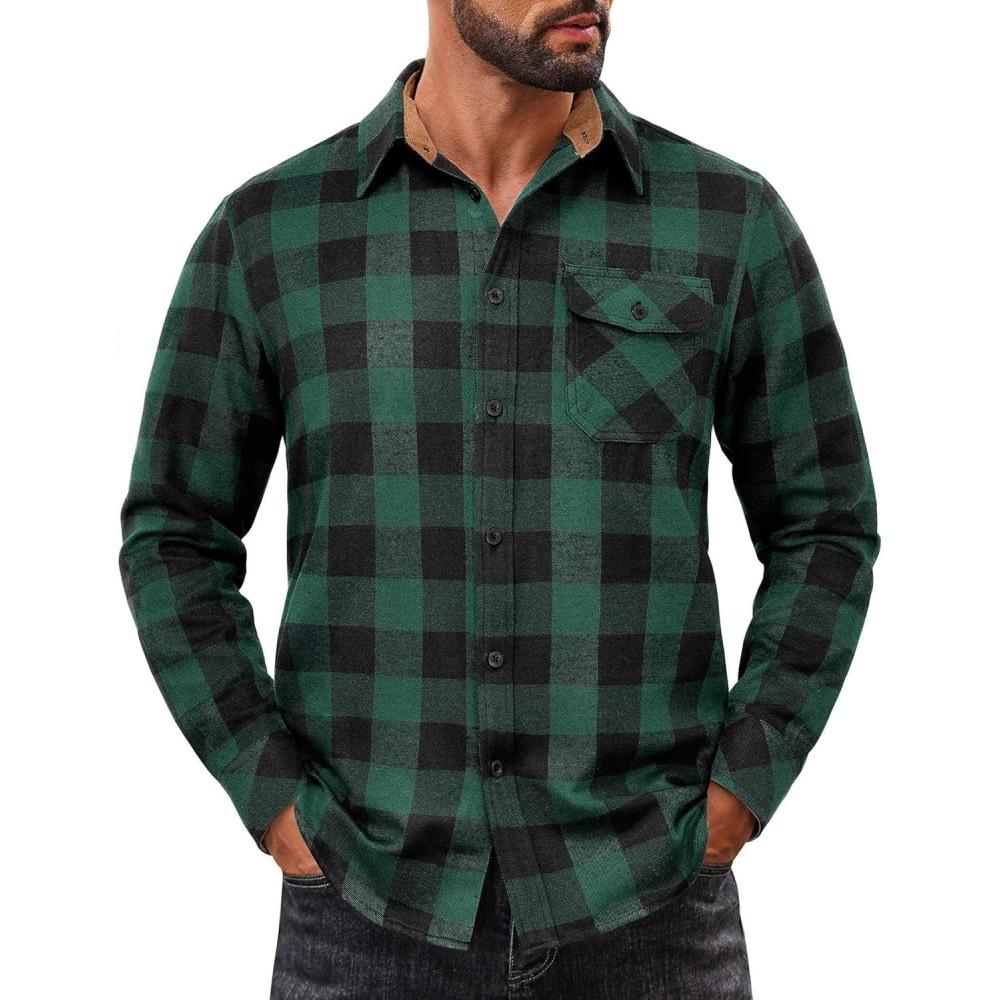 Choose COOFANDY men's long sleeve flannel shirt, made of warm, durable and comfortable material, perfect for wilderness camping, weekend markets, family gatherings, office work and other occasions. Available in various classic plaid patterns and solid colors, making it fashionable and versatile.