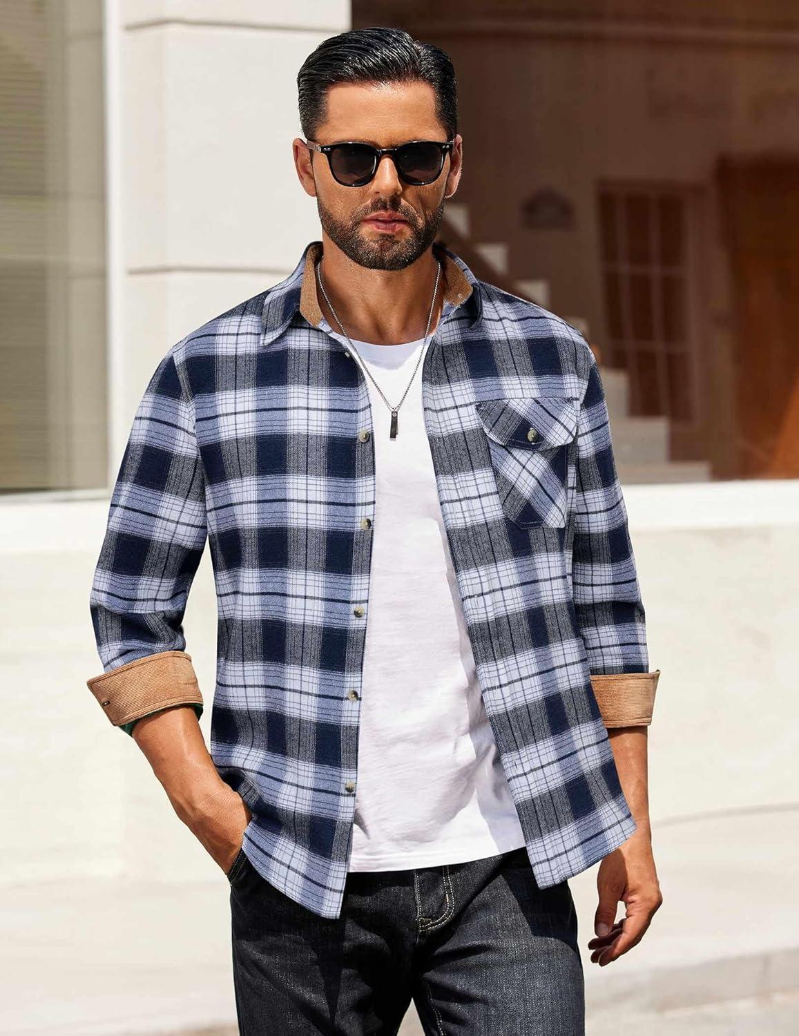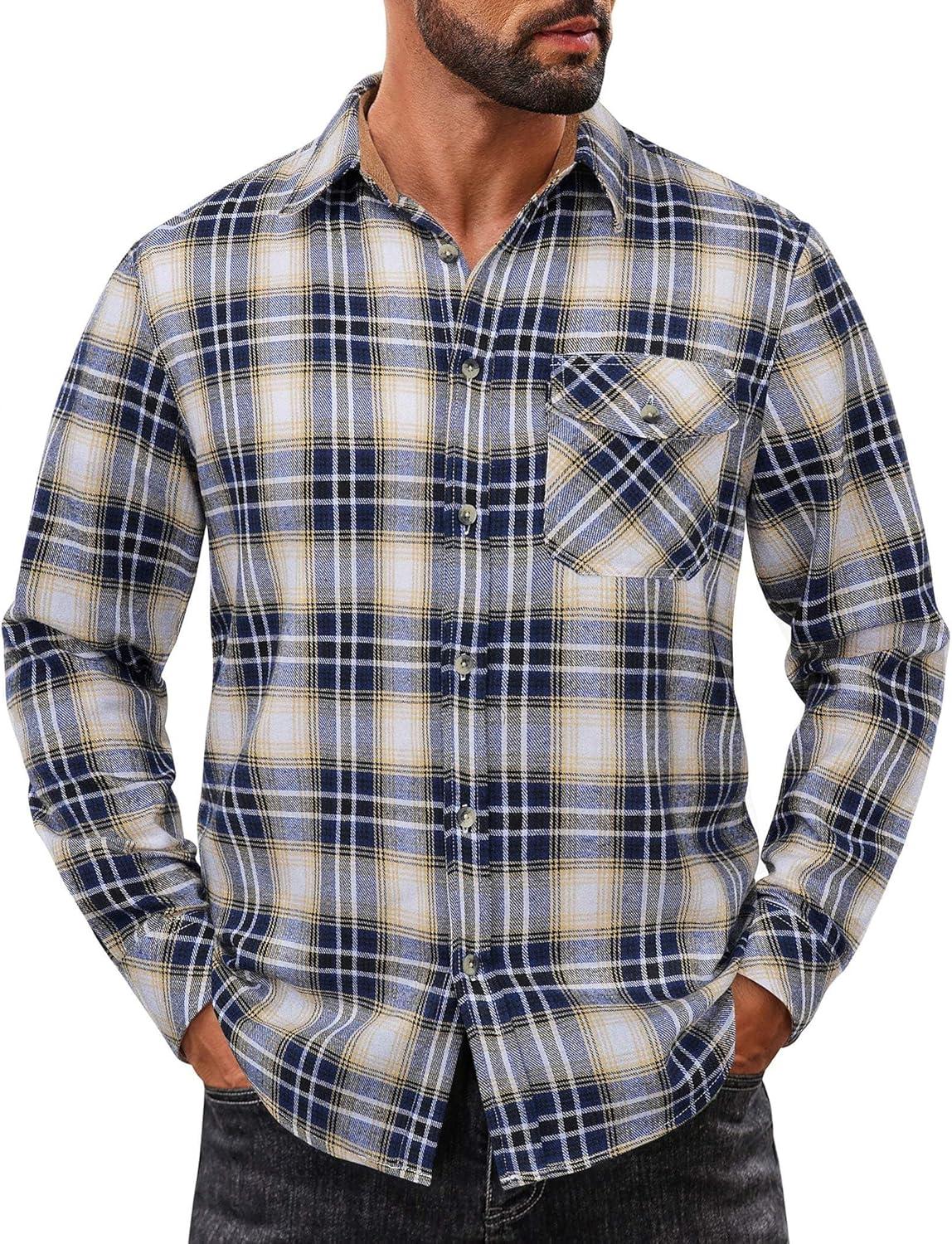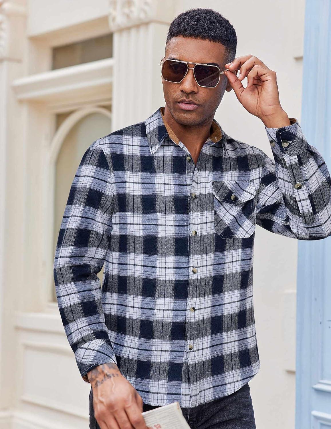 Choose COOFANDY men's long sleeve flannel shirt, made of warm, durable and comfortable material, perfect for wilderness camping, weekend markets, family gatherings, office work and other occasions. Available in various classic plaid patterns and solid colors, making it fashionable and versatile.