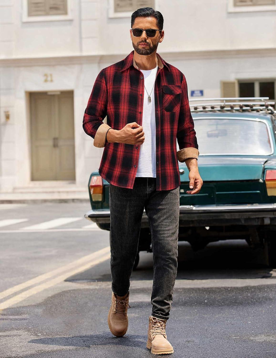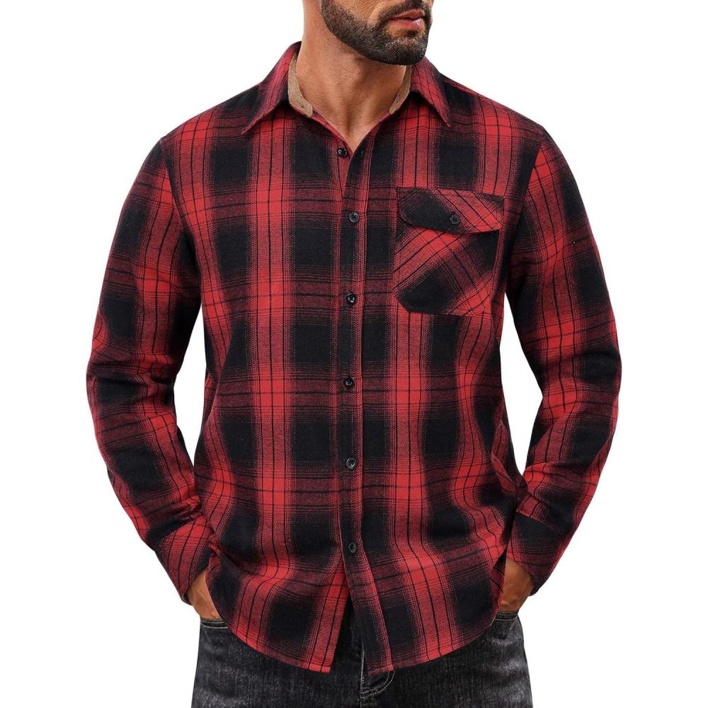 Choose COOFANDY men's long sleeve flannel shirt, made of warm, durable and comfortable material, perfect for wilderness camping, weekend markets, family gatherings, office work and other occasions. Available in various classic plaid patterns and solid colors, making it fashionable and versatile.