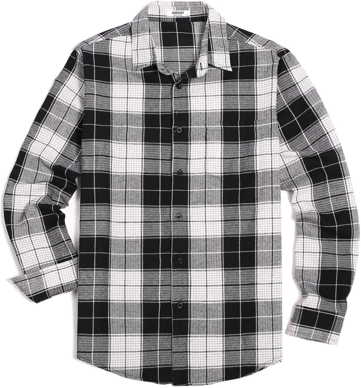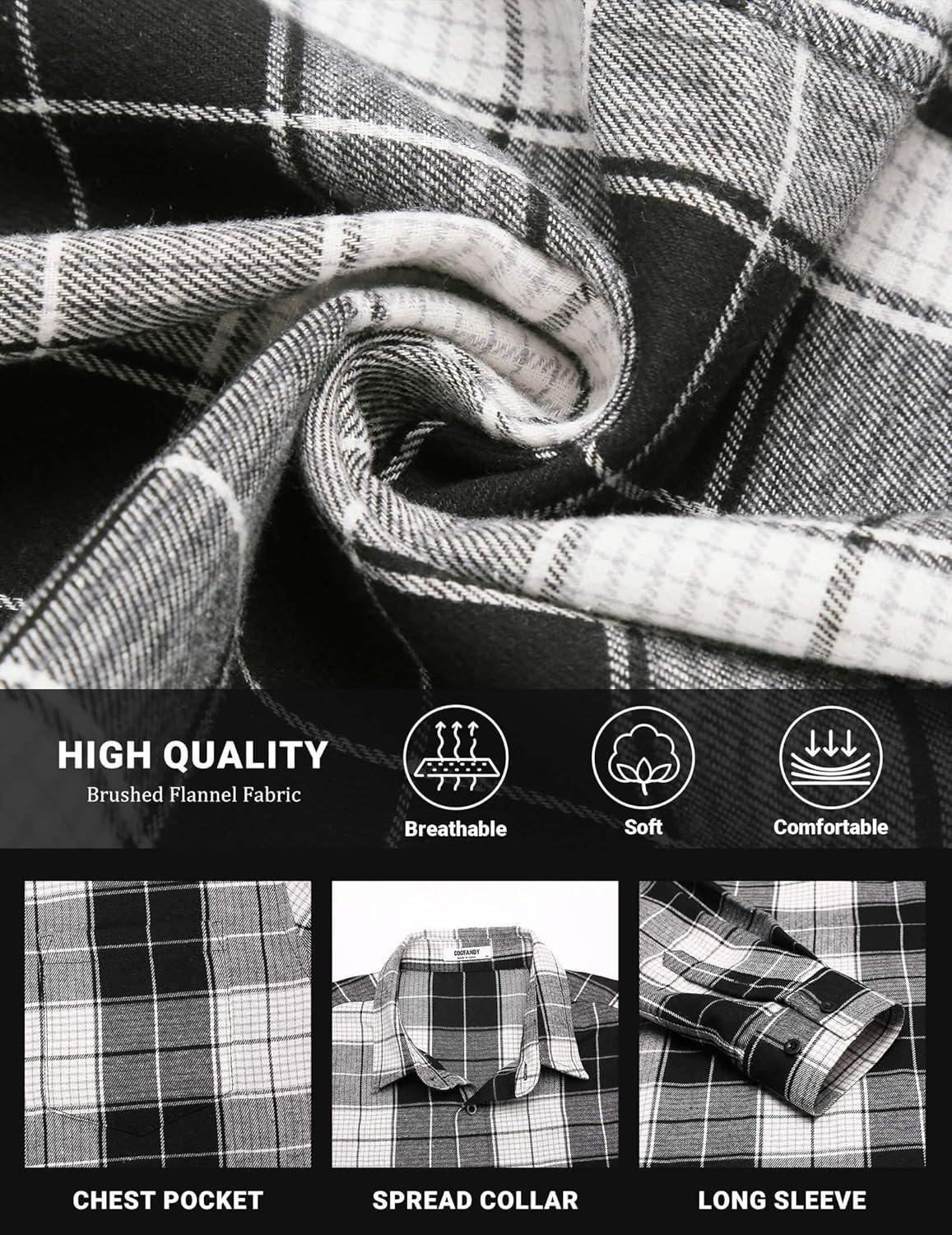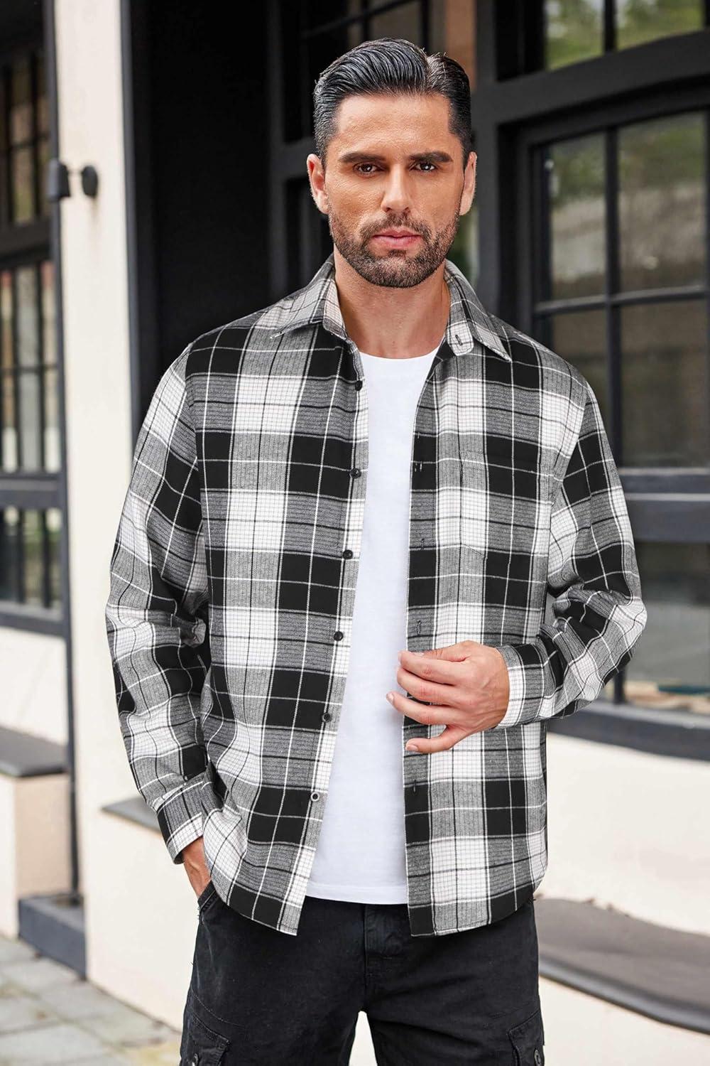 COOFANDY Mens Flannel Shirts Long Sleeve Button Down Shirt with Pocket Casual Shirts Work Shirts for Men(Black and White)