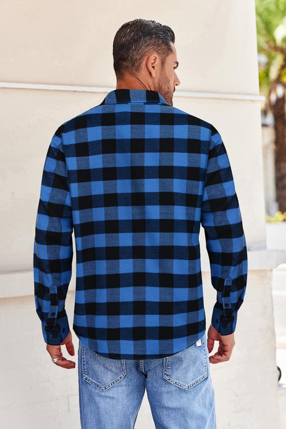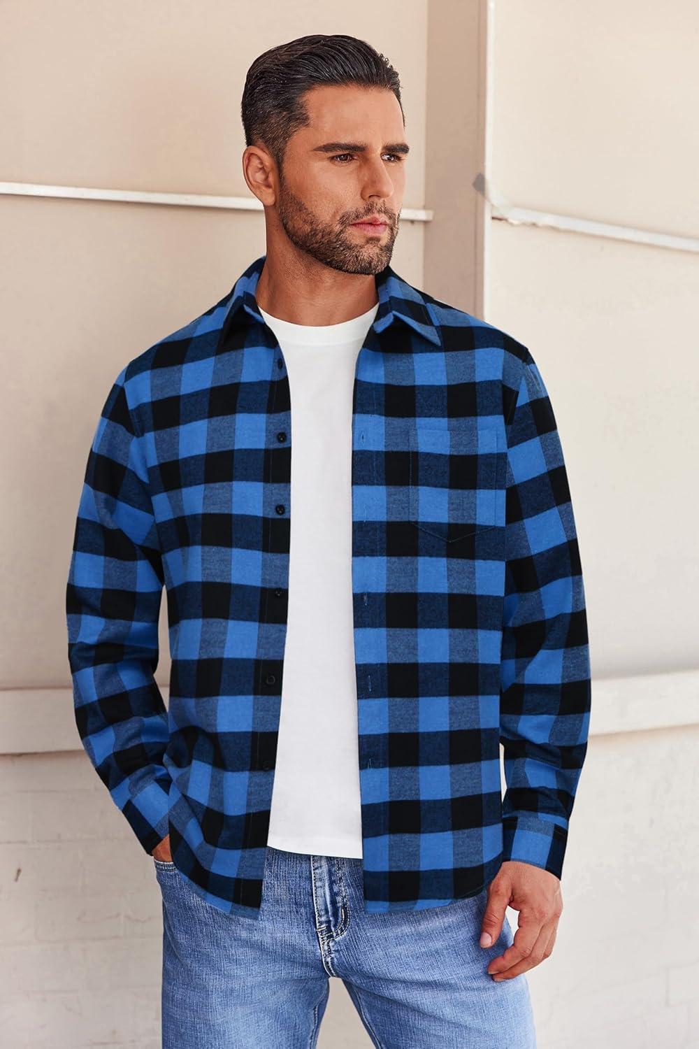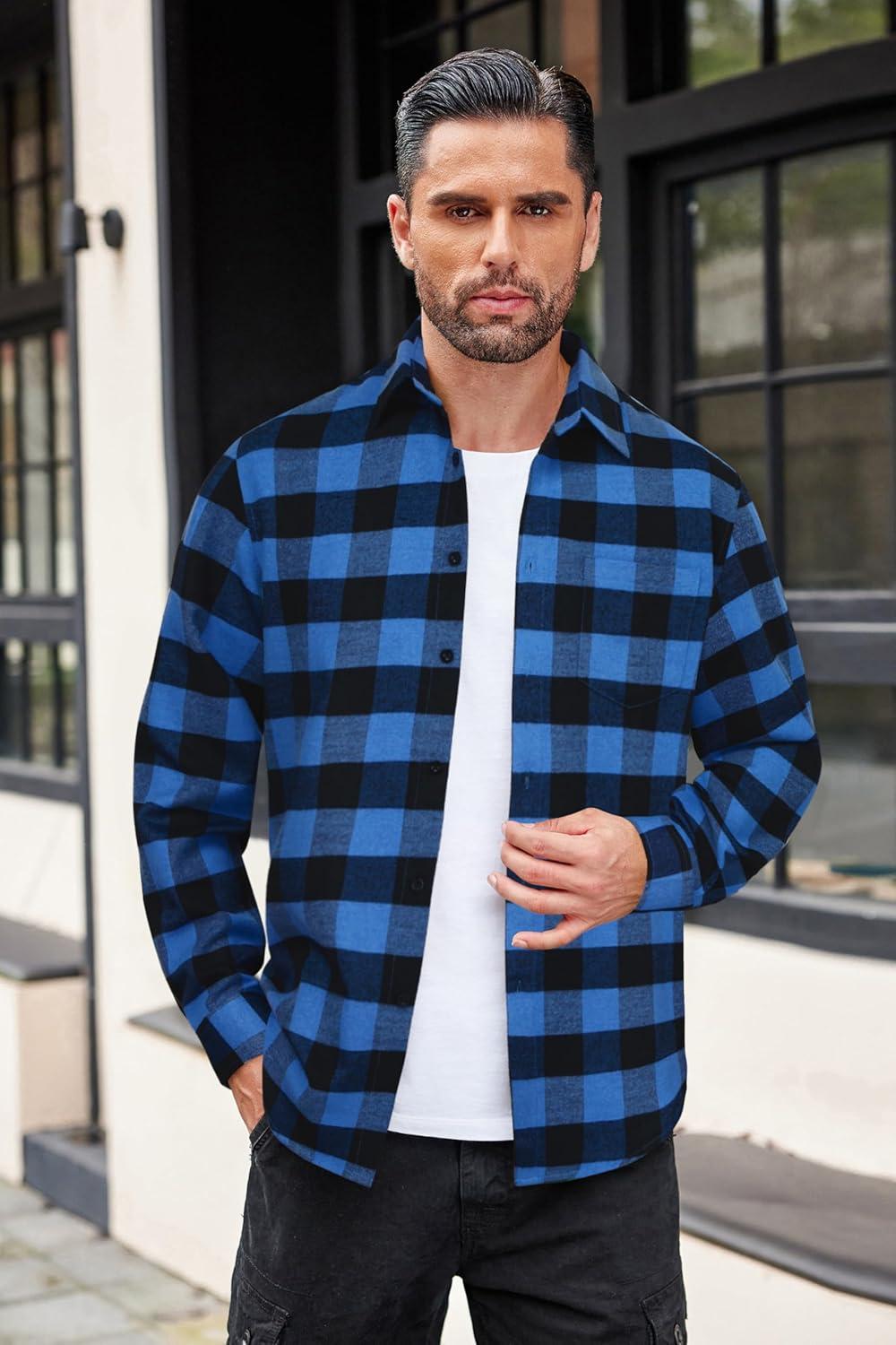 COOFANDY Mens Flannel Shirts Long Sleeve Button Down Shirt with Pocket Casual Shirts Work Shirts for Men(Blue/Black)