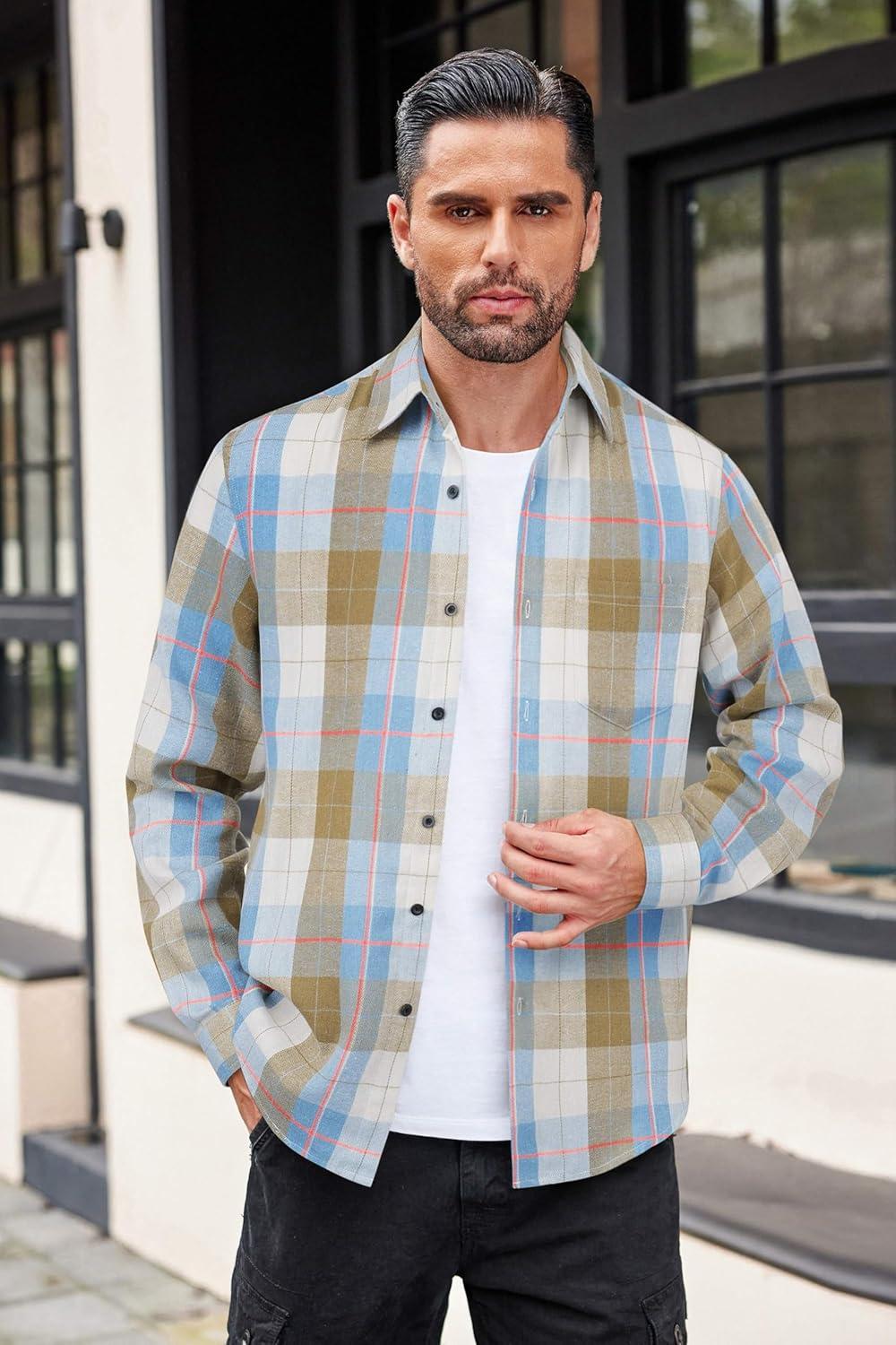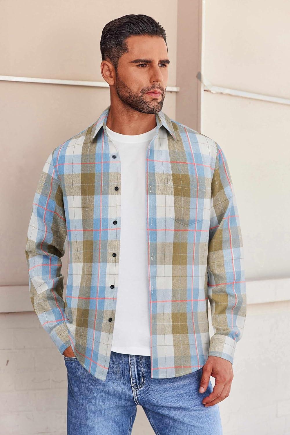 Get up to 50% off on COOFANDY Mens Flannel Shirts Long Sleeve Button Down Shirt with Pocket Casual Shirts Work Shirts for Men(Blue Brown) styles during our spring sale event.