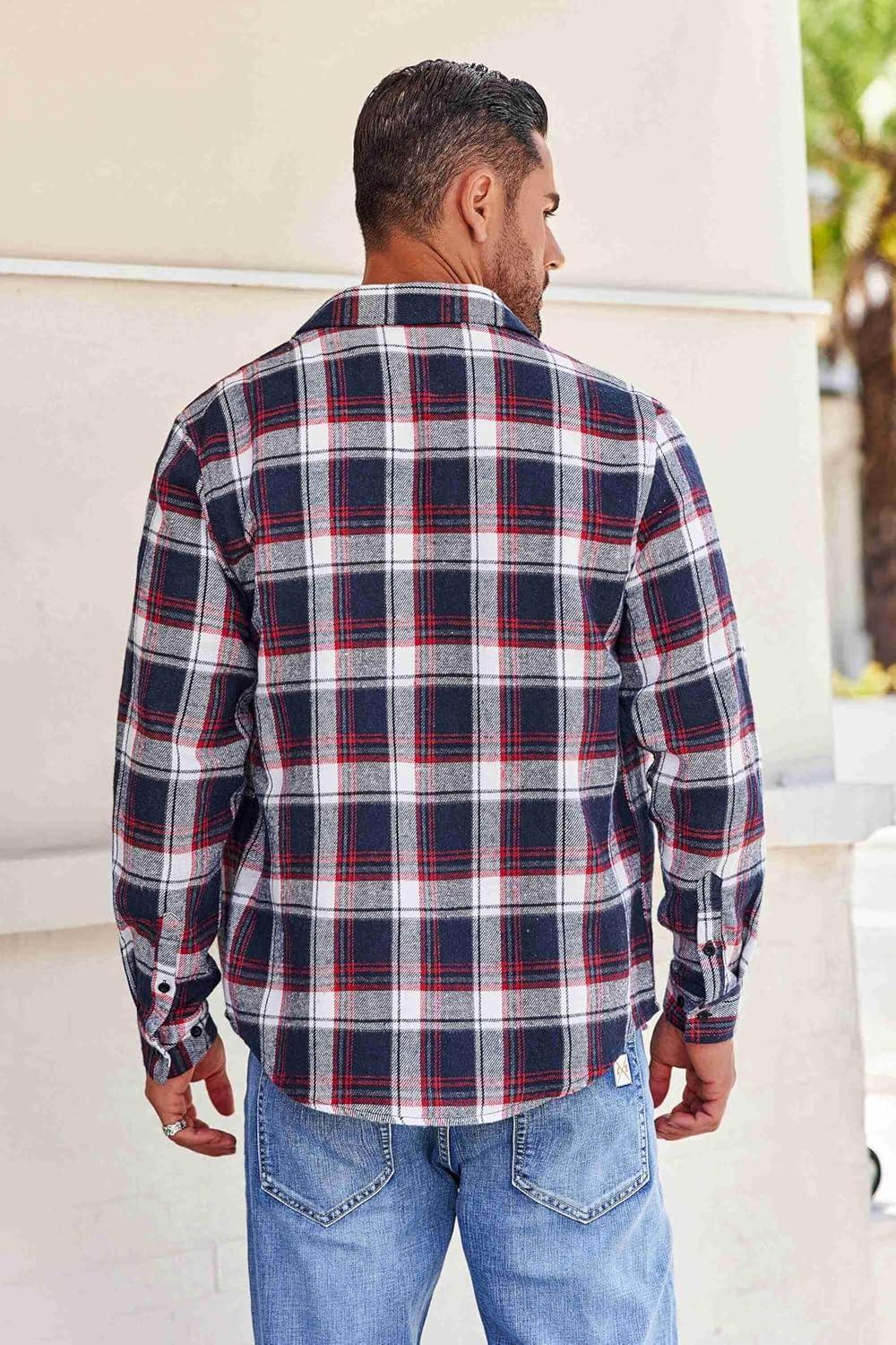 imageCOOFANDY Mens Flannel Shirts Long Sleeve Button Down Shirt with Pocket Casual Shirts Work Shirts for MenNavy Red White Plaid