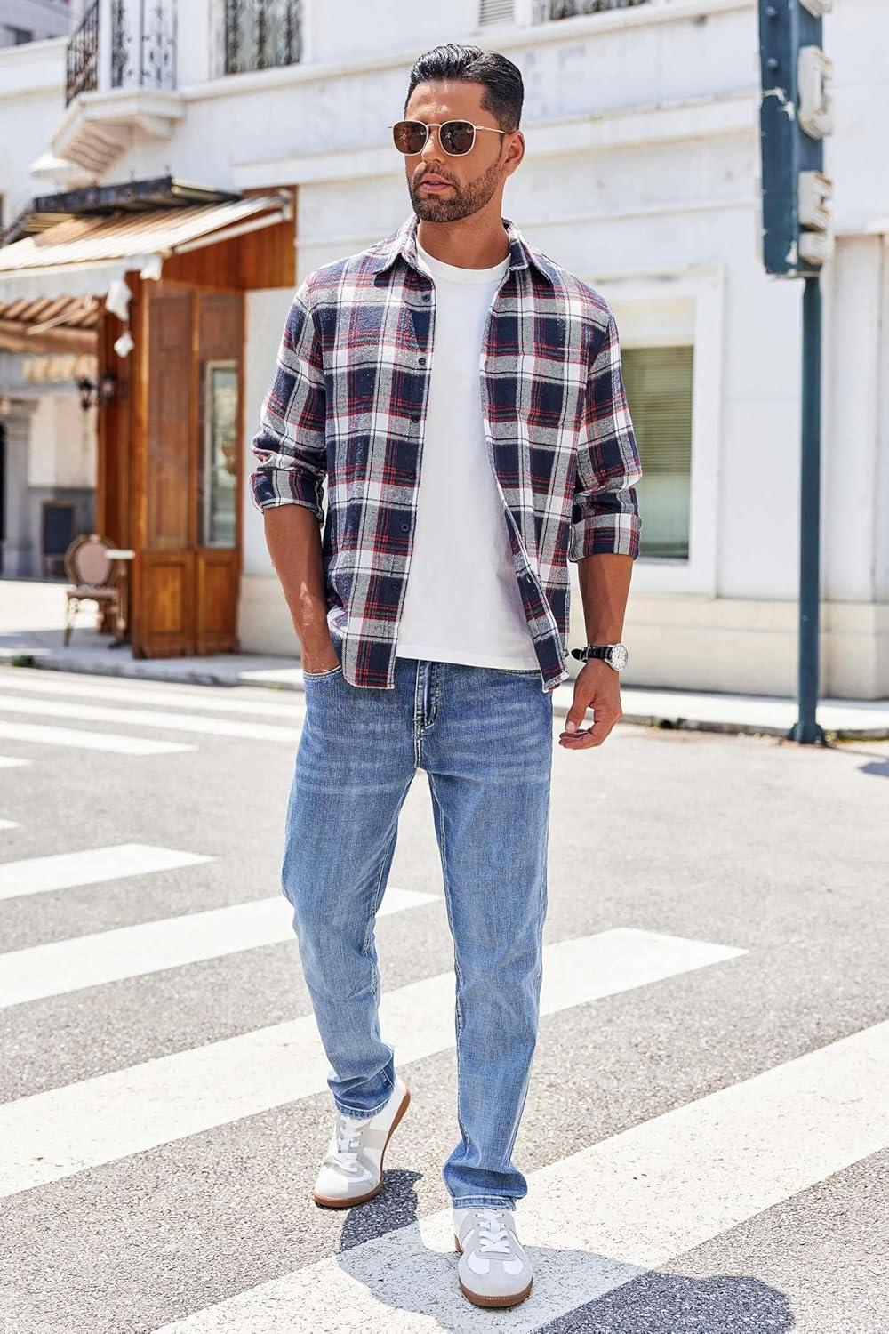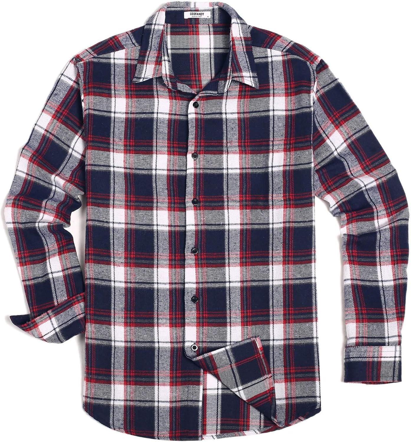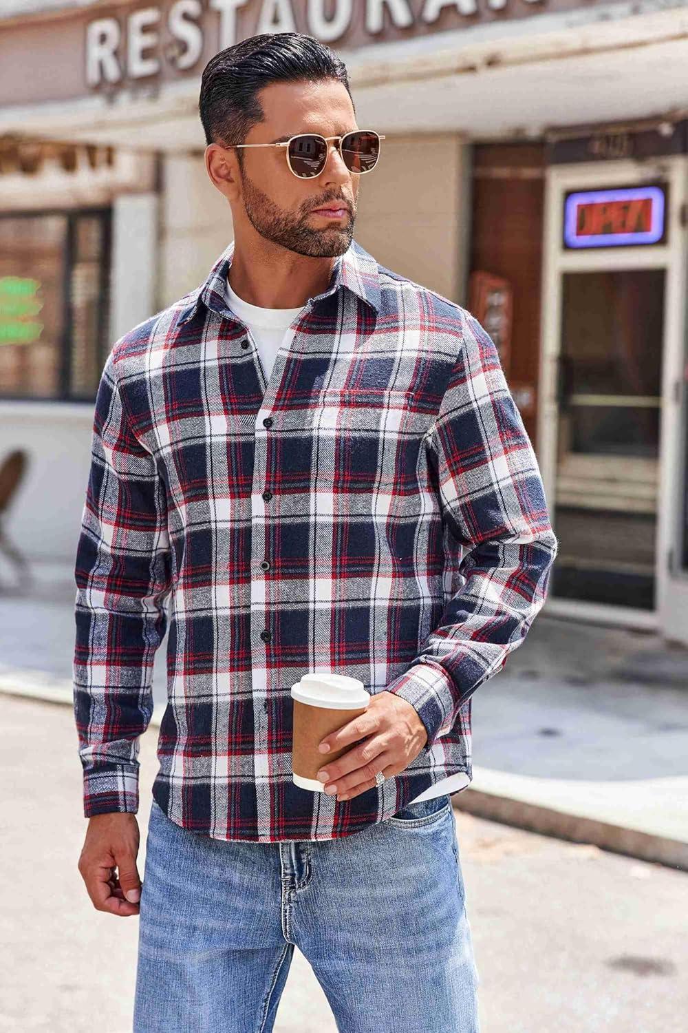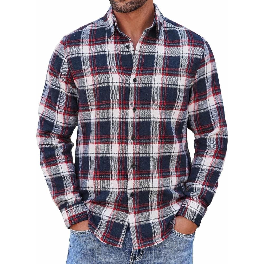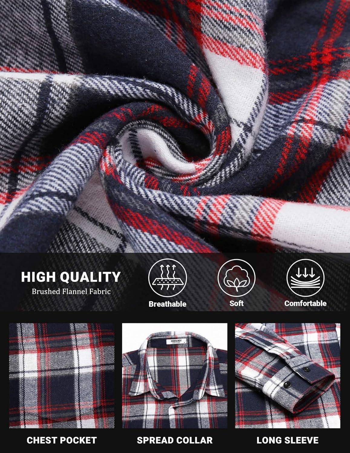 COOFANDY Mens Flannel Shirts Long Sleeve Button Down Shirt with Pocket Casual Shirts Work Shirts for Men(Navy Red White Plaid)