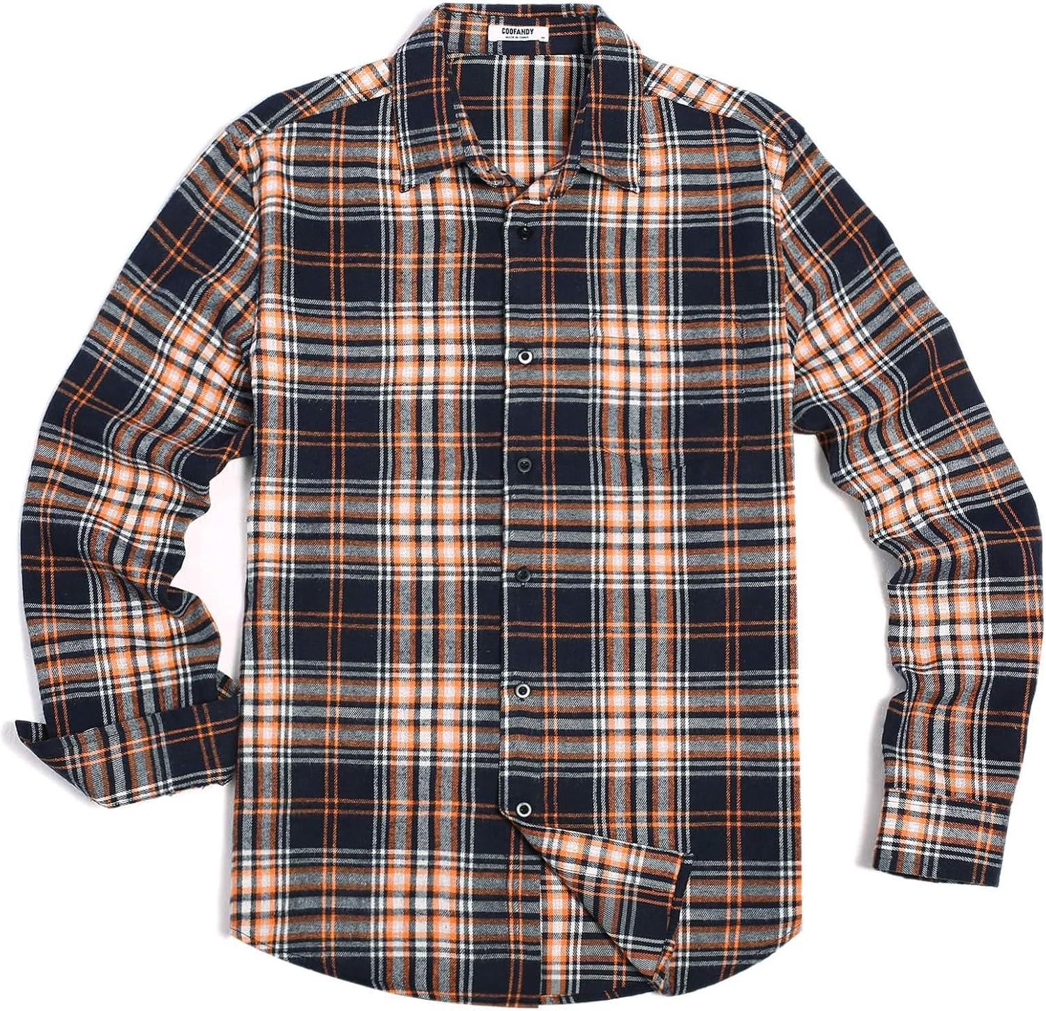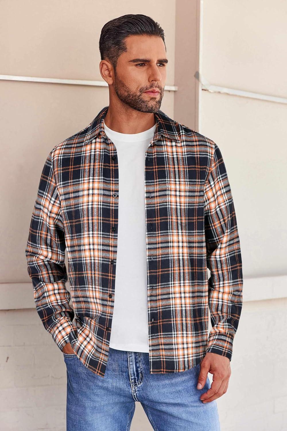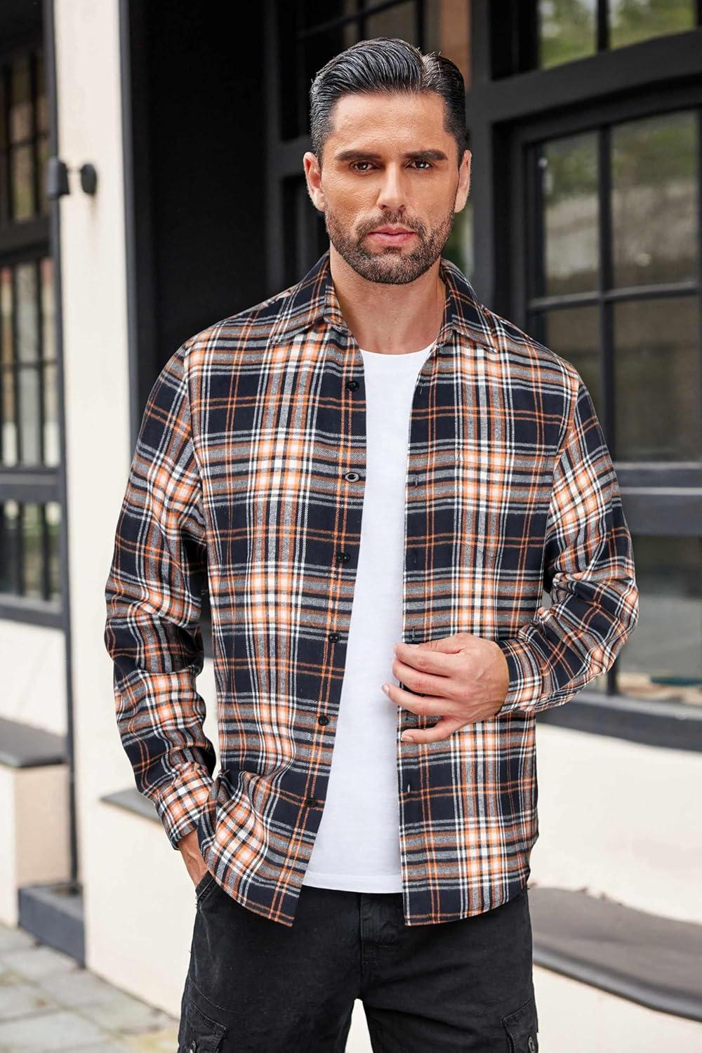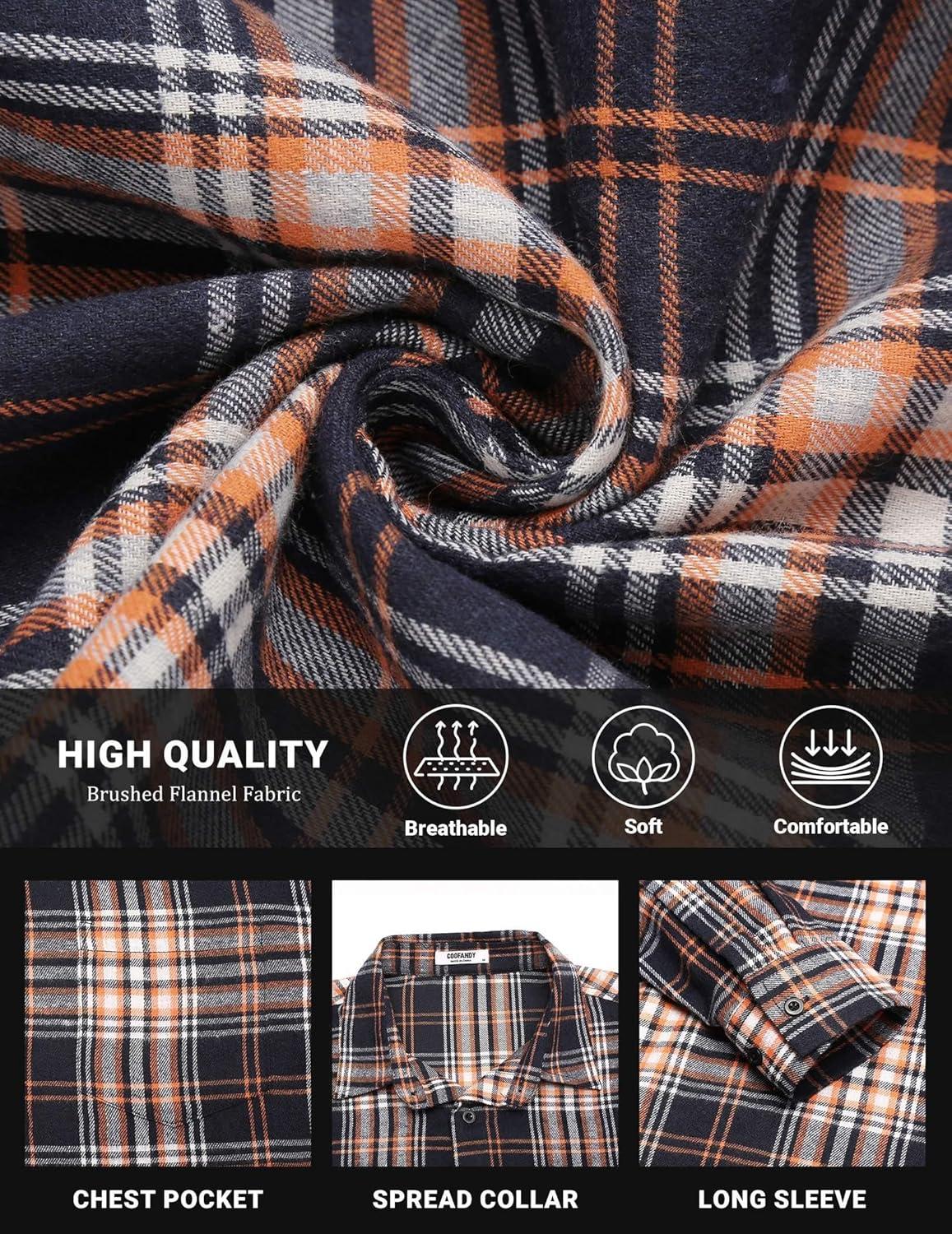 COOFANDY Mens Flannel Shirts Long Sleeve Button Down Shirt with Pocket Casual Shirts Work Shirts for Men(Orange Navy White Plaid)