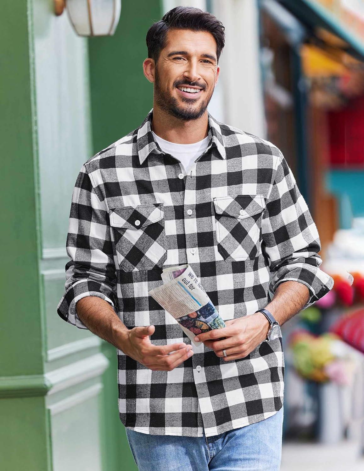 COOFANDY Mens Flannel Shirts Long Sleeve Casual Plaid Button Down Shirt Cotton Shirt Cowboy Work Shirts with Pockets(Black)