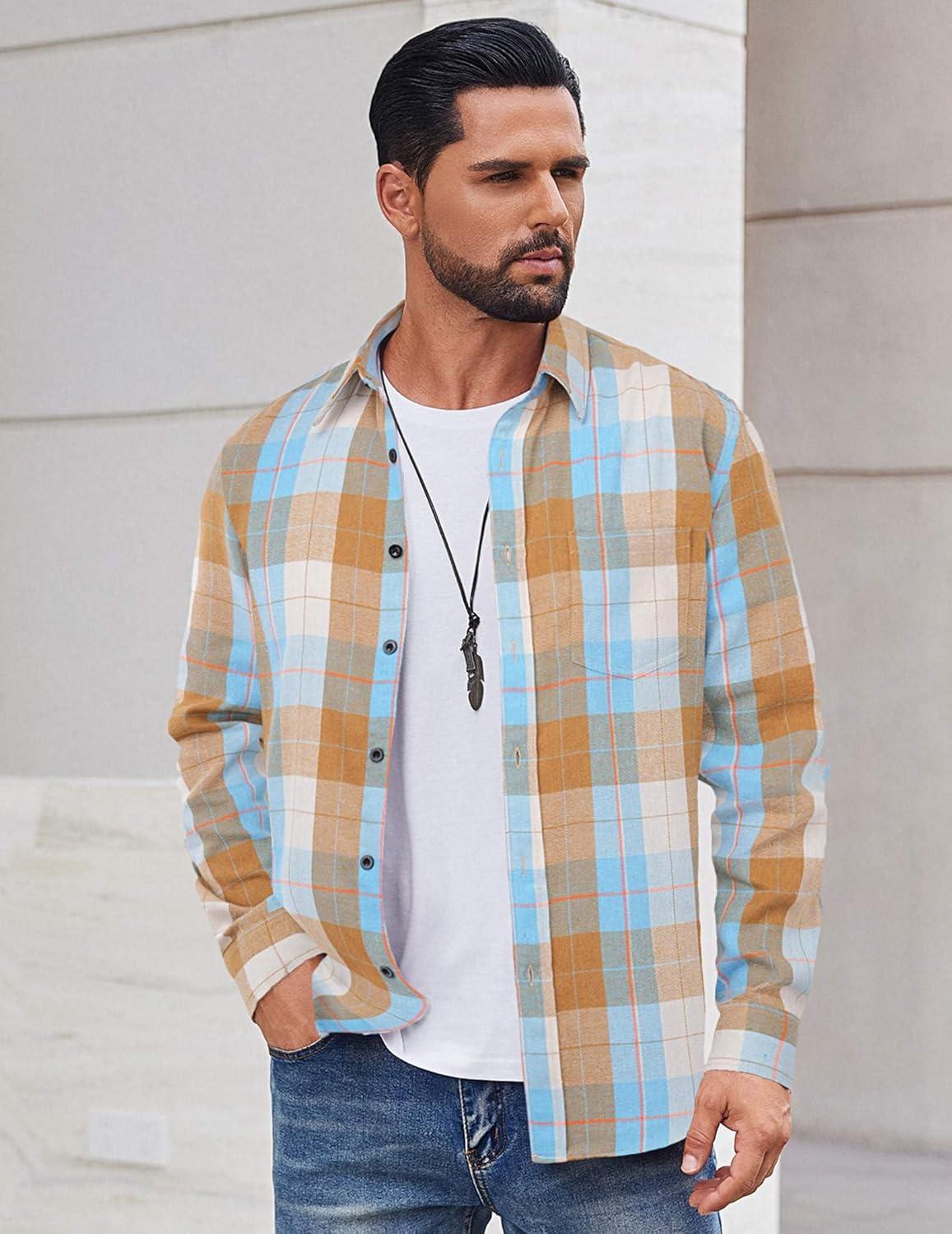 COOFANDY Mens Flannel Shirts Long Sleeve Casual Plaid Shirt for Men Button Up Shirt Jackets with Pocket(Plaid - Khaki Blue)