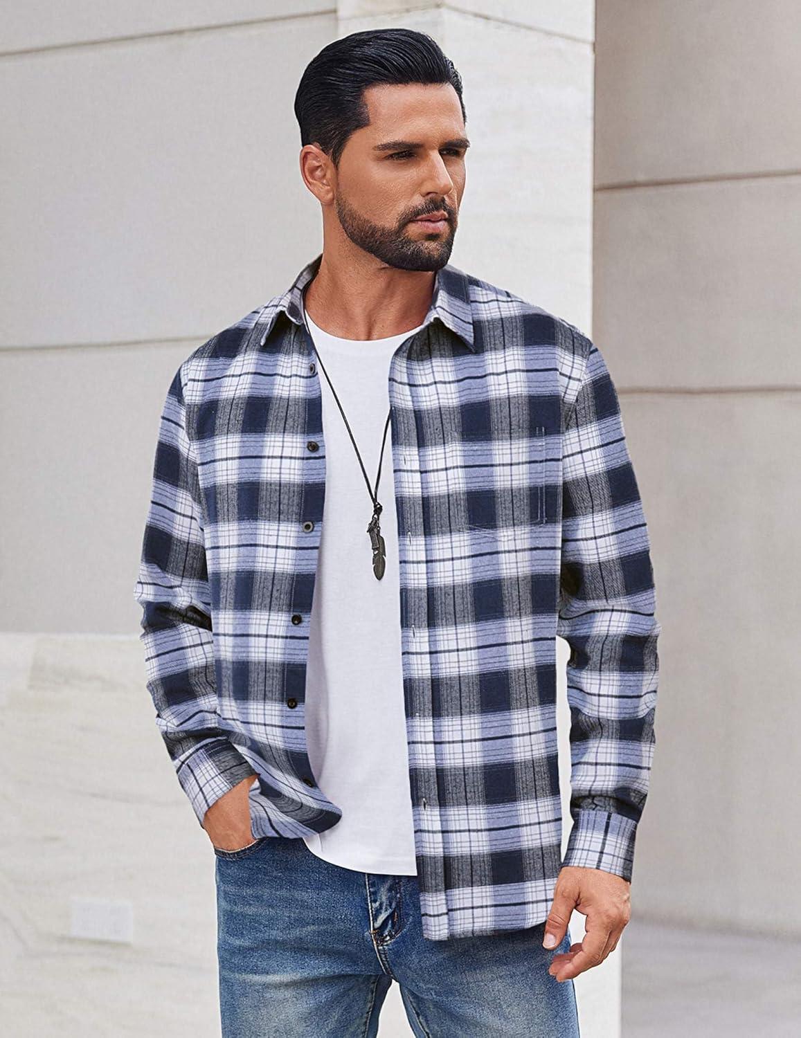COOFANDY Mens Flannel Shirts Long Sleeve Casual Plaid Shirt for Men Button Up Shirt Jackets with Pocket(Plaid - Navy White)