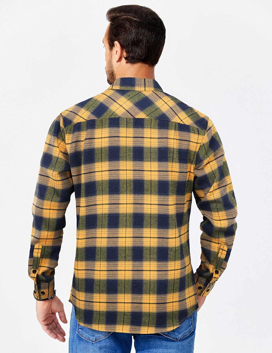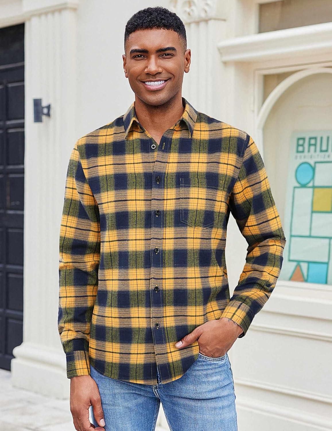 COOFANDY Mens Flannel Shirts Long Sleeve Casual Plaid Shirt for Men Button Up Shirt Jackets with Pocket(Plaid – Navy Yellow)