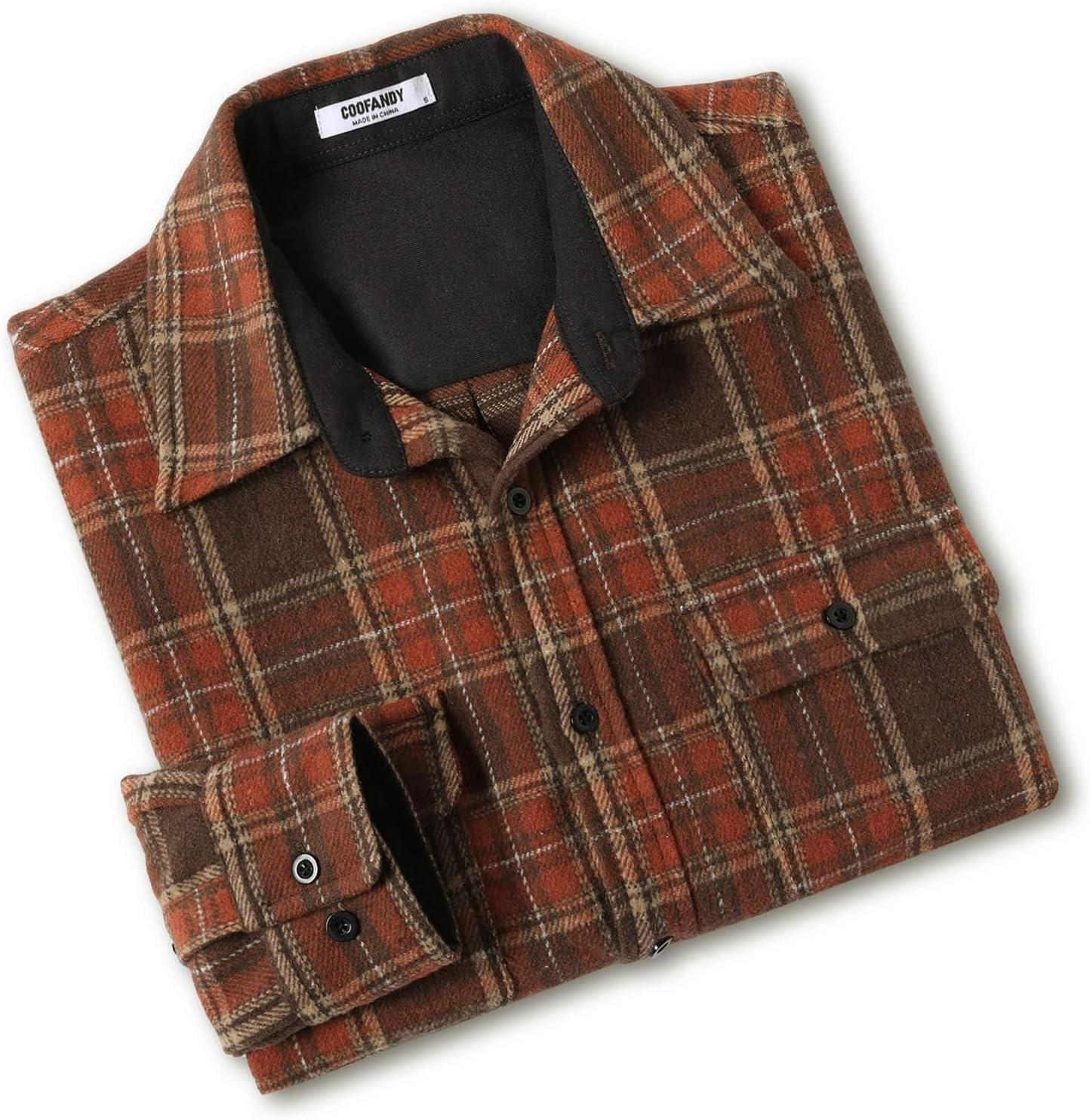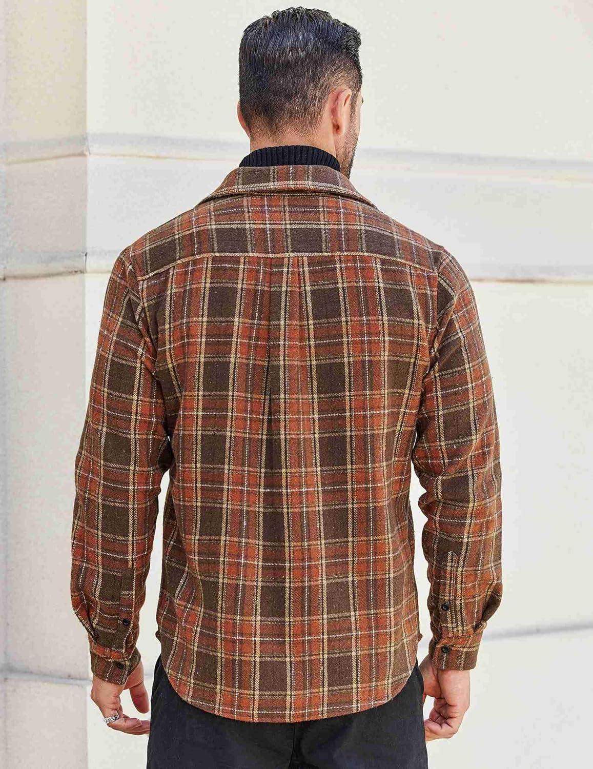 COOFANDY Men's Flannel Shirts Long Sleeve Cotton Plaid Shirt Jacket Casual Button Down Shirt with Pockets(Brown)