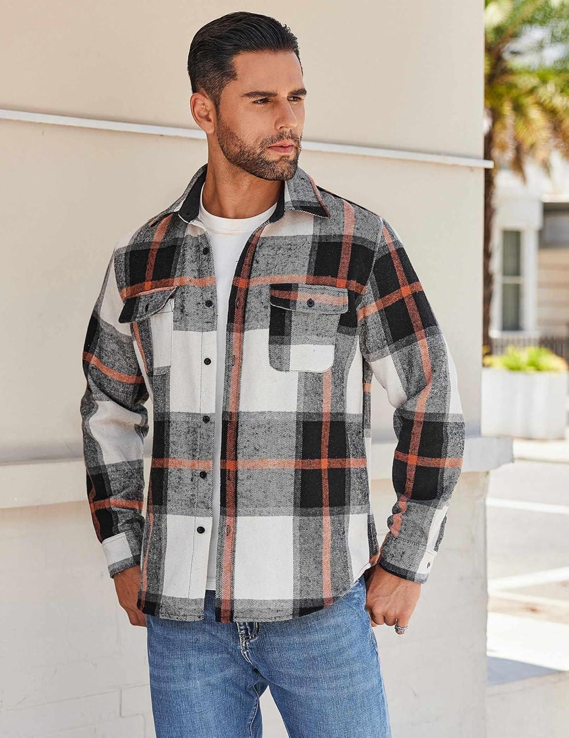 Get your hands on our newest COOFANDY Men’s Flannel Shirts Long Sleeve Cotton Plaid Shirt Jacket Casual Button Down Shirt with Pockets(Grey) and enjoy a limited-time discount offer.