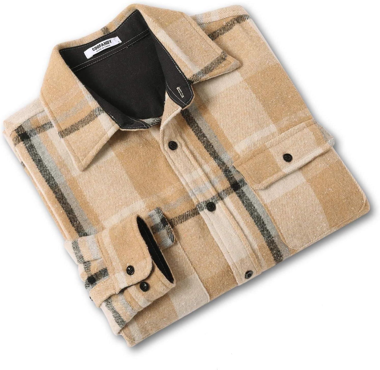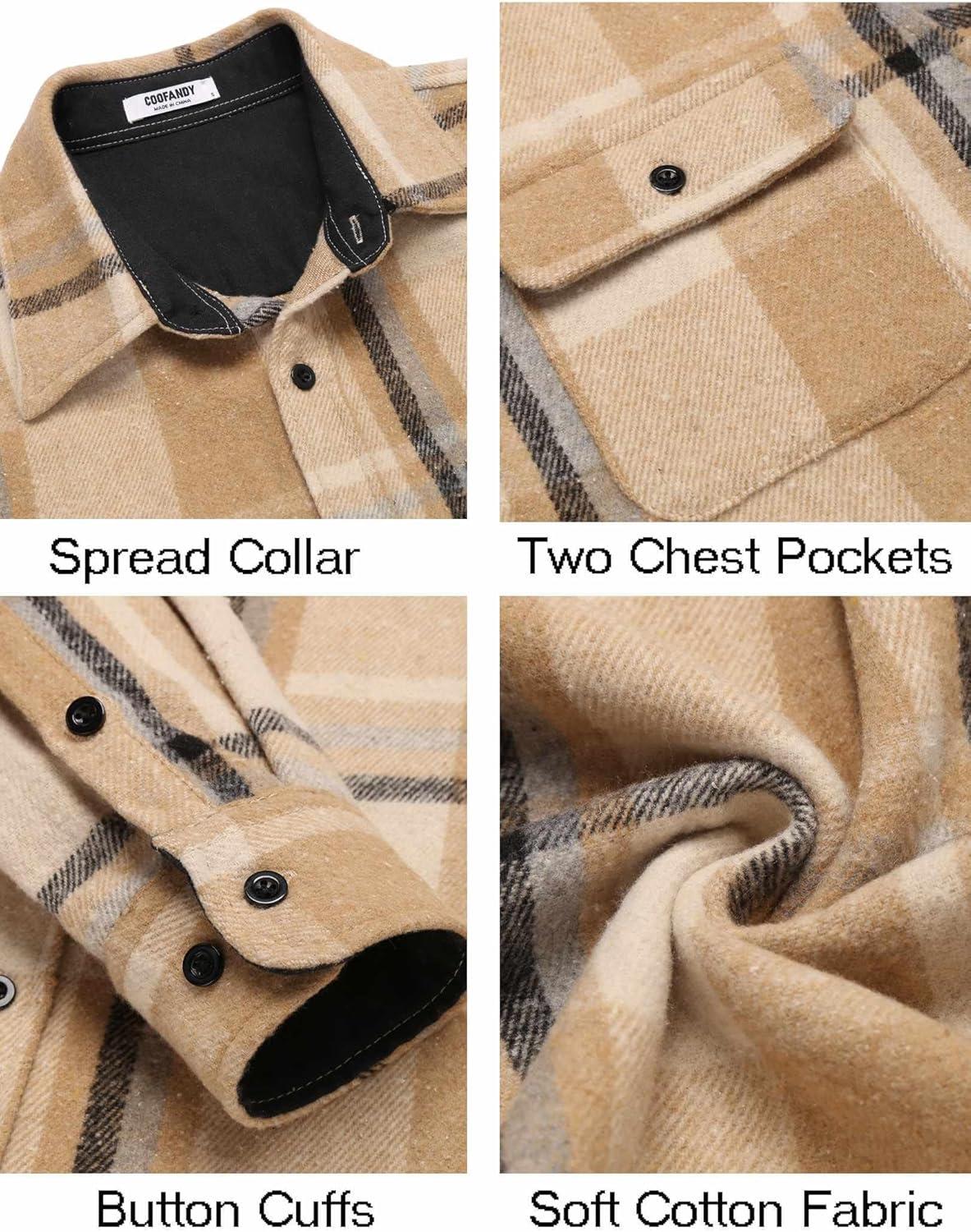 COOFANDY Men's Flannel Shirts Long Sleeve Cotton Plaid Shirt Jacket Casual Button Down Shirt with Pockets(Light Khaki)