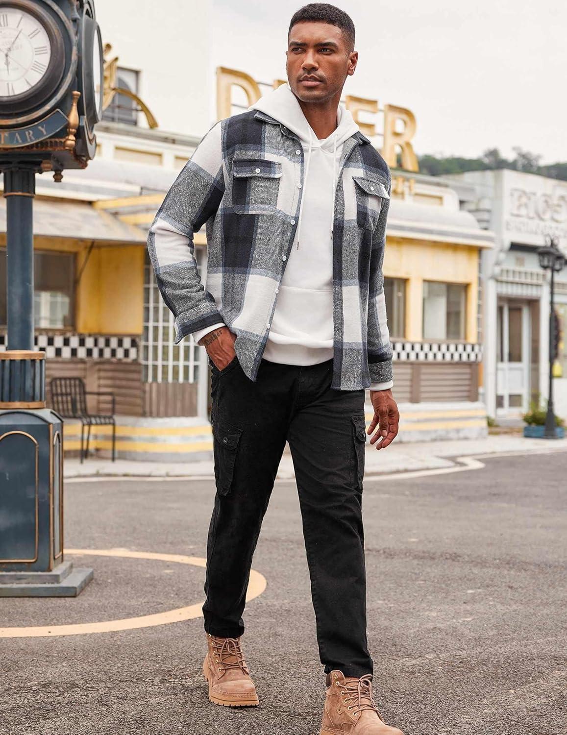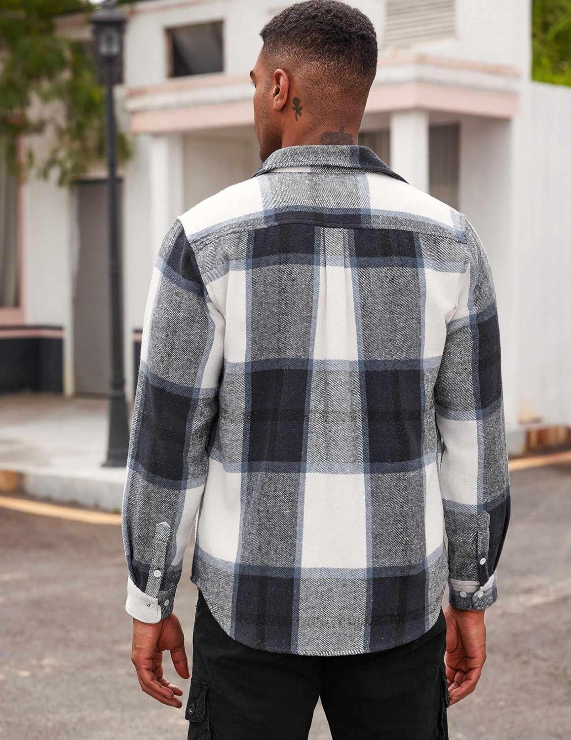 COOFANDY Men’s Flannel Shirts Long Sleeve Cotton Plaid Shirt Jacket Casual Button Down Shirt with Pockets(Light Khaki White)