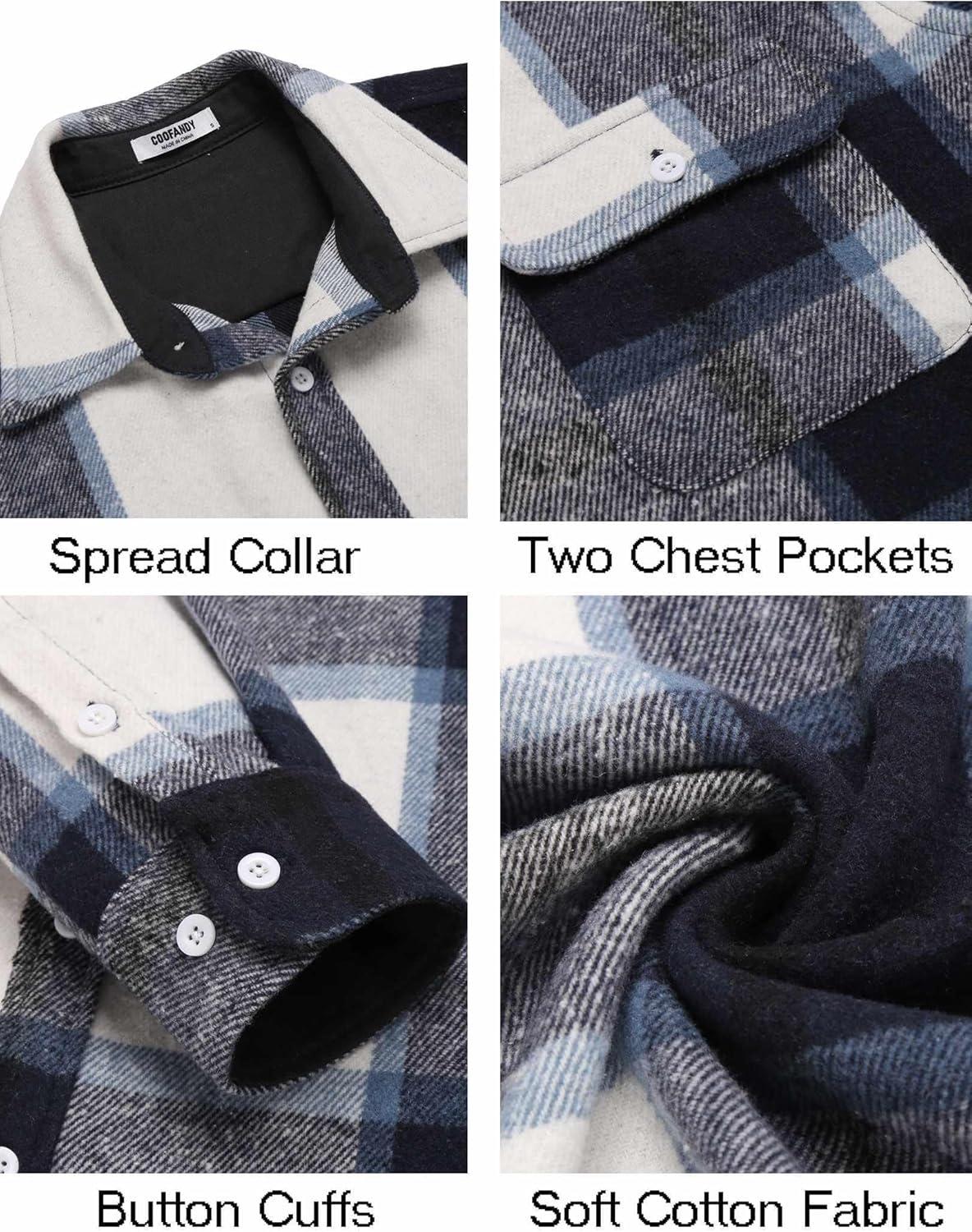 COOFANDY Men's Flannel Shirts Long Sleeve Cotton Plaid Shirt Jacket Casual Button Down Shirt with Pockets(Navy Blue)
