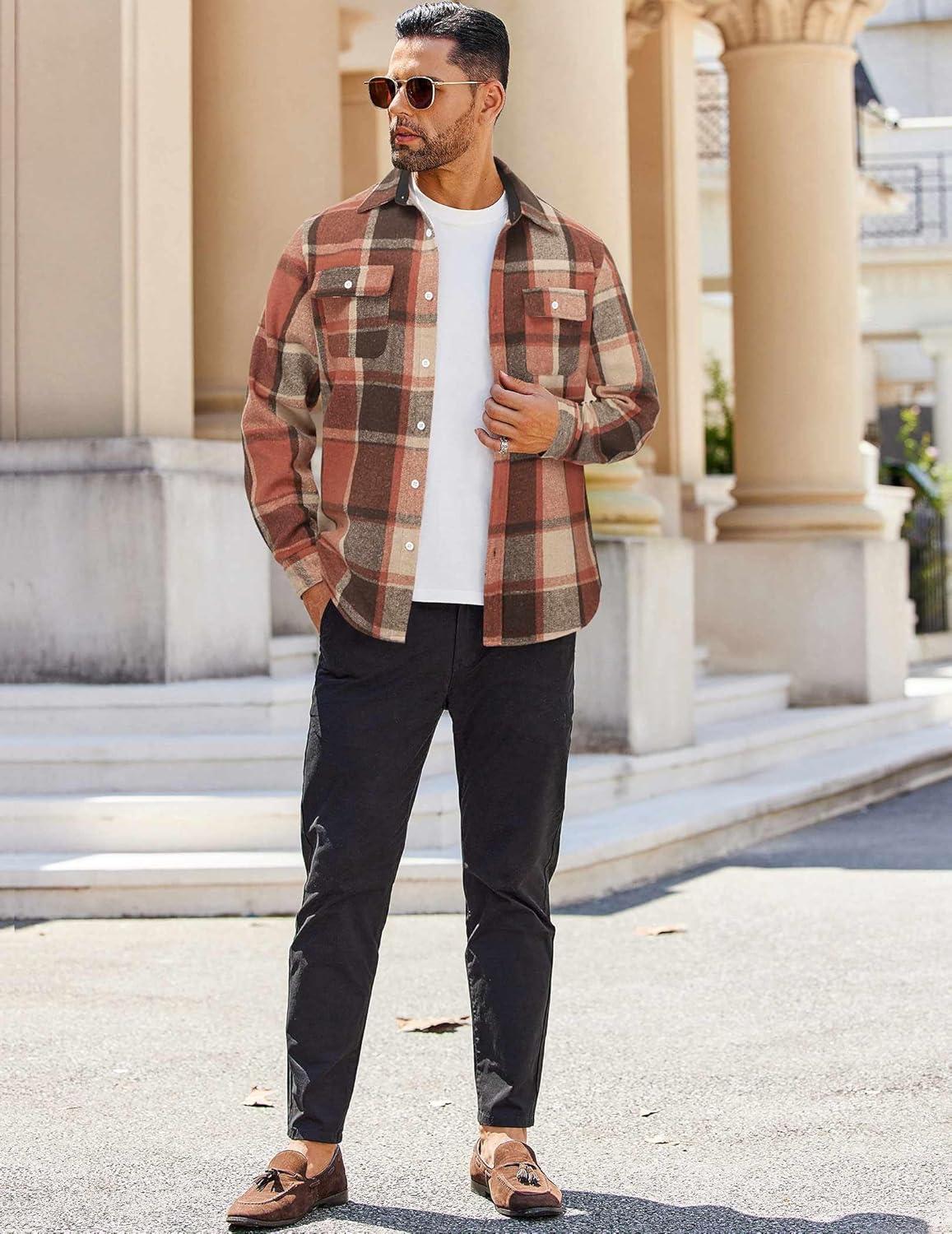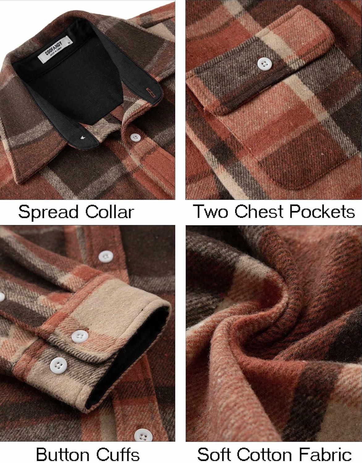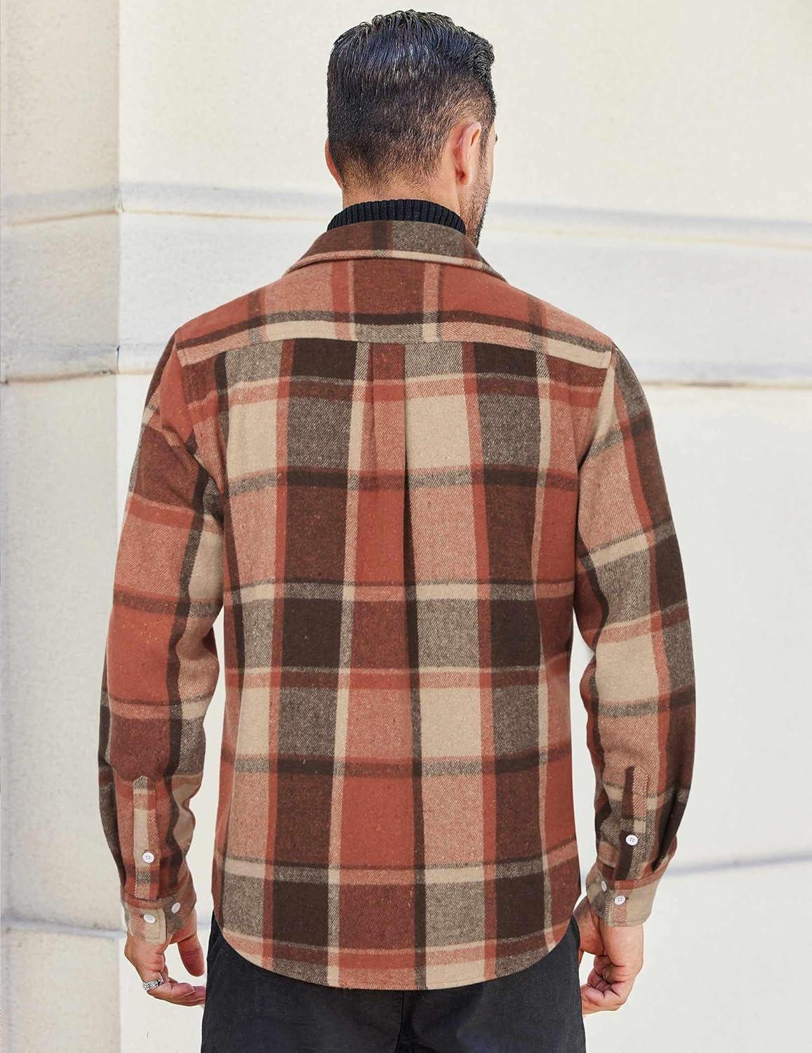 COOFANDY Men's Flannel Shirts Long Sleeve Cotton Plaid Shirt Jacket Casual Button Down Shirt with Pockets(Orange Red)