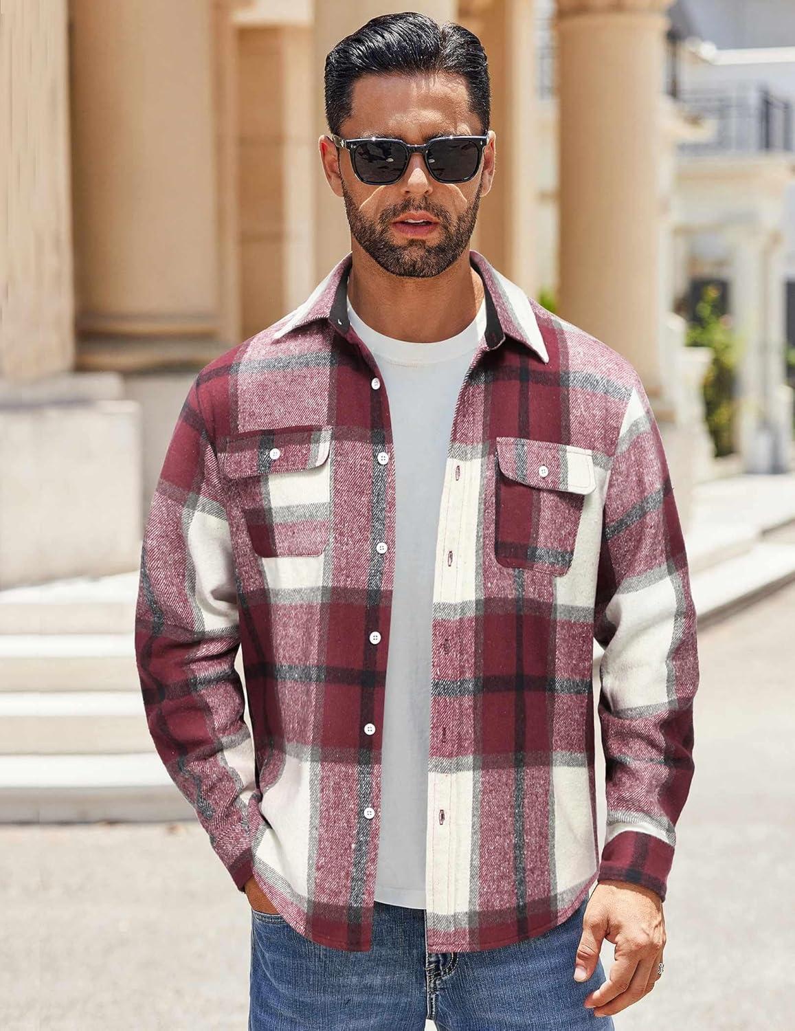 Get the COOFANDY Men’s Flannel Shirts Long Sleeve Cotton Plaid Shirt Jacket Casual Button Down Shirt with Pockets(Red) you want at a price you can afford with our markdown sale.