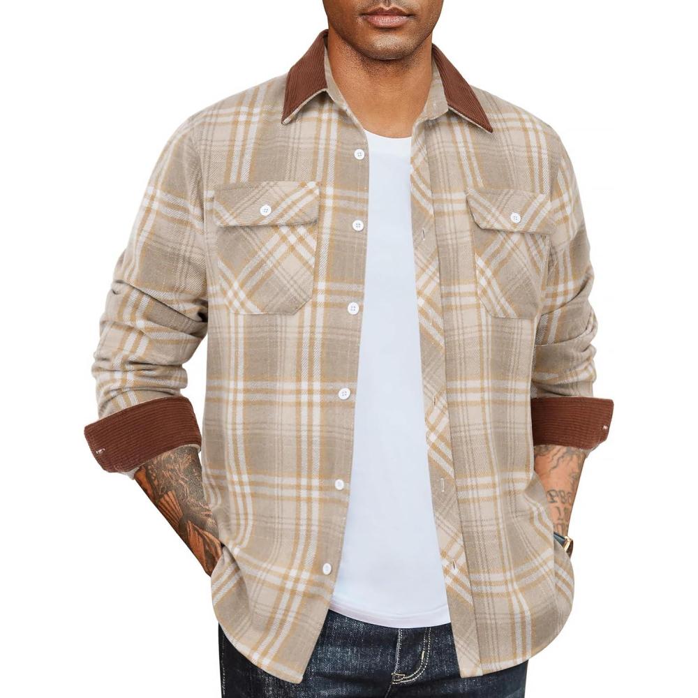 COOFANDY Mens Flannel Shirts Long Sleeve Fleece Plaid Jacket Casual Stylish Button Down Shirts with Pockets(Khaki)