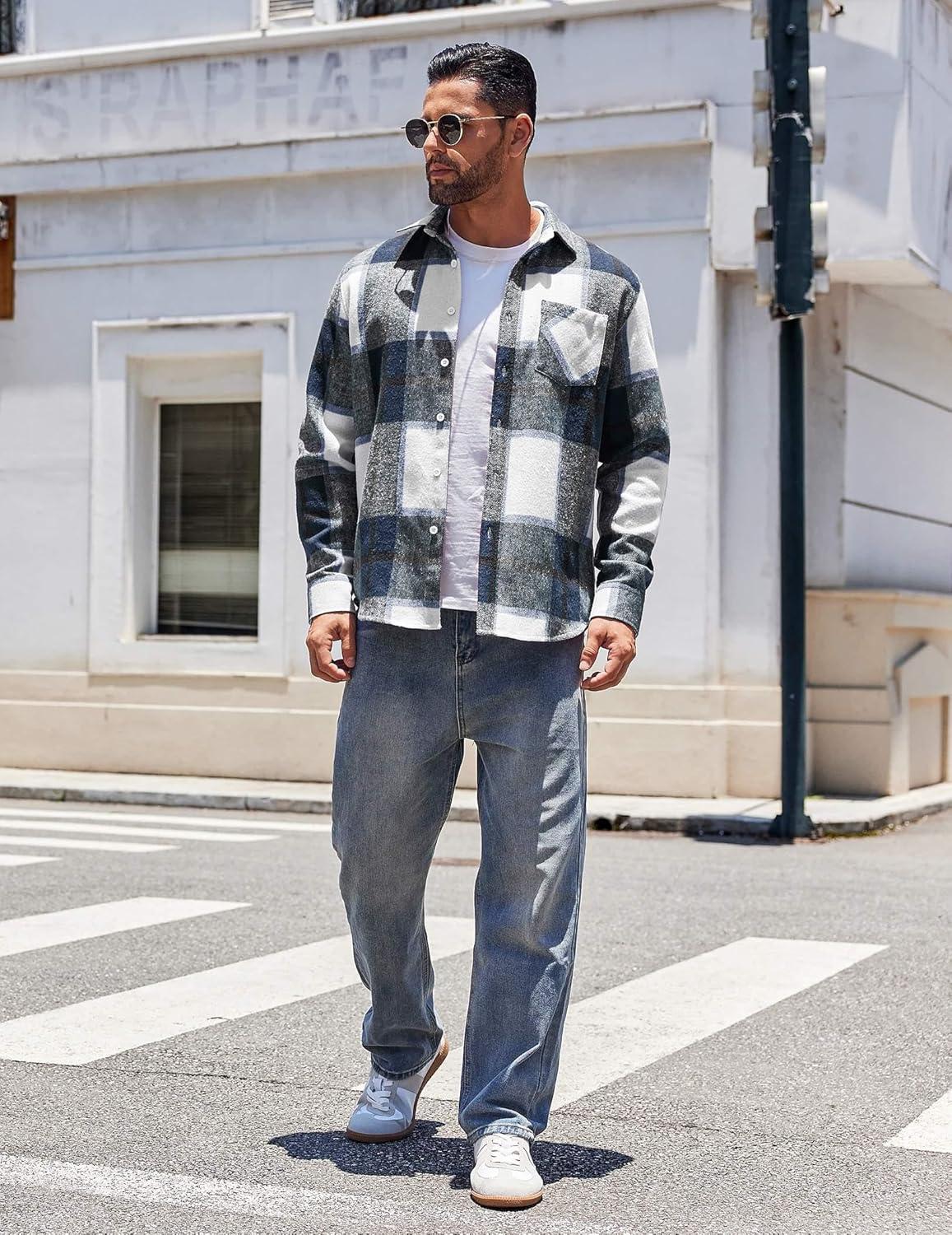 COOFANDY Mens Flannel Shirts Long Sleeve Lightweight Plaid Shirt Casual Button Down Shirts Jacket(Navy Blue)