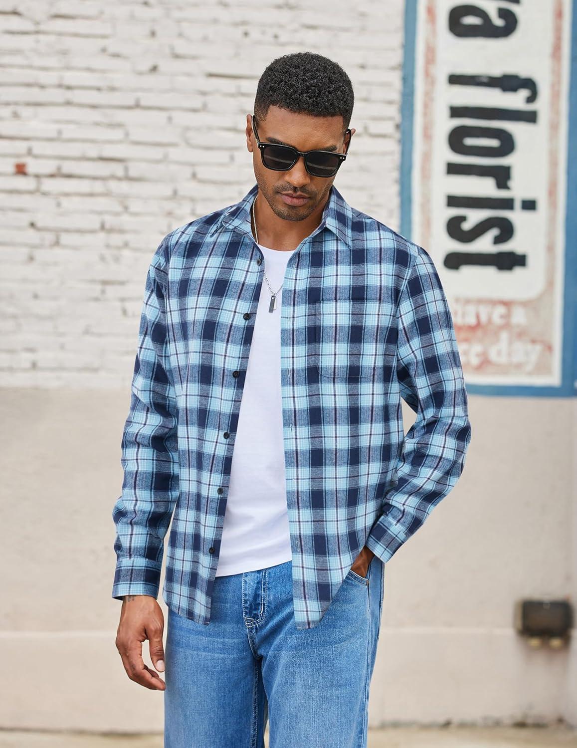 Don’t miss out on our limited-time offer: buy COOFANDY Mens Flannel Shirts Long Sleeve Lightweight Plaid Shirt Casual Button Down Shirts with Pocket(Blue), get a free {accessory}!