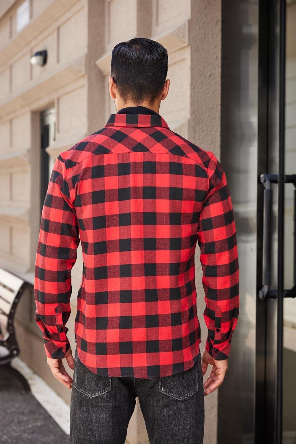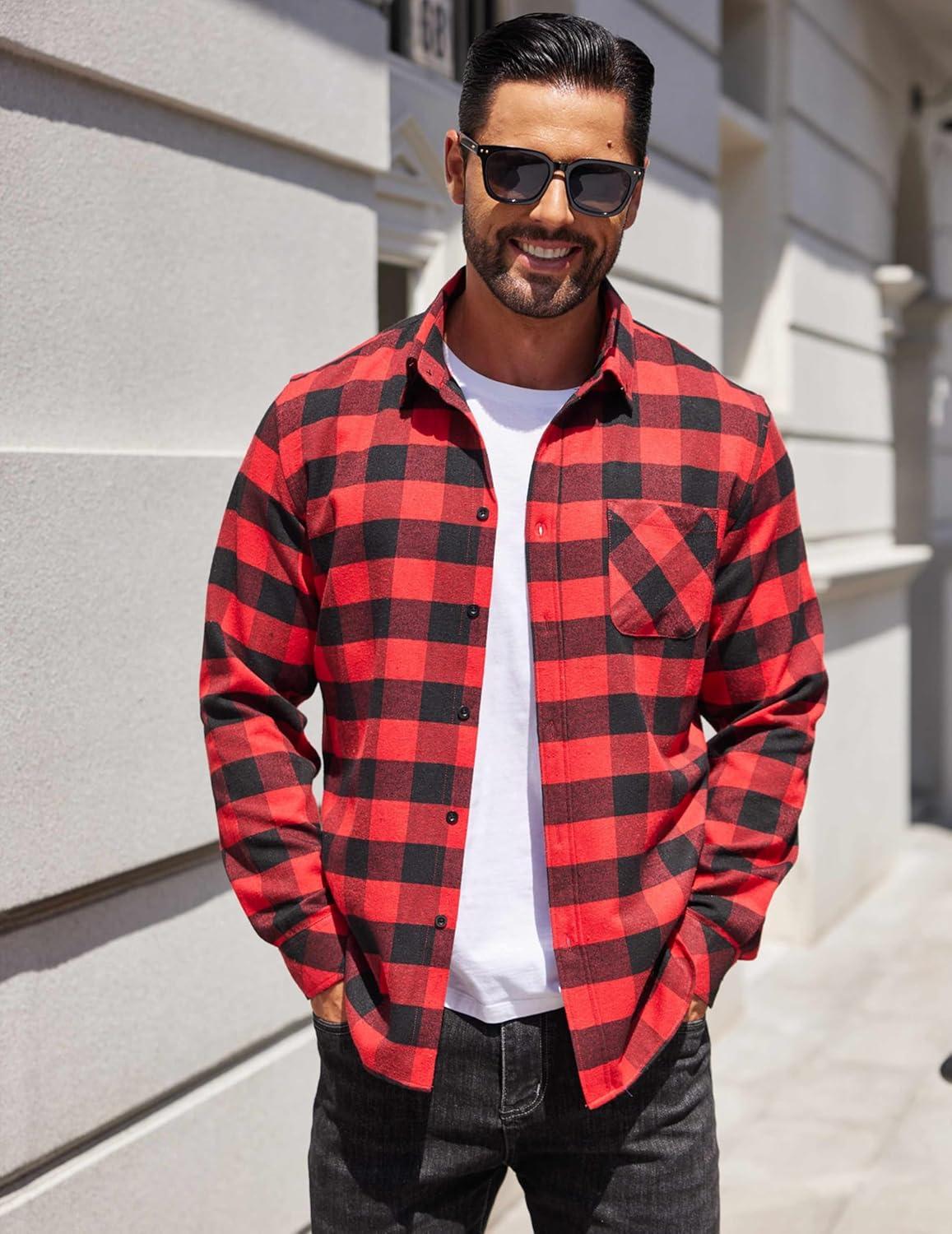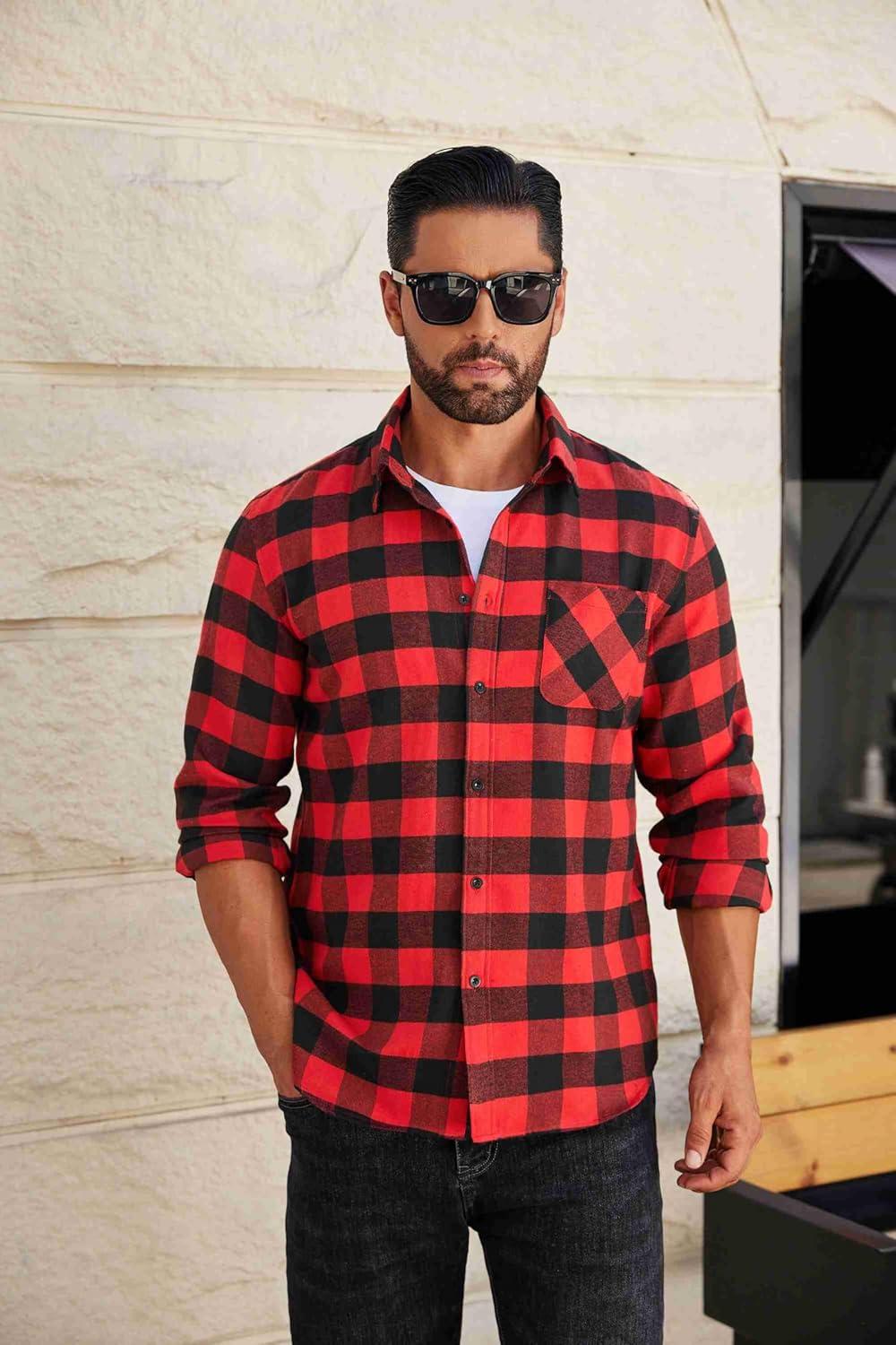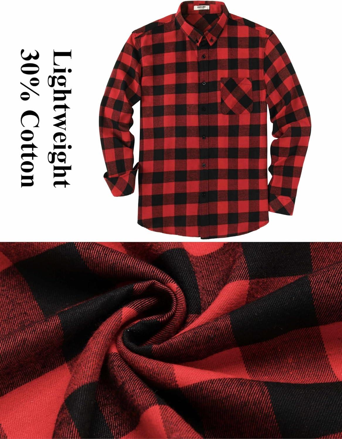 COOFANDY Mens Flannel Shirts Long Sleeve Plaid Button Down Shirt Casual Cotton Shirt with Pocket(Buffalo Red)