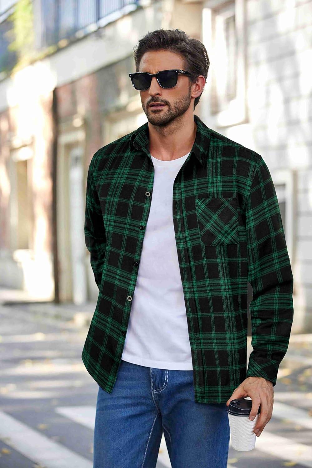 Our holiday sale features the best deals on COOFANDY Mens Flannel Shirts Long Sleeve Plaid Button Down Shirt Casual Cotton Shirt with Pocket(Plaid Green&black) and accessories. Shop now and save!