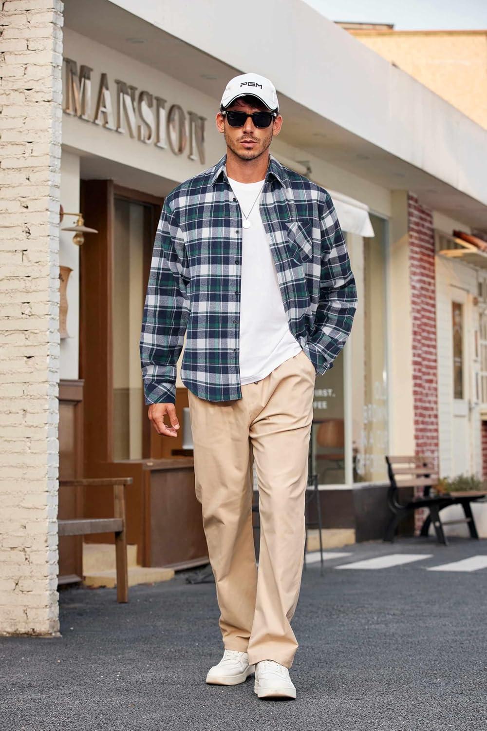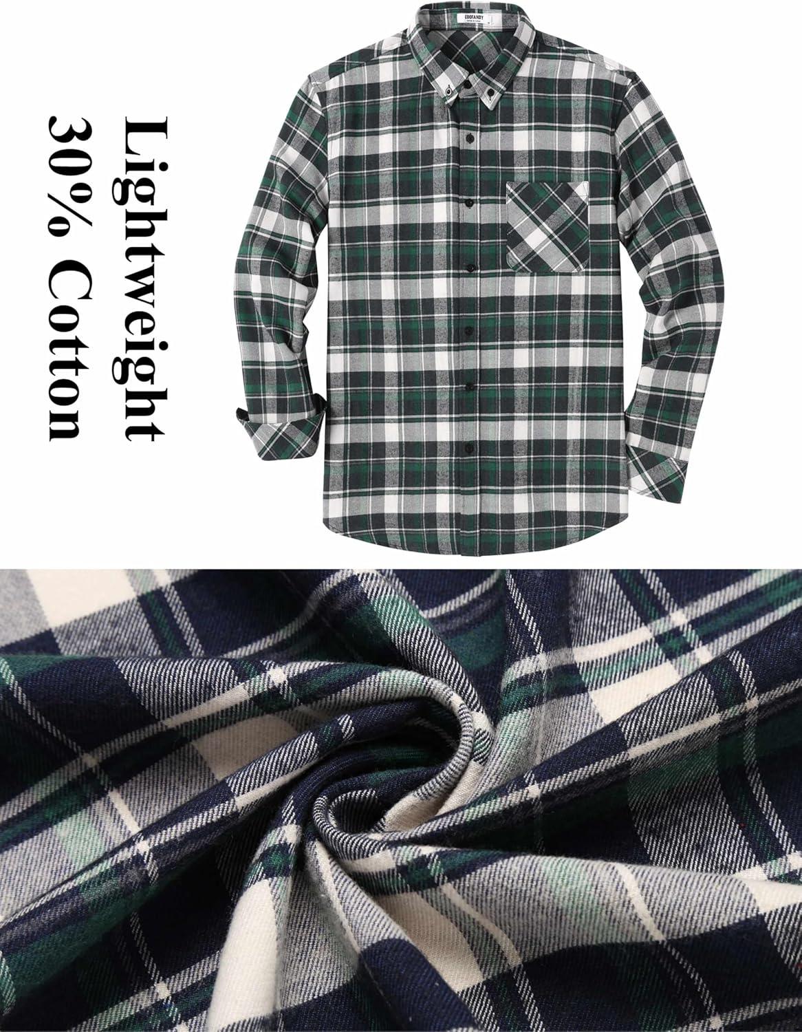 COOFANDY Mens Flannel Shirts Long Sleeve Plaid Button Down Shirt Casual Cotton Shirt with Pocket(Plaid White&green)