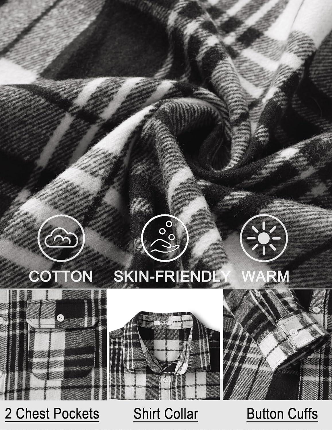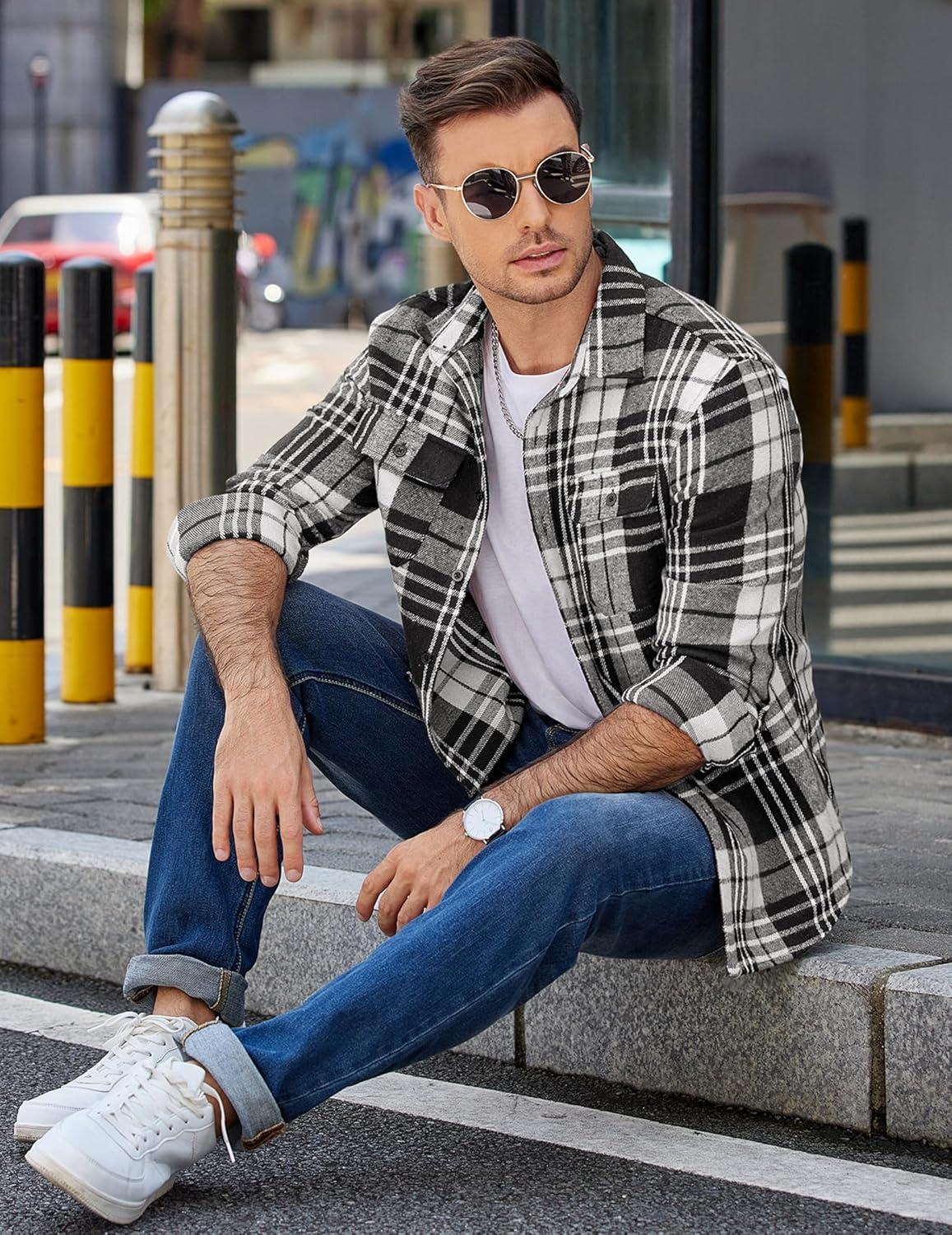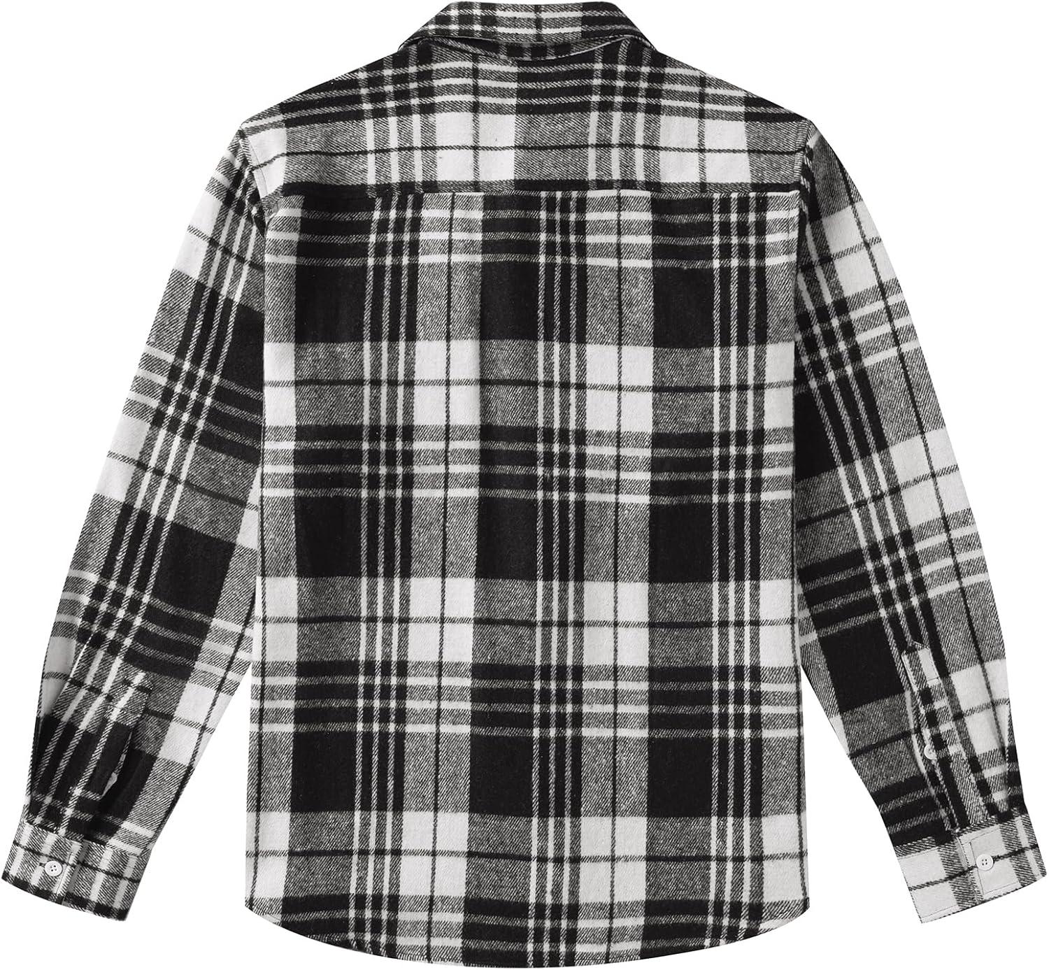 COOFANDY Mens Flannel Shirts Long Sleeve Plaid Shirt Jacket Button Down Shirt with Pockets(Black White)