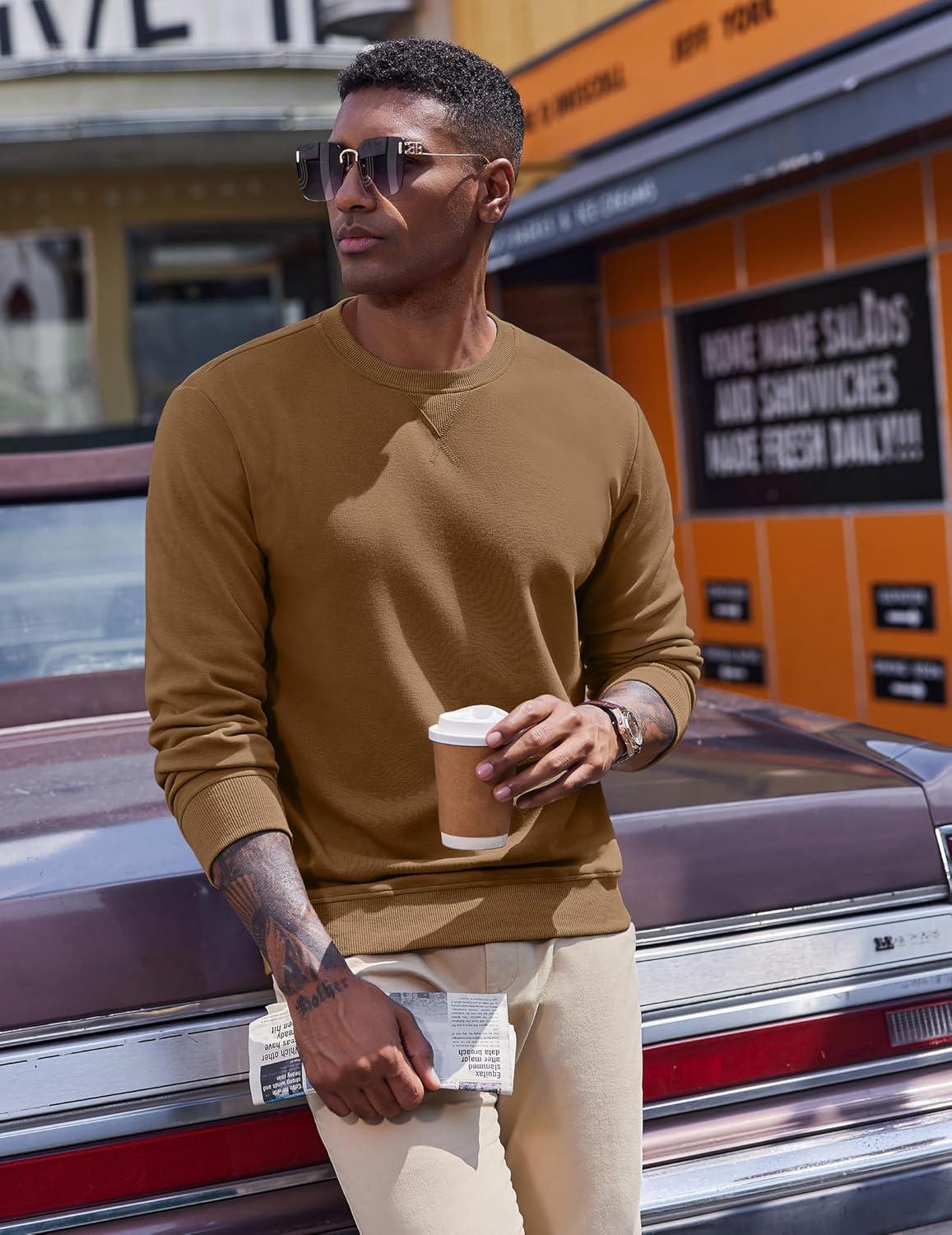 COOFANDY Men’s Fleece Crewneck Sweatshirt Casual Long Sleeve Pullover Fall Winter Warm Sweatshirts Fashion Pullovers(Brown)