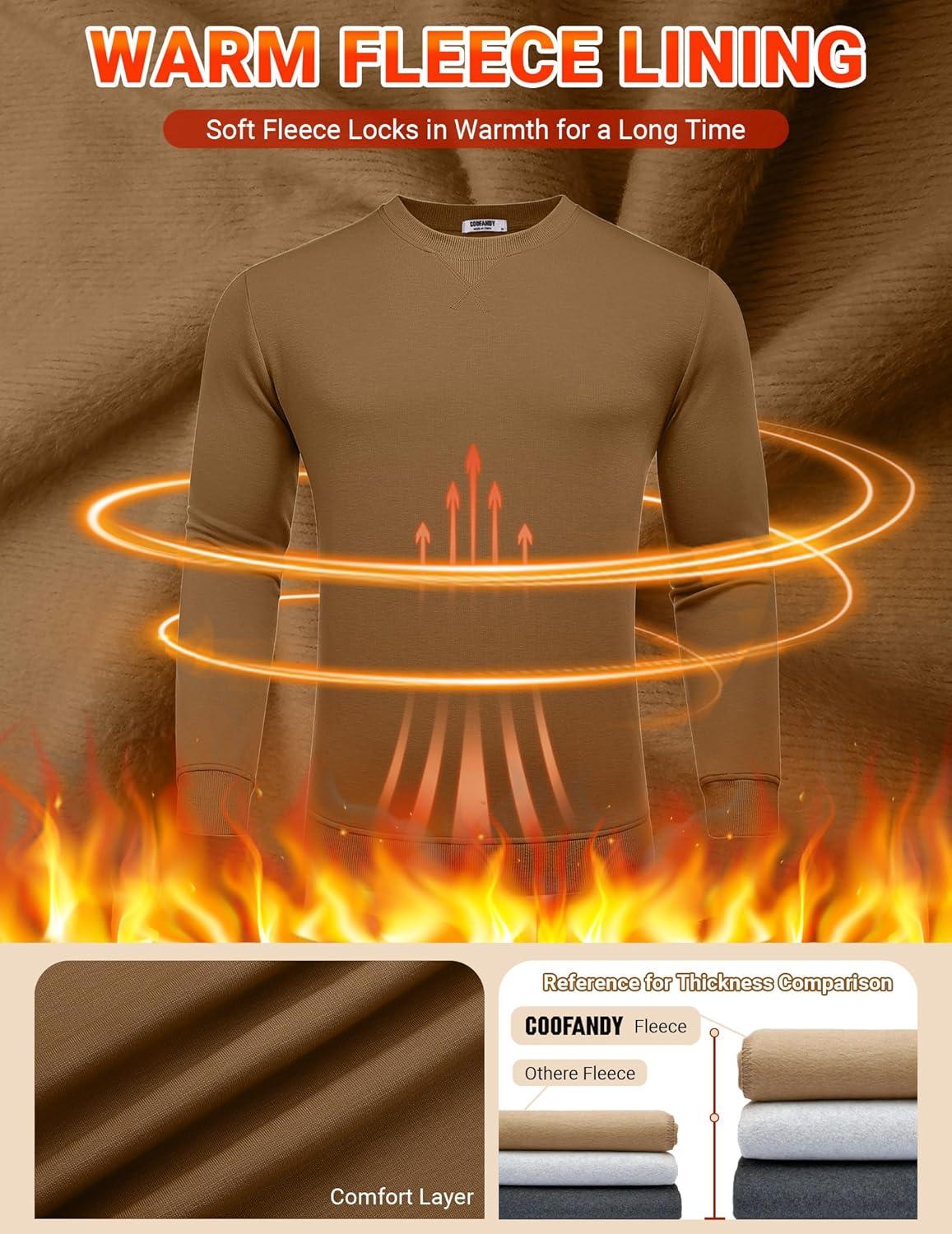 COOFANDY Men's Fleece Crewneck Sweatshirt Casual Long Sleeve Pullover Fall Winter Warm Sweatshirts Fashion Pullovers(Light Brown)