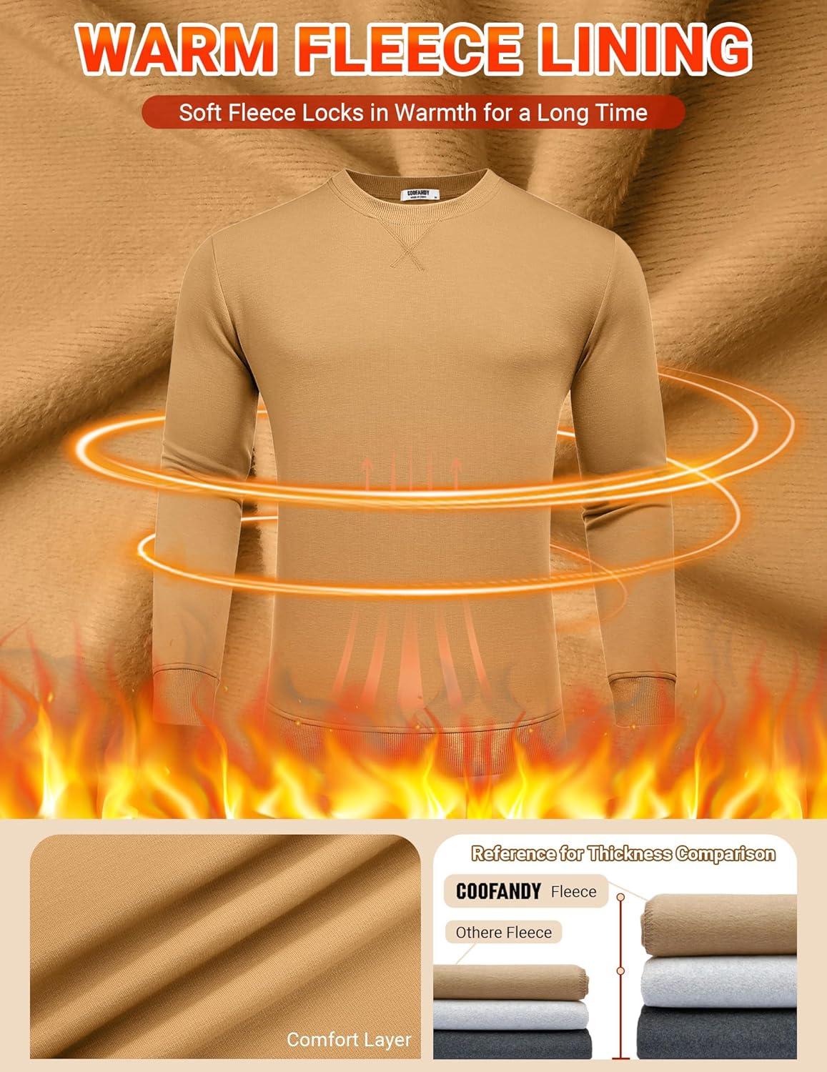 COOFANDY Men's Fleece Crewneck Sweatshirt Casual Long Sleeve Pullover Fall Winter Warm Sweatshirts Fashion Pullovers(Light Tan)