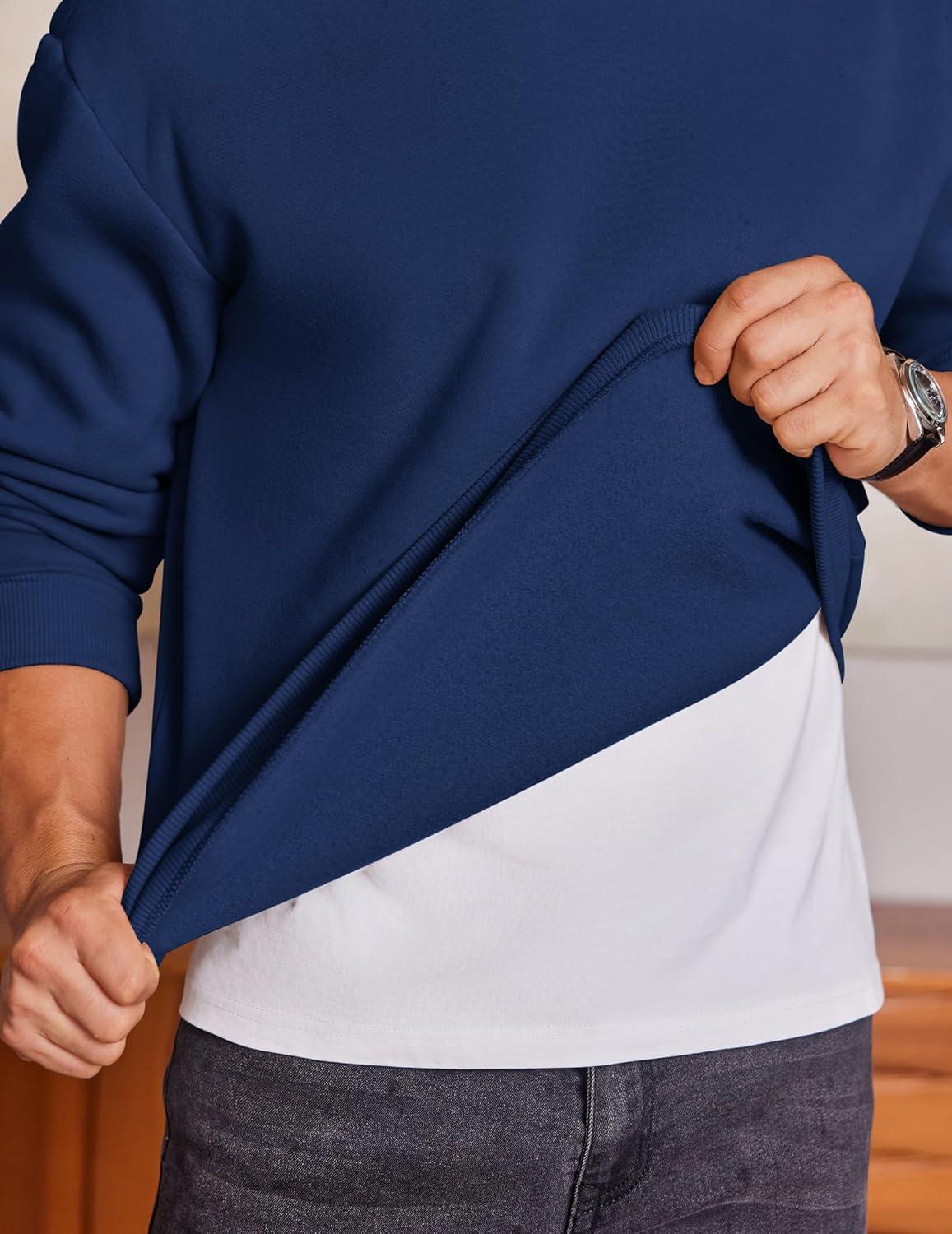 COOFANDY Men's Fleece Crewneck Sweatshirt Cotton Long Sleeve Pullover Casual Thermal Shirts(Blue Purple)