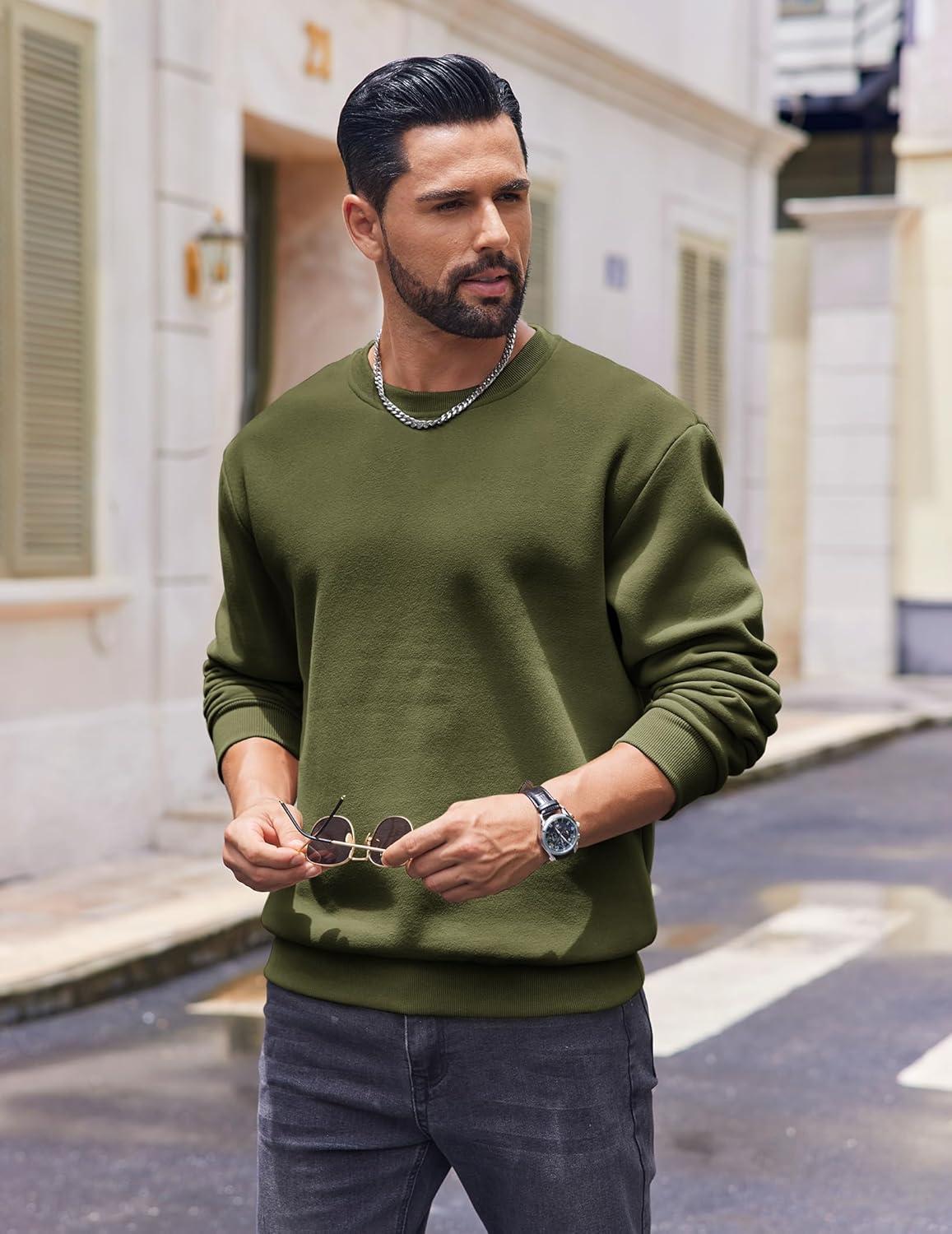 COOFANDY Men's Fleece Crewneck Sweatshirt Cotton Long Sleeve Pullover Casual Thermal Shirts(Dark Green)