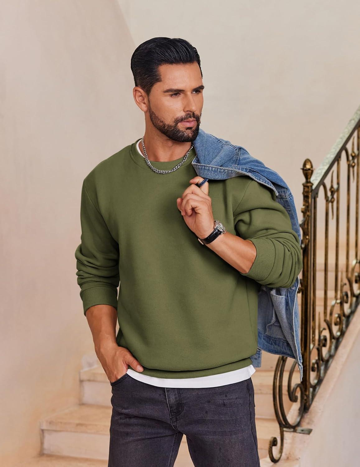 COOFANDY Men’s Fleece Crewneck Sweatshirt Cotton Long Sleeve Pullover Casual Thermal Shirts(Dark Green)