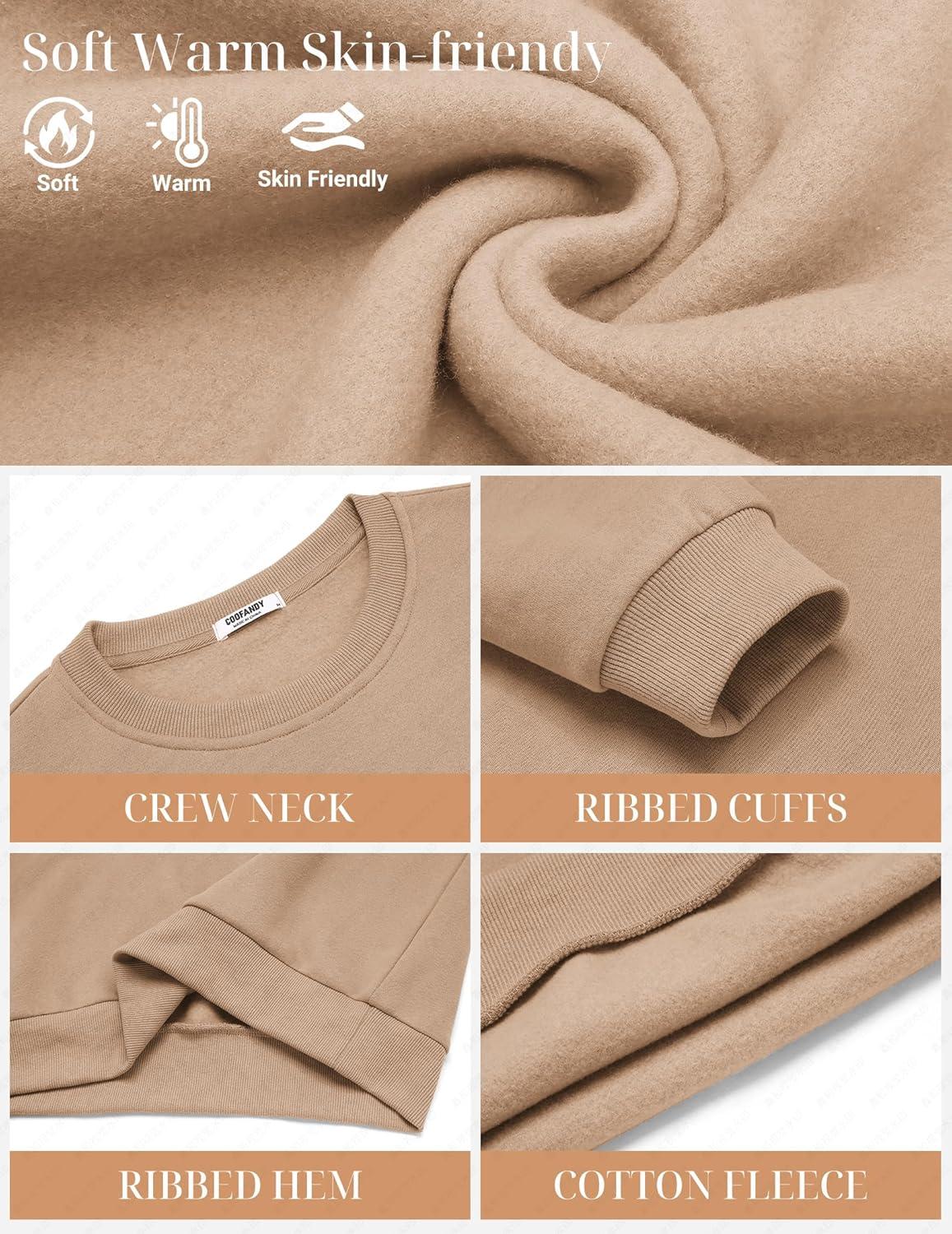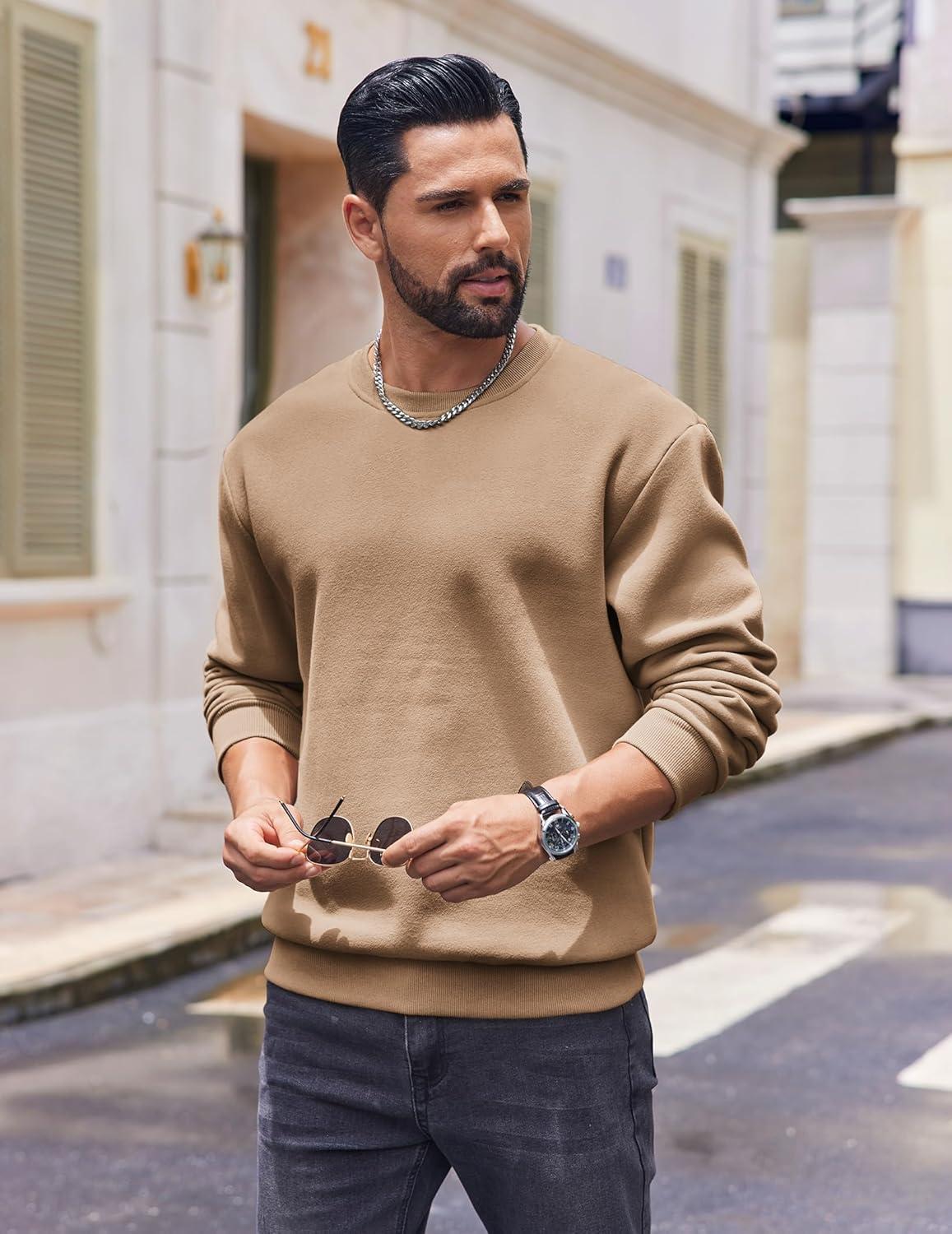 COOFANDY Men's Fleece Crewneck Sweatshirt Cotton Long Sleeve Pullover Casual Thermal Shirts(Khaki)