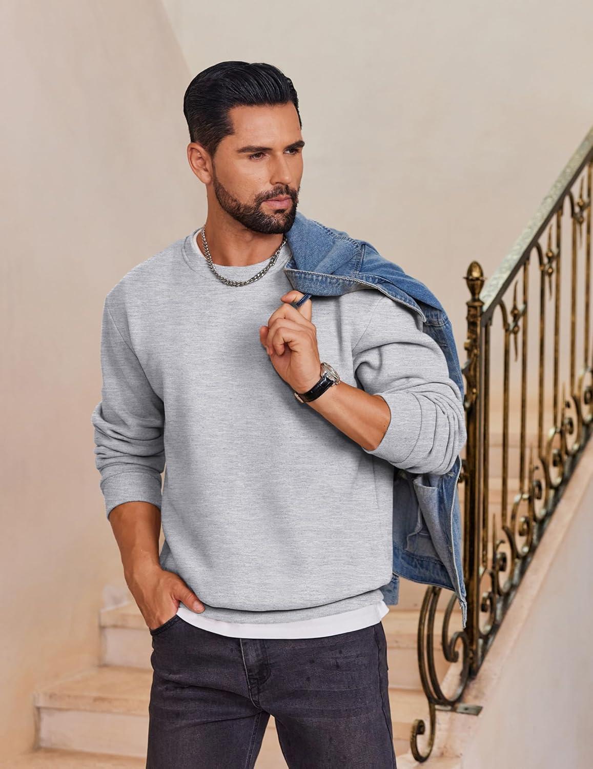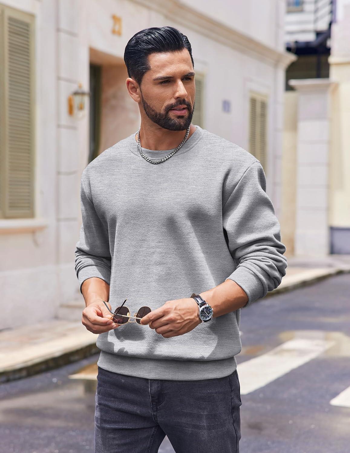 COOFANDY Men's Fleece Crewneck Sweatshirt Cotton Long Sleeve Pullover Casual Thermal Shirts(Light Grey)