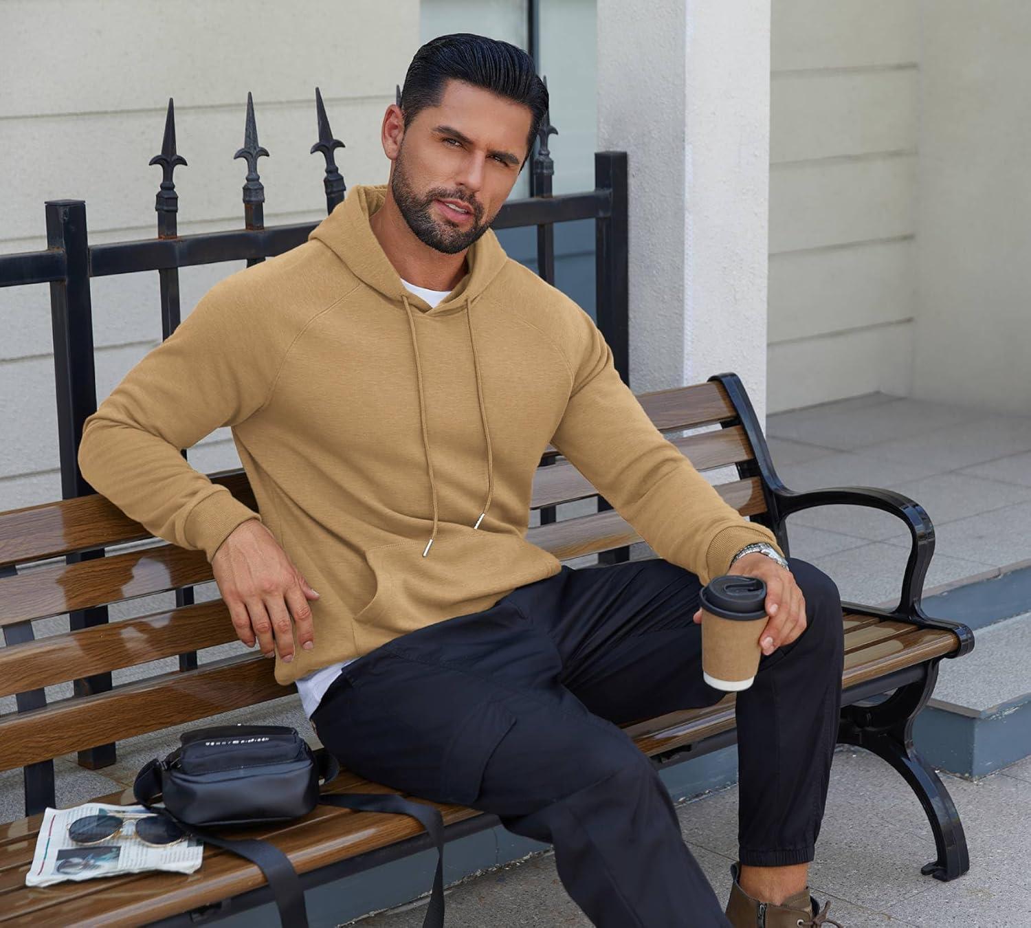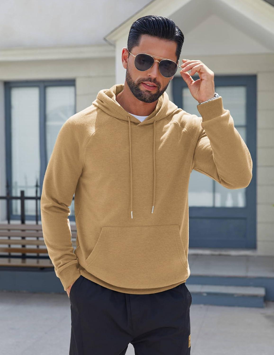COOFANDY Men’s Fleece Hoodie Long Sleeve Hooded Sweatshirt Casual Basic Essential Drawstring Pullover Hoodie With Pocket(Light Brown)
