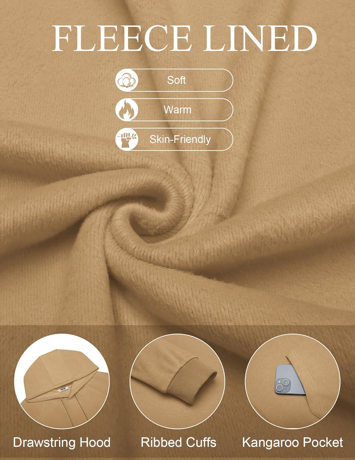 COOFANDY Men’s Fleece Hoodie Long Sleeve Hooded Sweatshirt Casual Basic Essential Drawstring Pullover Hoodie With Pocket(Camel)