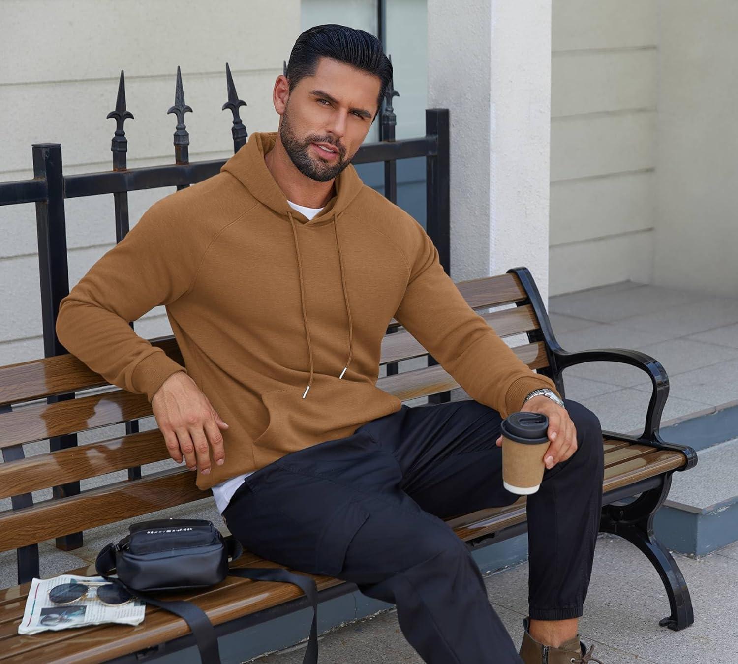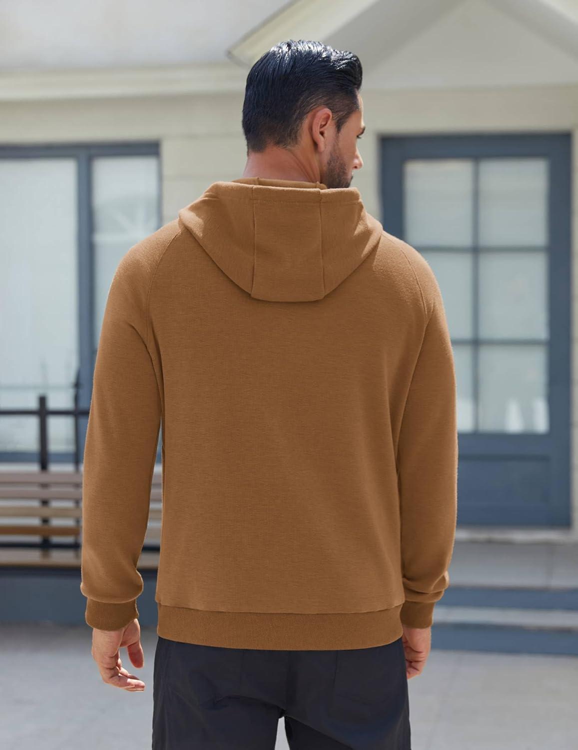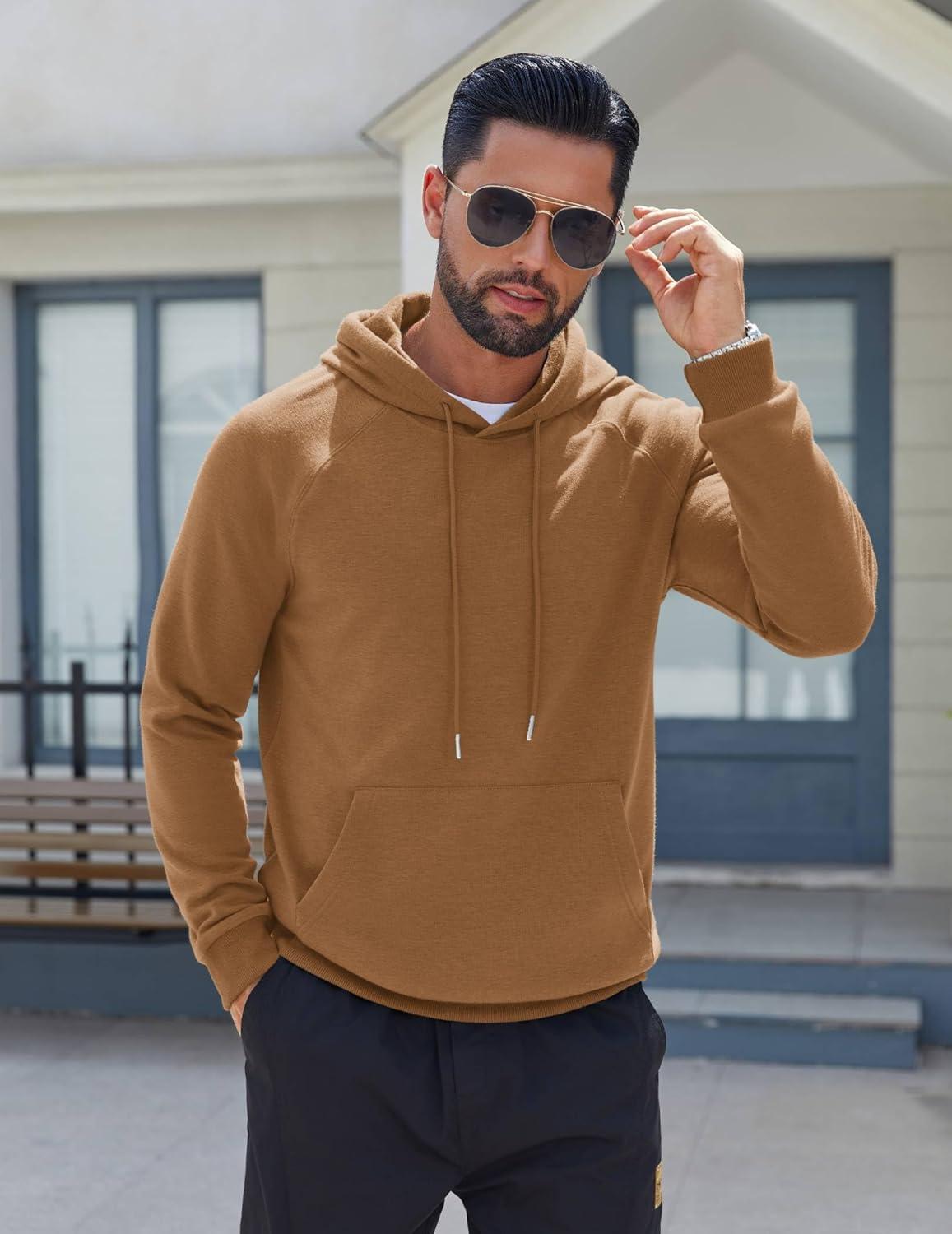 COOFANDY Men’s Fleece Hoodie Long Sleeve Hooded Sweatshirt Casual Basic Essential Drawstring Pullover Hoodie With Pocket(Light Brown)