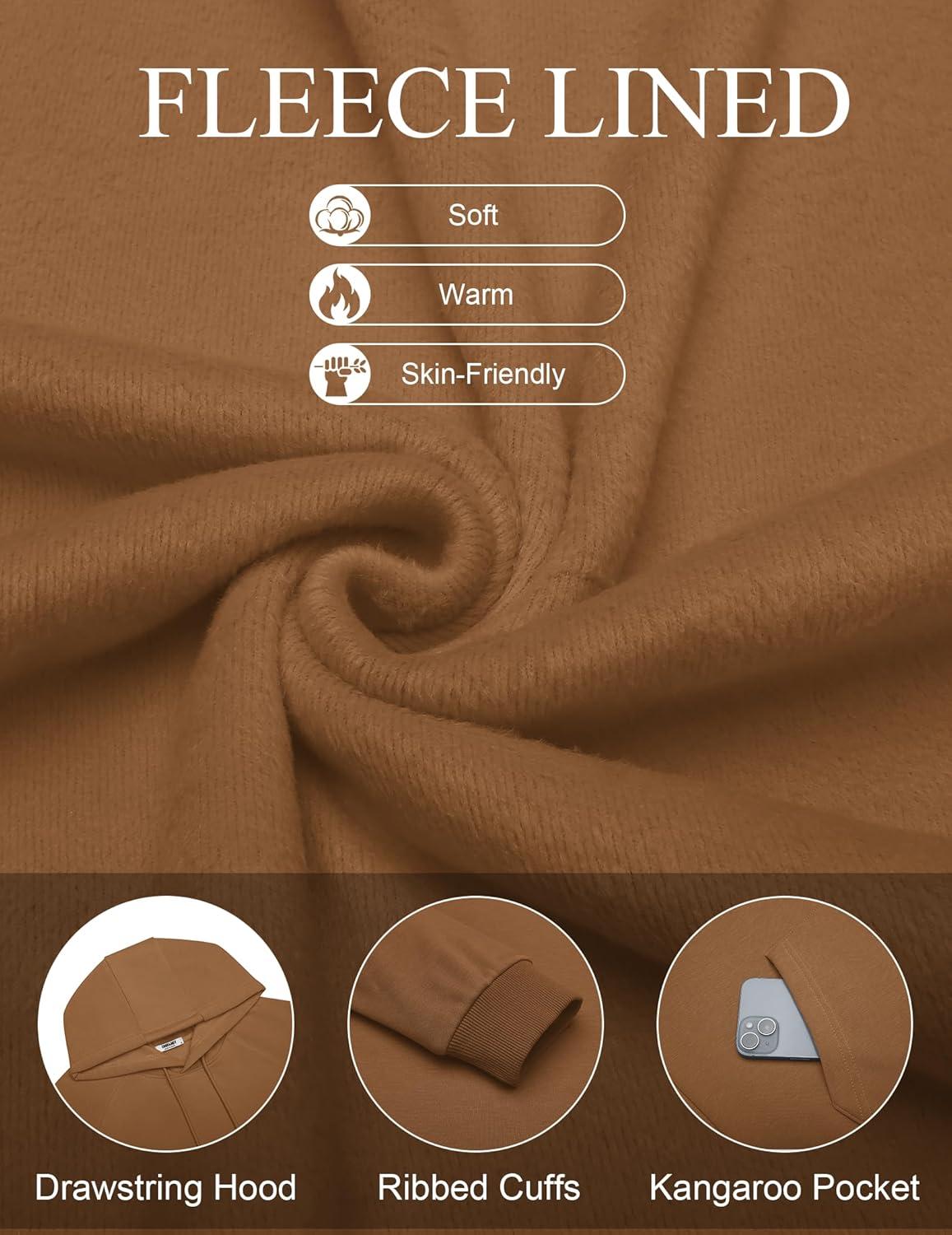 COOFANDY Men's Fleece Hoodie Long Sleeve Hooded Sweatshirt Casual Basic Essential Drawstring Pullover Hoodie With Pocket(Light Brown)