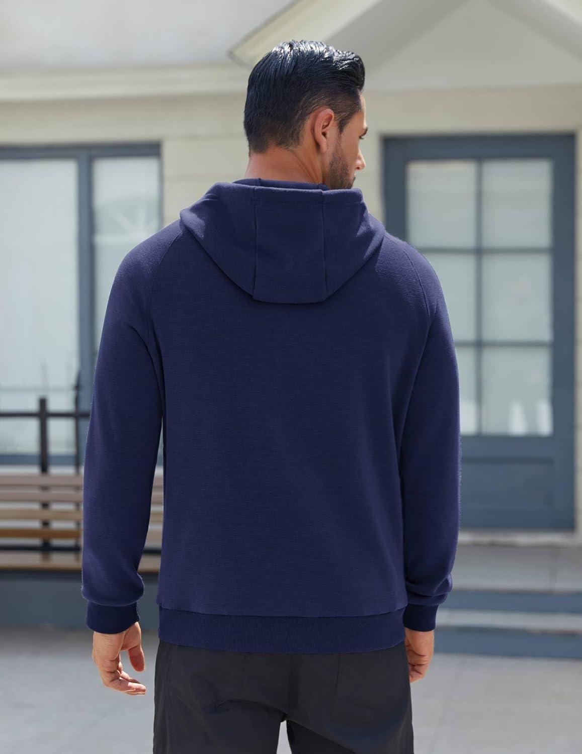 COOFANDY Men’s Fleece Hoodie Long Sleeve Hooded Sweatshirt Casual Basic Essential Drawstring Pullover Hoodie With Pocket(Navy Blue)
